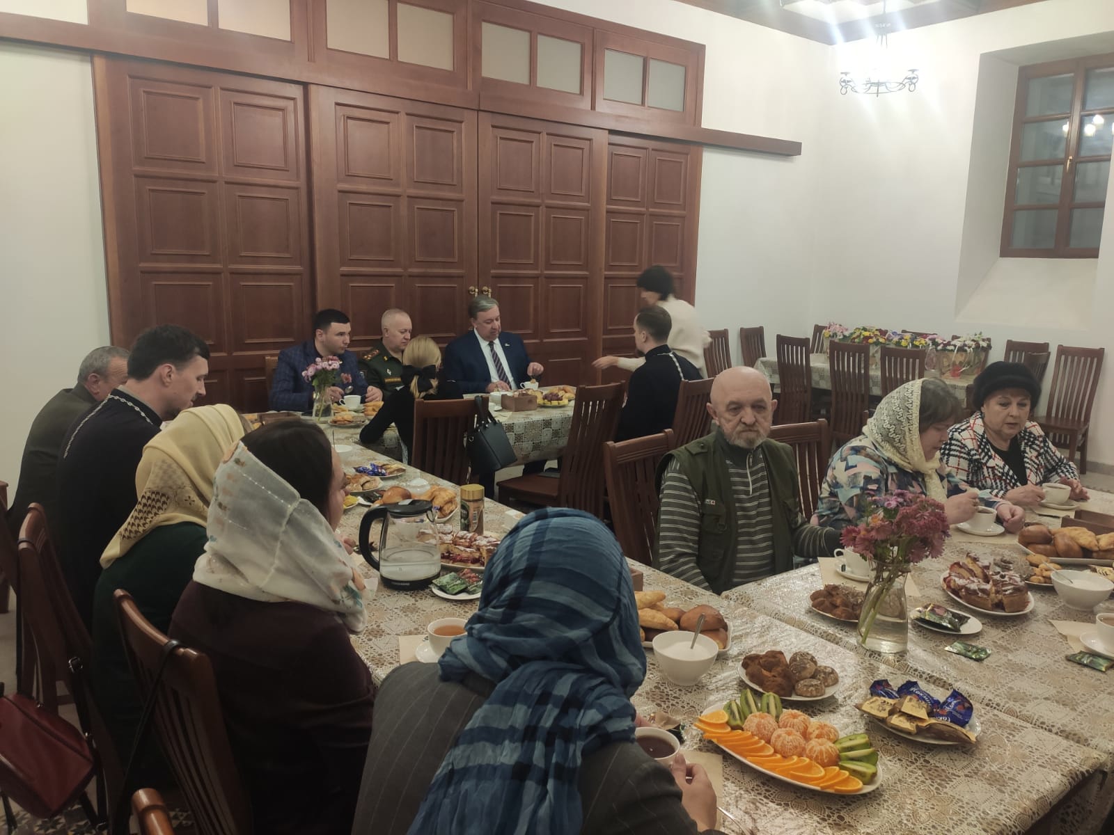 После панихиды прошла встреча с матерями и жёнами, потерявших своих мужей и сыновей в боевых действиях спецоперации.
