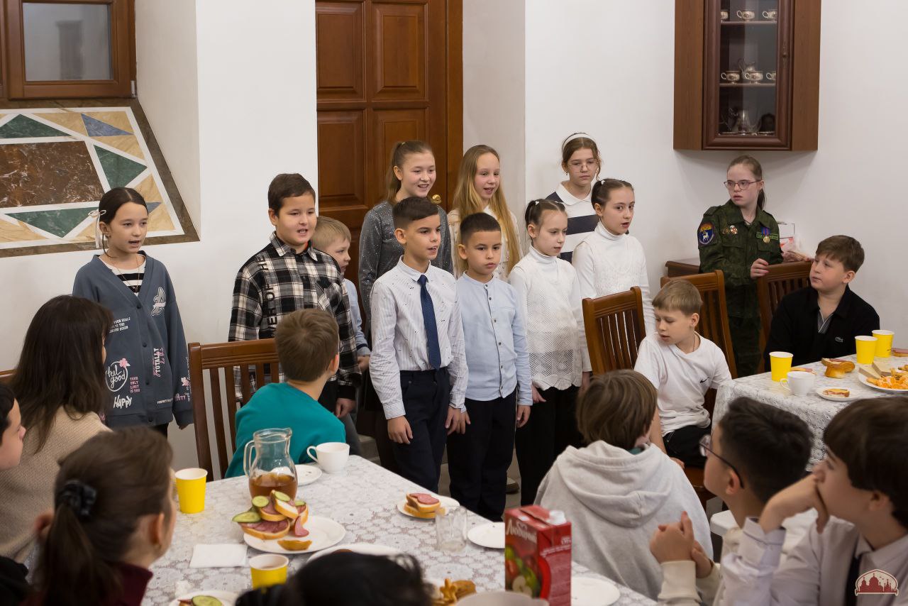 На праздниках выступили детский хор воскресной школы "Радуга", семейный казачий ансамбль "Тихий Дон" приходского Духовно-патриотического центра святого Георгия Победоносца, детская труппа приходского театра "Преображение".