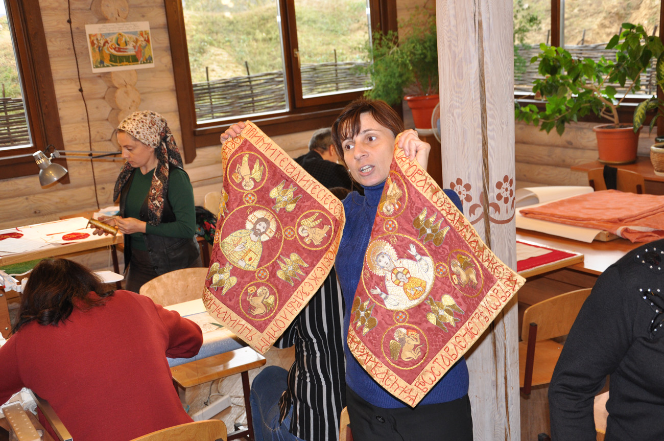 По традиции, гости познакомились с историей храма святого Иоанна Воина, приняли участие в мастер-классе звонарного мастерства на колокольне, посетили приходскую воскресную школу и побывали на строительстве храма святого Георгия Победоносца. Также ребята посетили приходскую золотошвейную мастерскую, о работе которой рассказала руководитель мастерской Ирина Юрьевна Молодых.