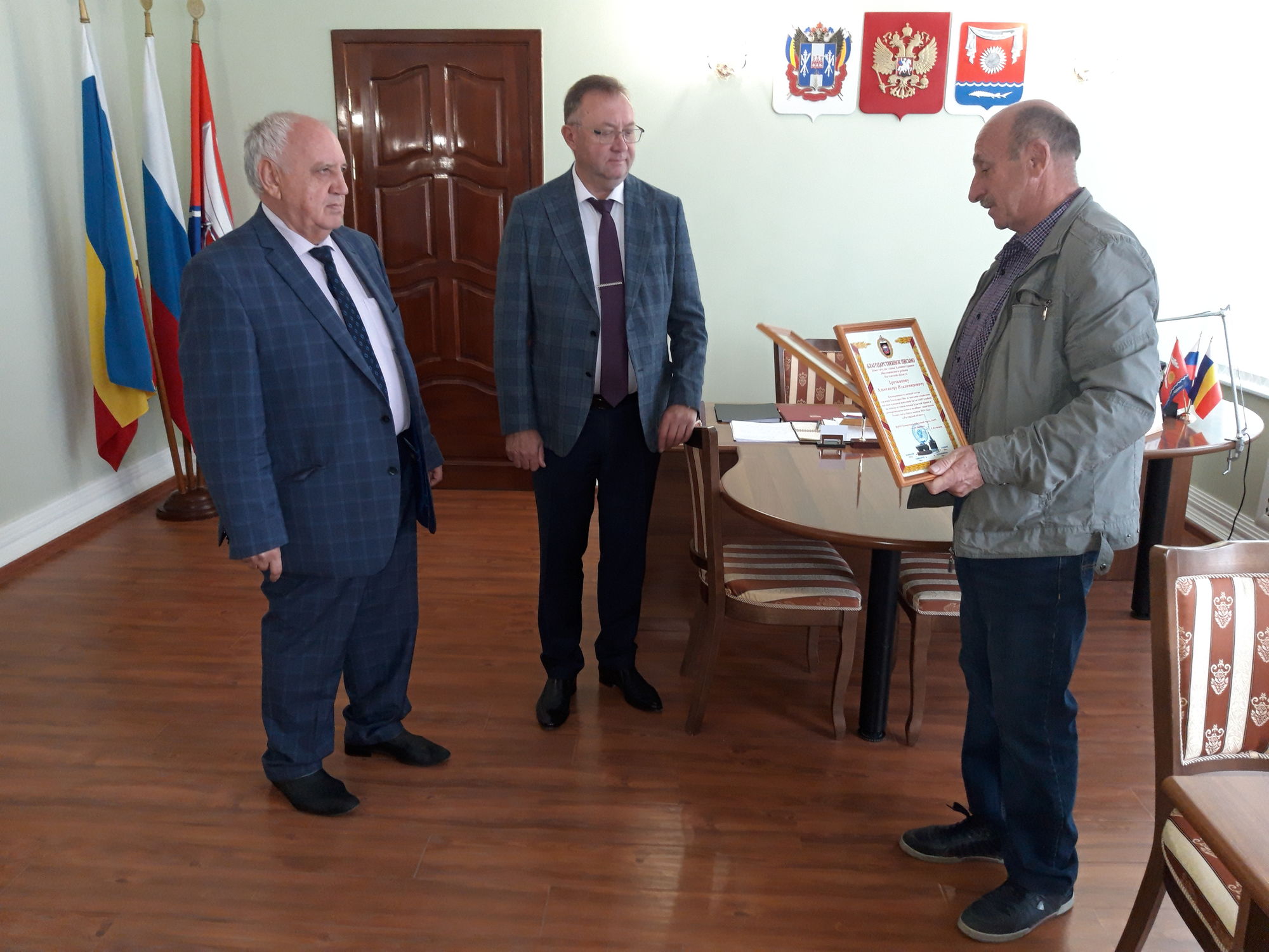 25 октября 2019 года представители Ростовского духовно-патриотического центра Святого Георгия Победоносца совершили поездку в Неклиновский район Ростовской области. Одной из основных целей поездки являлось выполнение поручения командования подшефной воинской части о вручении благодарственных писем от имени командования главе района Василию Федоровичу Даниленко, его заместителю Третьякову Александру Владимировичу и представителям общественности за оказание помощи и содействие в проведении поисковой вахты памяти 2019 года на Ростовском оборонительном рубеже. В этих местах в 1941-1943 годах шли ожесточенные бои с немецко-фашистскими захватчиками. Военнослужащие Южного военного округа совместно с общественно-патриотическими клубами в определенное командованием время активно участвуют в поисковых мероприятиях, по поиску и перезахоронению останков погибших защитников Отечества.