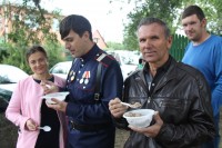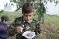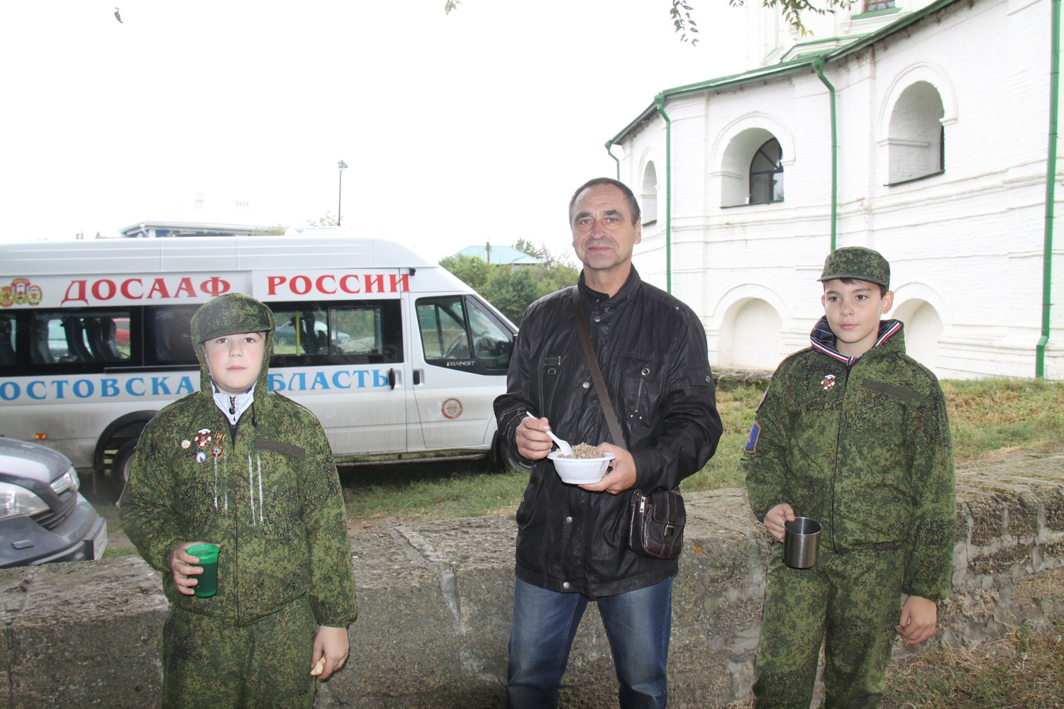 После окончания службы дети и все желающие попробовали настоящей солдатской каши, приготовленной на костре и попили чая из самовара. Почетным гостем у юных защитников Отечества был Герой Российской Федерации Генерал-полковник Булгаков Владимир Васильевич. Он поблагодарил детей и их наставников за успехи в начальной военной подготовке к службе в Российской Армии. Также в этот день в станице состоялось закрытие Фестиваля народной казачьей песни. Дети и взрослые с удовольствием послушали выступление творческих коллективов.