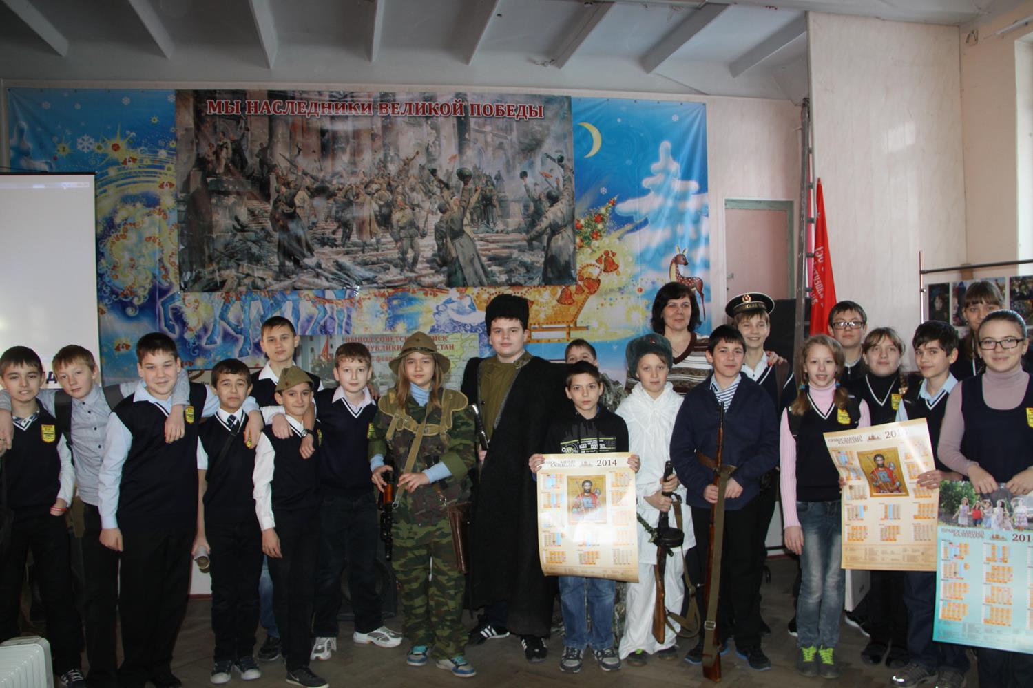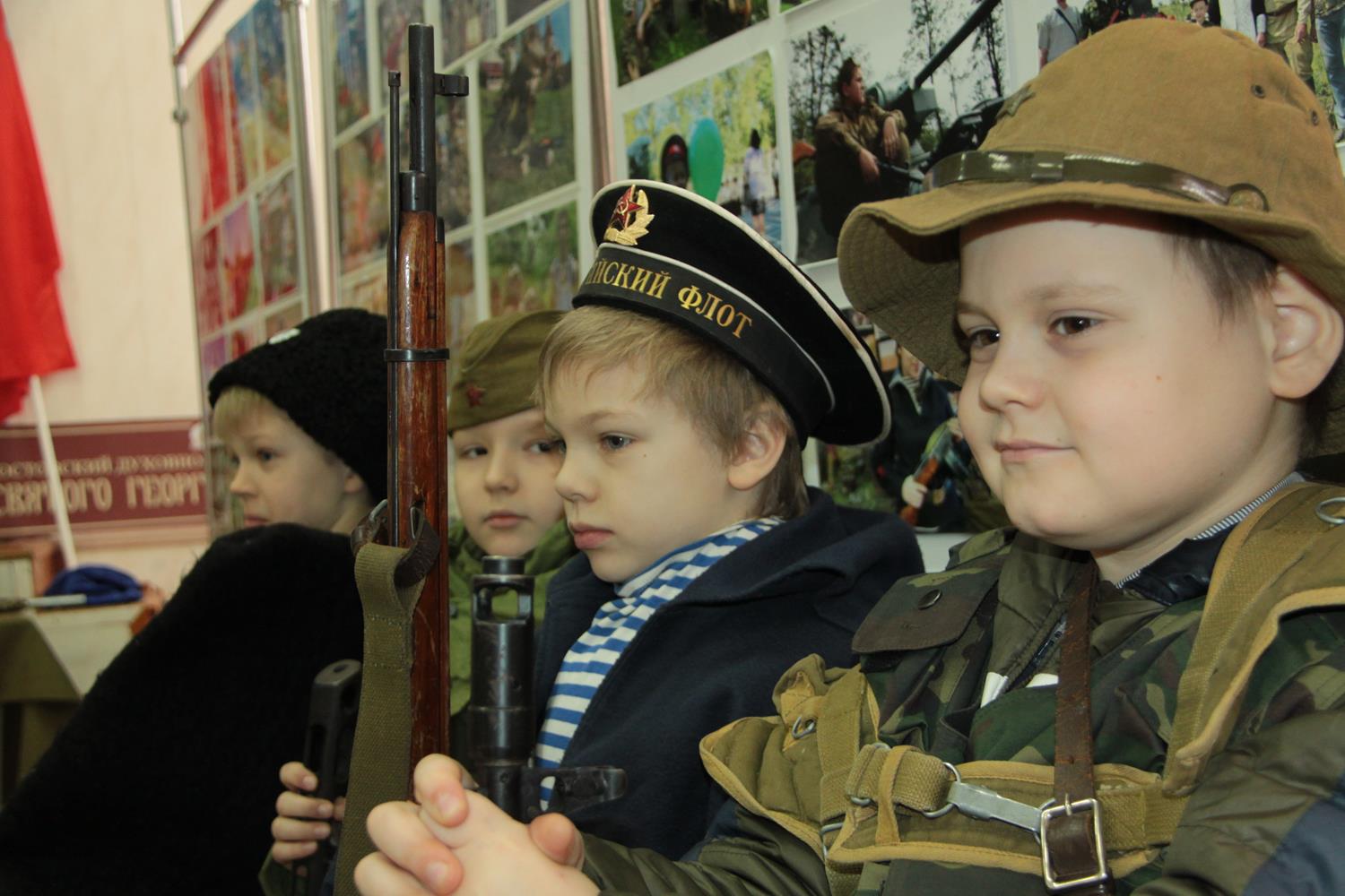Детям был представлен большой исторический материал в песенно-поэтическом изложении, фотовыставка, экспозиция исторических предметов, макетов исторического и современного оружия, а также экипировки.