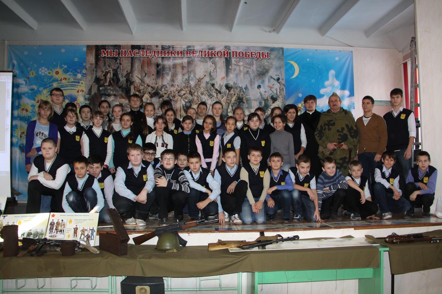 Выставка была посвящена 71-ой годовщине освобождения города Ростова-на-Дону от немецко-фашистской оккупации, 25-ти летию вывода советских войск из республики Афганистан и военной истории нашего государства. За три дня выставку посетили около тысячи учащихся и преподавателей школы.