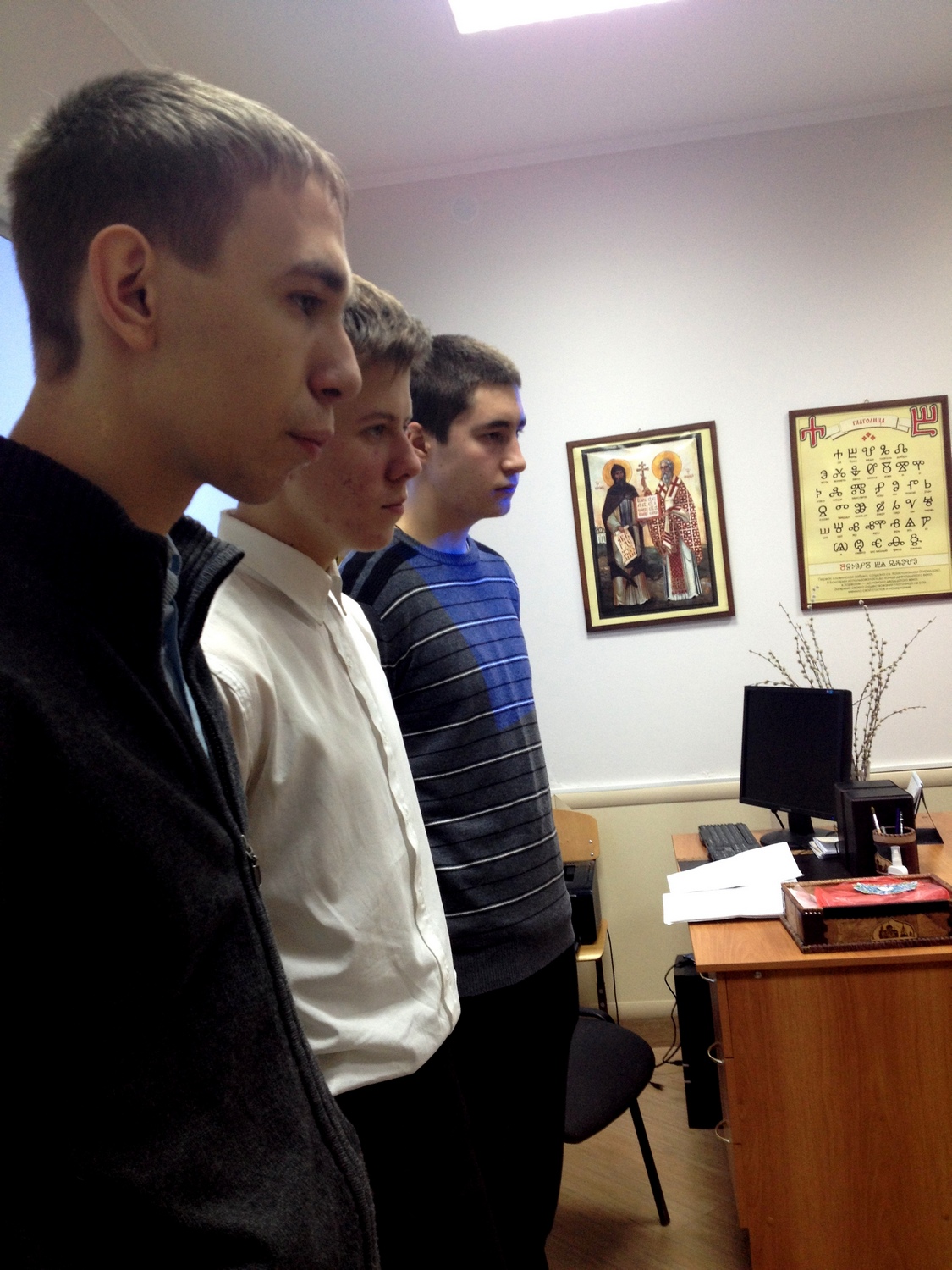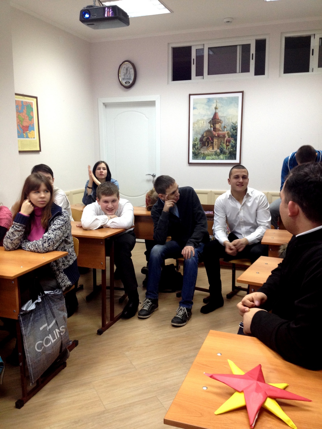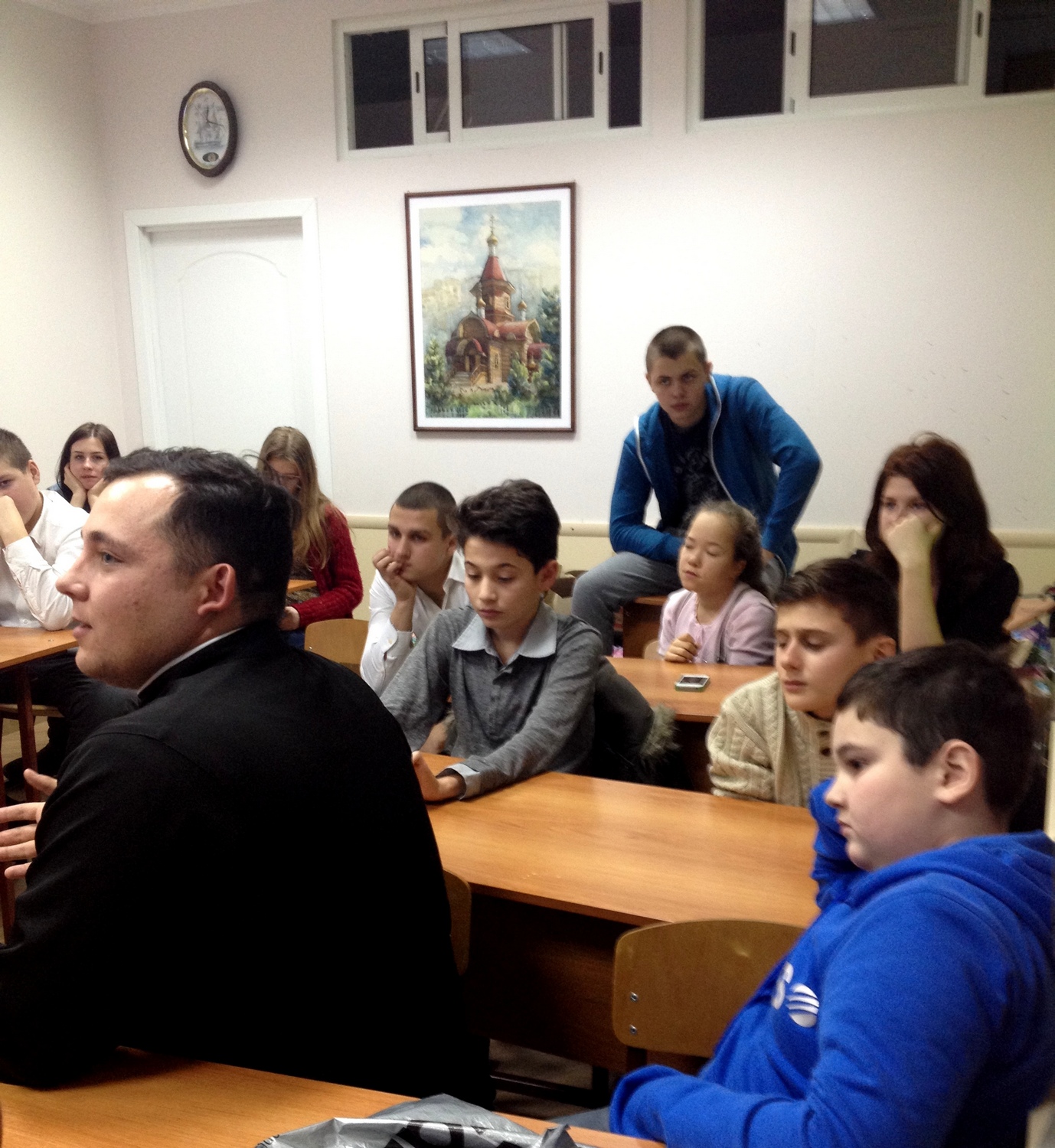 Урок вели: Оганес Тепоян, Александр Федоркин, Василий Парамонов, Иван Федосов. Помогали: Денис Сакович, Филипп Волощук, Филипп Передернин, Никита Жидков, Валерия Сакович. Ребята постарались провести урок в виде дискуссии, ученики воскресной школы очень активно и с большим интересом обсуждали одни из самых важных вопросов воспитания, развития души.