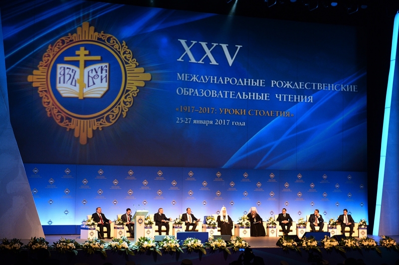 Открытие и пленарное заседание форума возглавил председатель Международных Рождественских чтений Святейший Патриарх Московский и всея Руси Кирилл. В президиуме присутствовали: председатель Оргкомитета Чтений, председатель Синодального отдела религиозного образования и катехизации митрополит Ростовский и Новочеркасский Меркурий; министр иностранных дел РФ Сергей Лавров; первый заместитель председателя Совета Федерации ФС РФ Николай Федоров; заместитель председателя Государственной Думы ФС РФ Петр Толстой; министр культуры РФ Владимир Мединский; министр РФ по делам гражданской обороны чрезвычайным ситуациям и ликвидации последствий стихийных бедствий Владимир Пучков; полномочный представитель Президента РФ в Центральном федеральном округе, руководитель Рабочей группы при Президенте РФ по вопросам восстановления объектов культурного наследия религиозного назначения, иных здании и сооружений Александр Беглов; заместитель мэра Москвы в Правительстве Москвы по вопросам региональной безопасности и информационной политики Александр Горбенко.