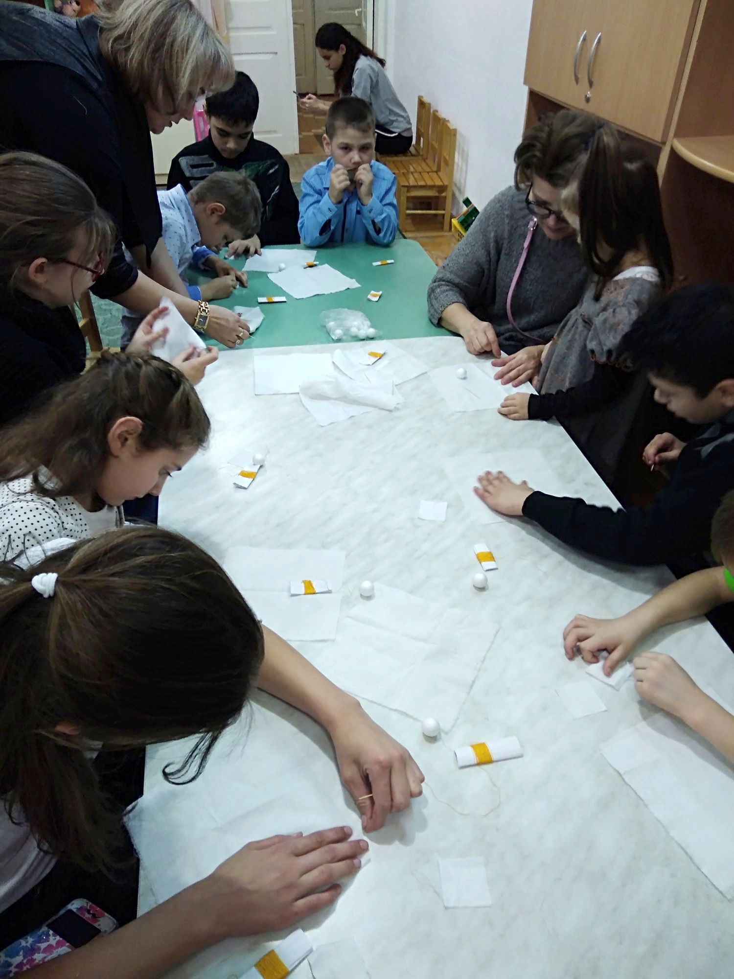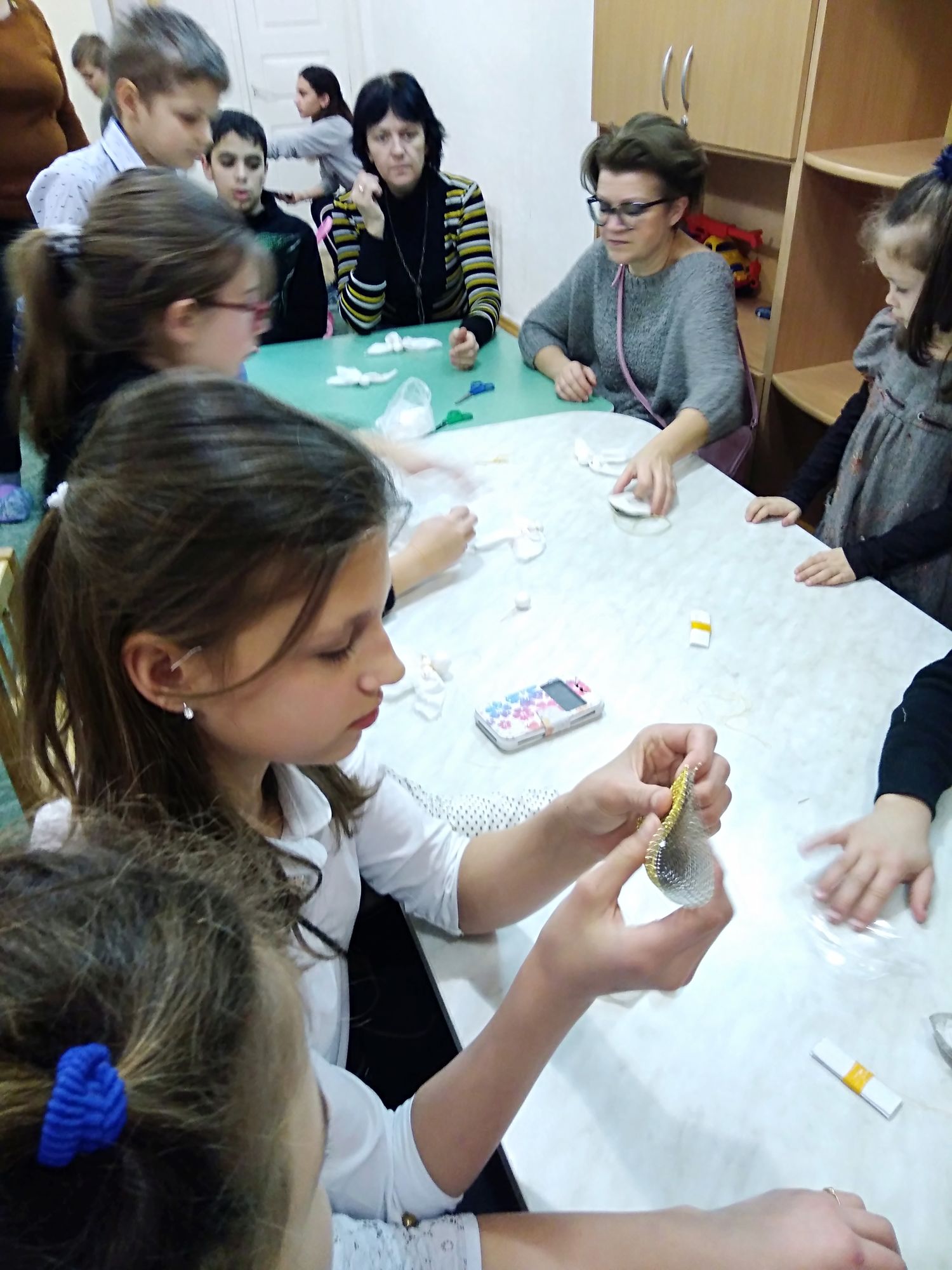 25 января 2019 года сестры милосердия Храма Иоанна Воина посетили Государственное учреждение социального обслуживания Ростовской области центр помощи детям – отделение Замещающие родители. Доброй традицией на нашем Приходе стало проведение регулярных встреч наших сестер с родителями и детками, а также администрацией Центра помощи детям. В этот раз ученица приходского ремесленического центра «Народная кукла» Мазурина Елена Юрьевна провела мастер-класс по изготовлению «Рождественских ангелочков». Встреча началась очень интересно – песенками и стихами. Ребятам было предложено разгадать слово Ангел. Мы были приятно удивлены, когда ребята наперебой отвечали на такие вопросы, как «С чего начинается день?» – «С молитвы». На вопрос: «Дом Божий?» – отвечали «Храм». Все потрудились на славу, у каждого получился замечательный ангелочек. Встреча закончилась чаепитием и вручением сладких подарков.