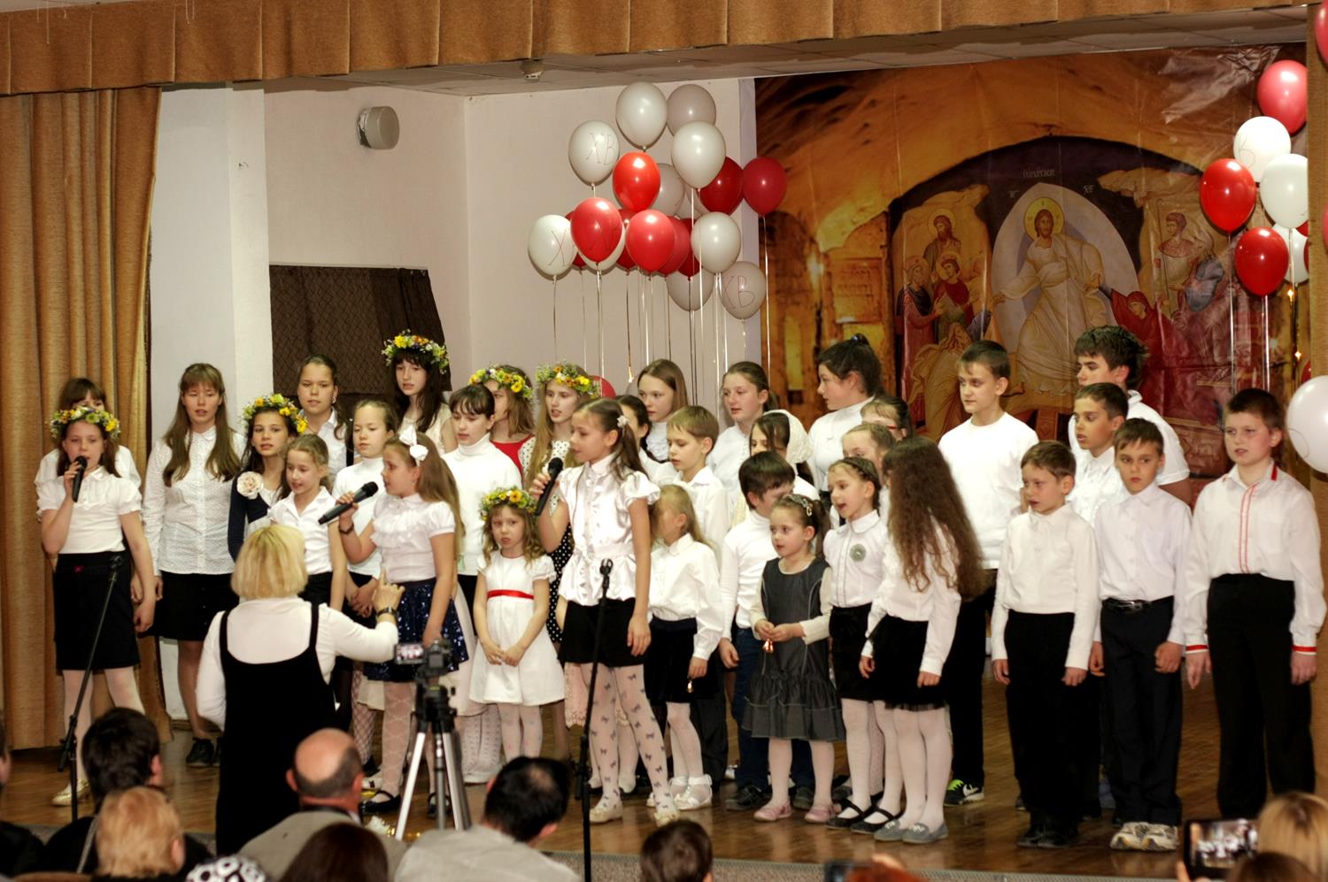 В своем слове директор воскресной школы Ксения Валерьевна Волощук отметила, что этот год юбилейный для нашей школы, уже 10 лет в ней обучаются дети, которых становится с каждым годом все больше, поэтому мы обратились в гимназию №117 с просьбой о предоставлении актового зала для проведения Пасхального концерта.