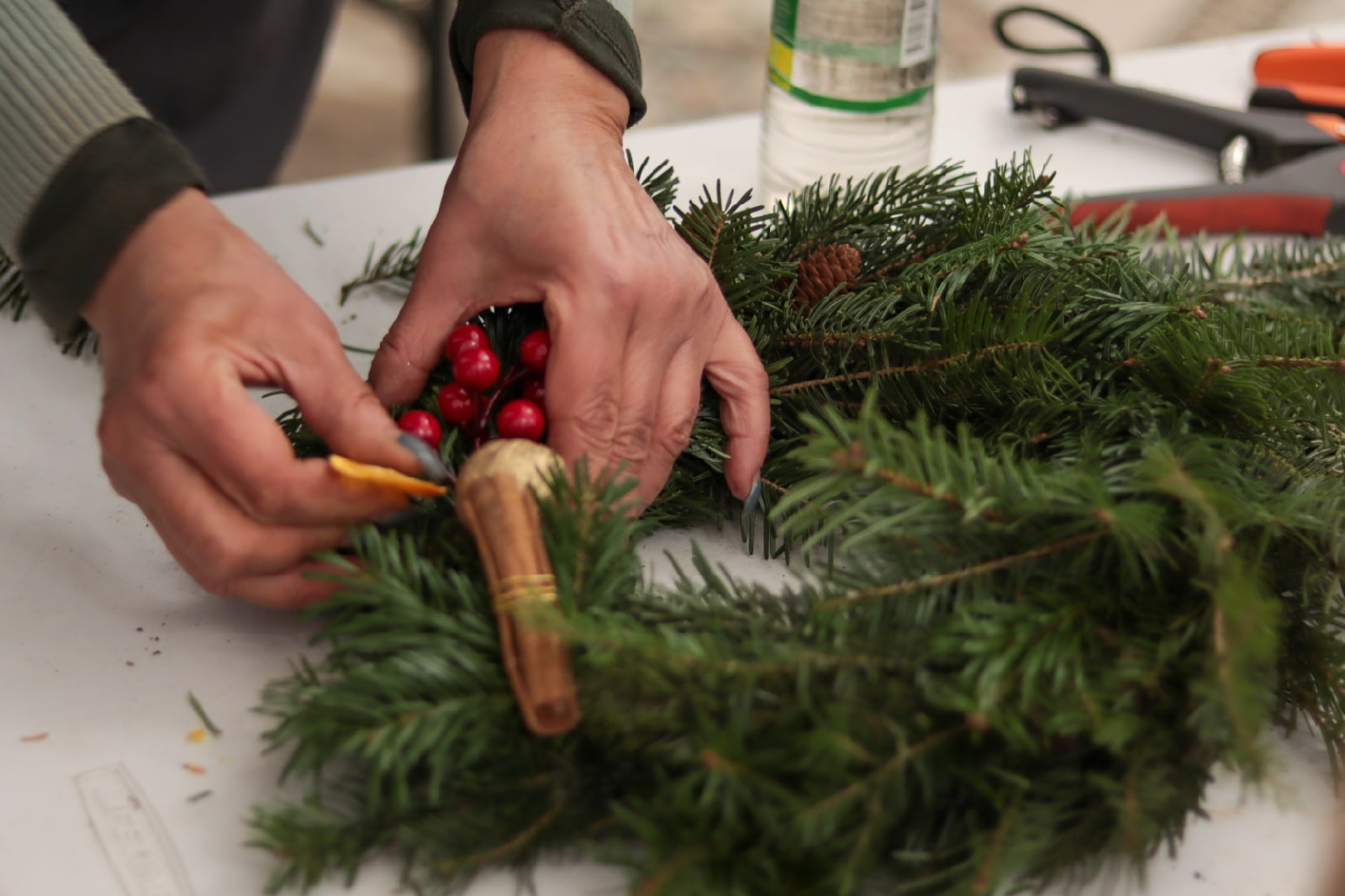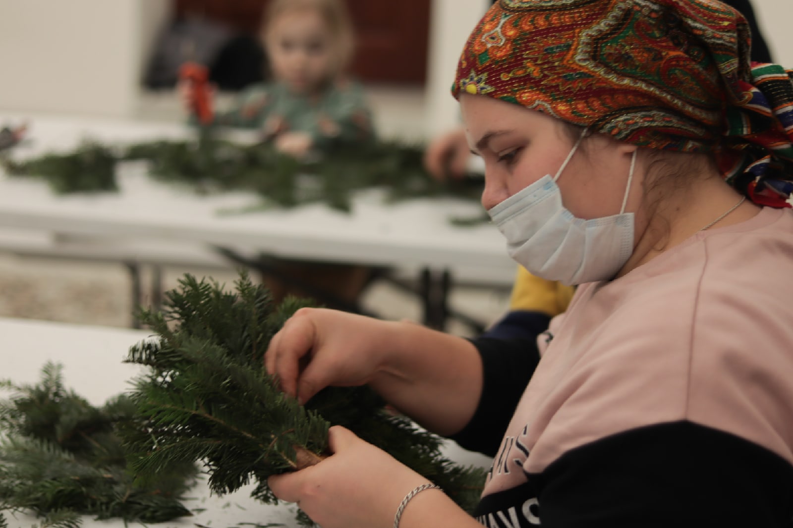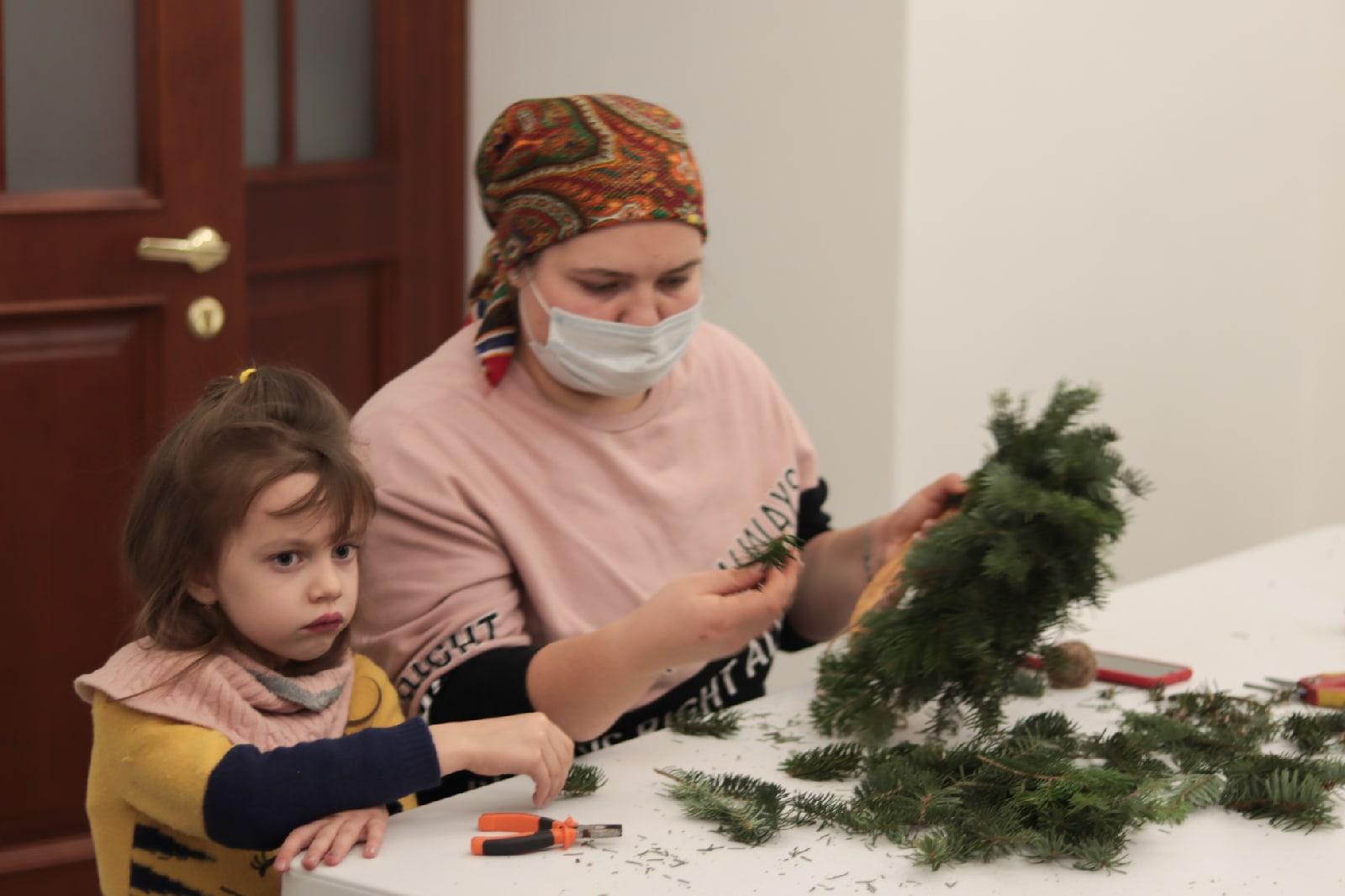Фотоотчет с мастер-класса по созданию Рождественского венка. Благодарим всех, кто пришёл!