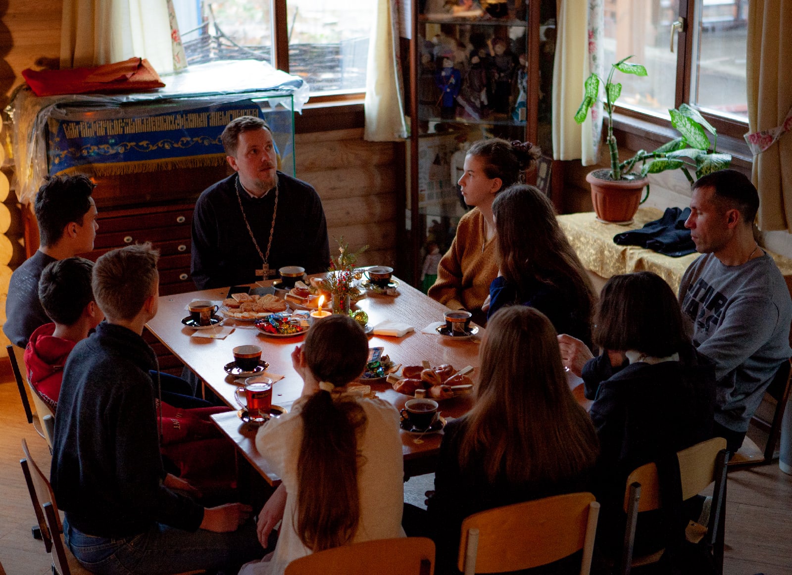 В старшей группе прошла встреча с отцом Романом Зиминым. За чаем общались на интересующие ребят темы, батюшка отвечал на многочисленные вопросы, среди которых было много личных.