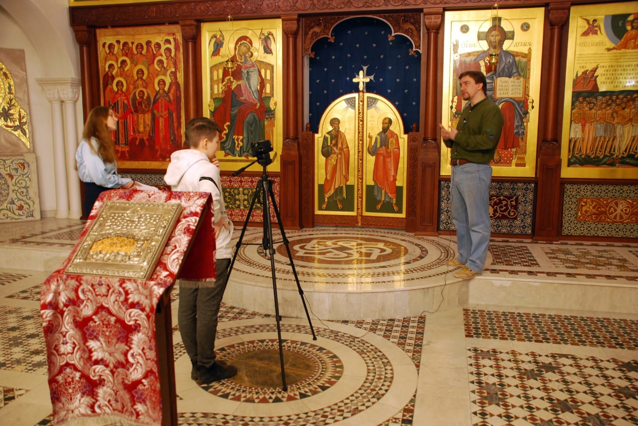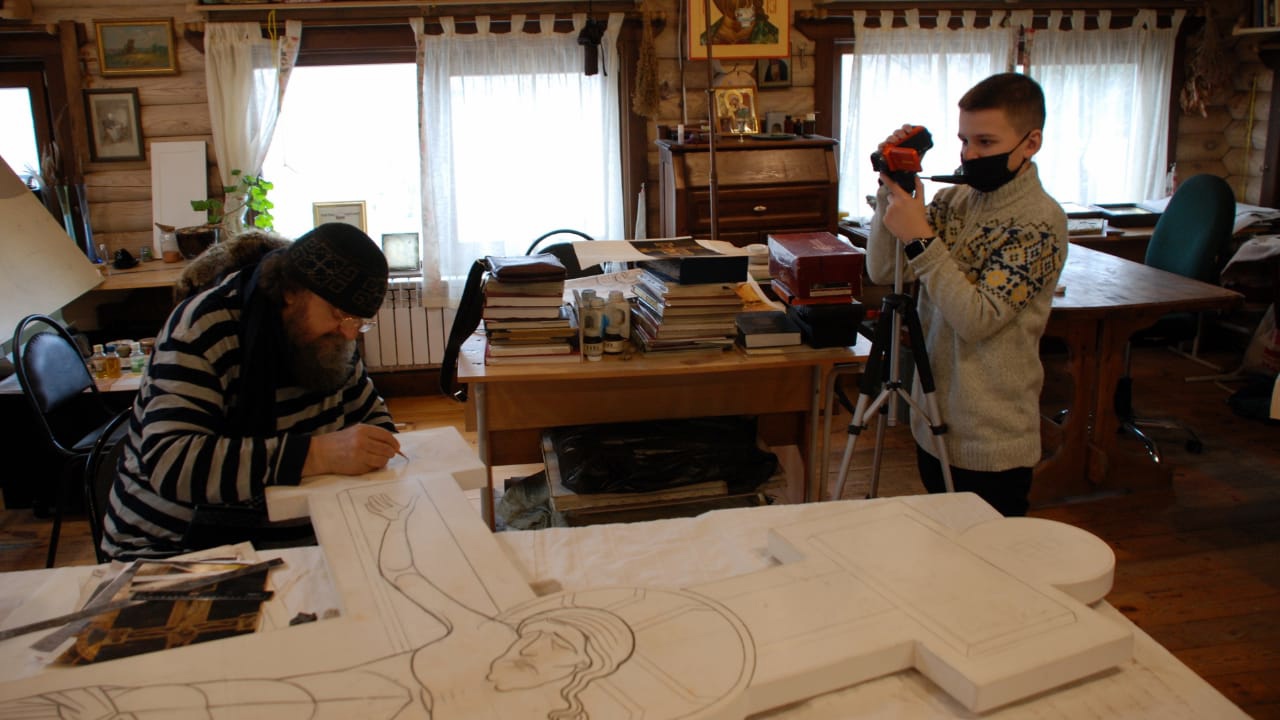 26 февраля 2021 года в нашей мастерской прошли съёмки нескольких фильмов о написании икон и реставрации старинных образов. Этот проект ведут школьники медиастудии 86-й школы «В Оъективе - Мир». Ребята сами снимают и монтируют ролики, выступают в качестве корреспондентов и ведущих. Иконописцу Дмитрию Шестопалову было задано множество вопросов: «Для чего нужны иконы?», «Как их пишут?», «Кто может их писать?», «Как проходит обучение в вашей мастерской?», и т.д.