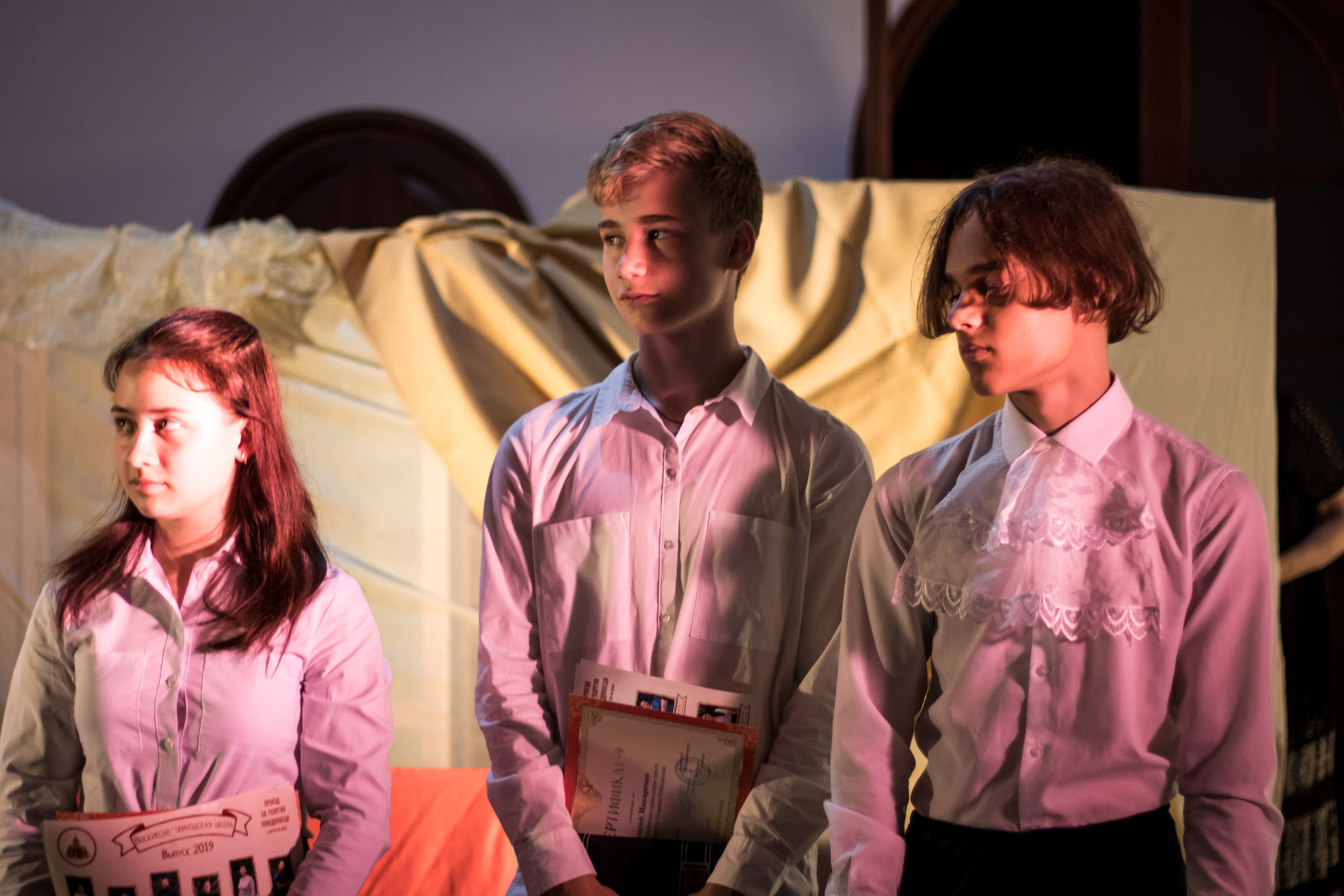 26 мая, после Божественной литургии, состоялось вручение сертификатов об окончании воскресной школы выпускникам 2019 года: Тимофею Орешину, Алексею Макаренко, Полине Щетковой. С добрым напутствием к ним обратились настоятель прихода отец Валерий и директор воскресной школы Ксения Валерьевна. Свой подарок всем пришедшим на праздник показала учащаяся 4 группы Ксюша Эдвардс. Она живёт с родителями в Америке, но этот год провела в Ростове с бабушкой, изучая русский язык, культуру и православие. Ксюша исполнила номер из балета Раймонда Глазунова.