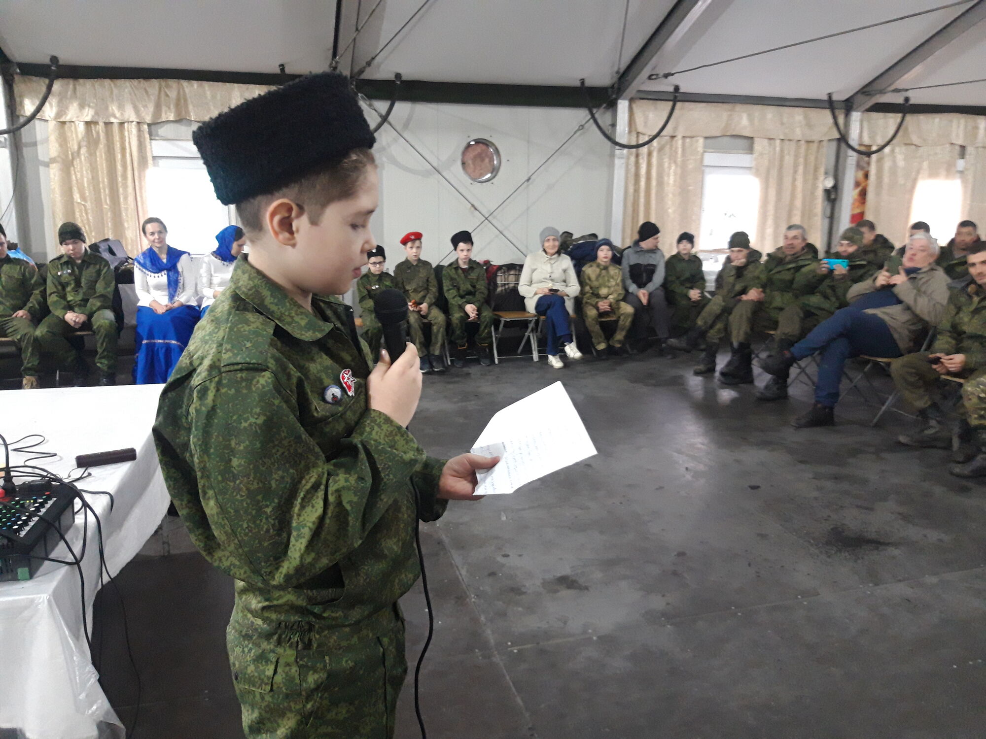 26 ноября 2023 года представители Ростовского духовно патриотического центра Святого Георгия Победоносца (Главного православного воинского храма ЮВО) по согласованию с командованием одной из воинских частей организовали культурно-досуговое мероприятие для солдат и командиров Российской армии. В организации и проведении концертной программы приняли участие юные защитники Отечества учащиеся приходской воскресной школы, занимающиеся по программе «Уроки мужества» (Начальная военная подготовка к службе в Российской армии), их инструкторы-наставники и родители.