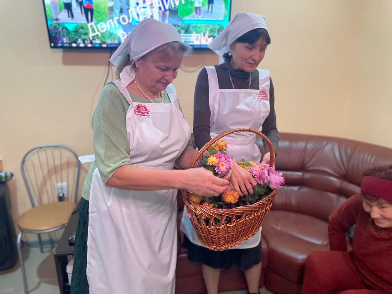 Сестры милосердия храма Иоанна Воина провели ряд мероприятий, посвященных Дню матери. 25 ноября посетили ЦСО советского района и поздравили с праздником всех женщин. Сестра милосердия Валентина Кижикина показала презентацию, рассказала о празднике. Каждый получил букет осенних цветов.