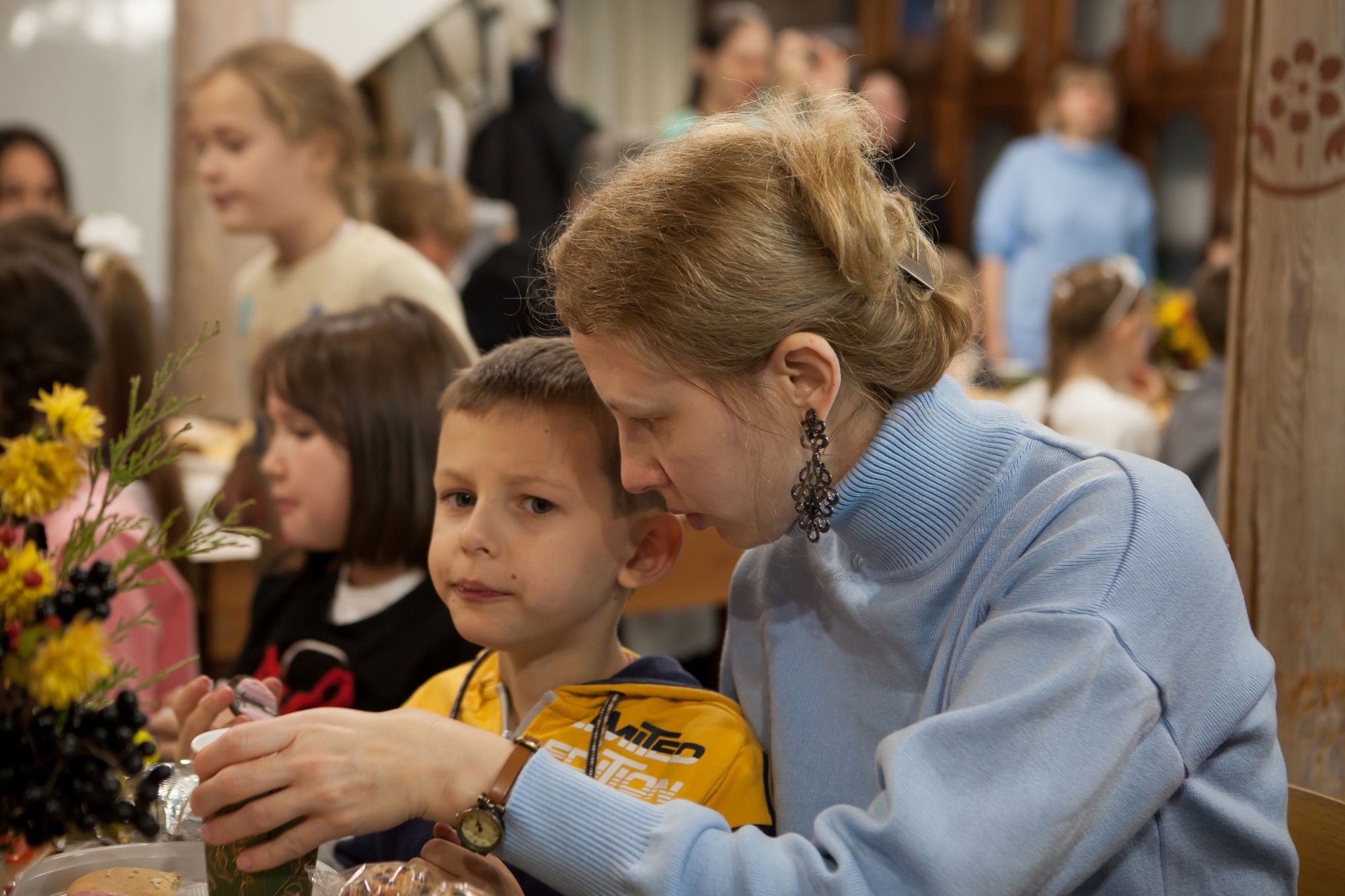 В минувшие выходные наша воскресная школа отметила День Мамы. Воспитанники младших групп, их мамы, бабушки и крестные собрались в теплом и тесном кругу за праздничным чаепитием в субботний вечер. Дети со своими педагогами приготовили песни, стихи и подарки. Каждая семья представила видеозарисовку "Вместе с мамой" о совместном времяпровождении. Прошёл кулинарный конкурс угощений и фотовыставка семейных портретов. Праздник продолжился весёлыми конкурсами и играми.