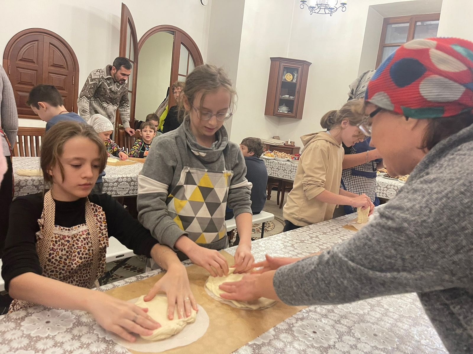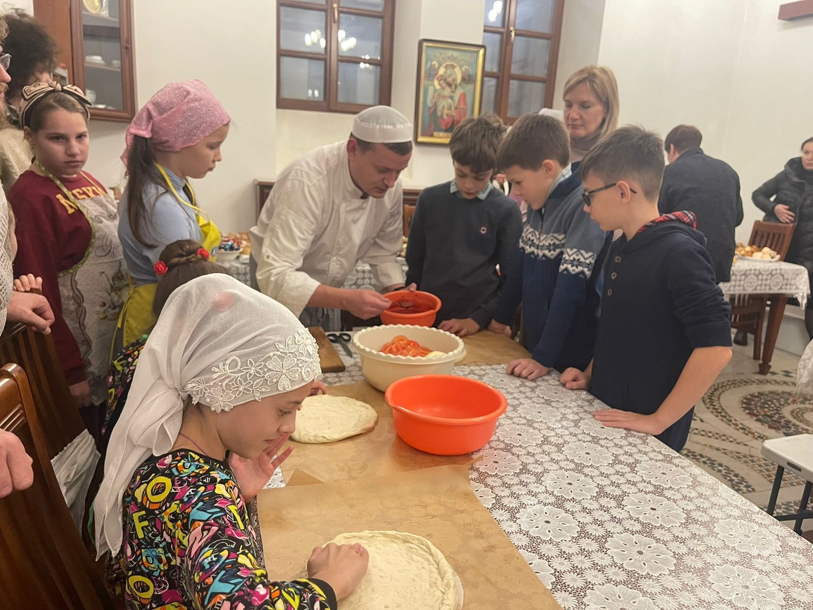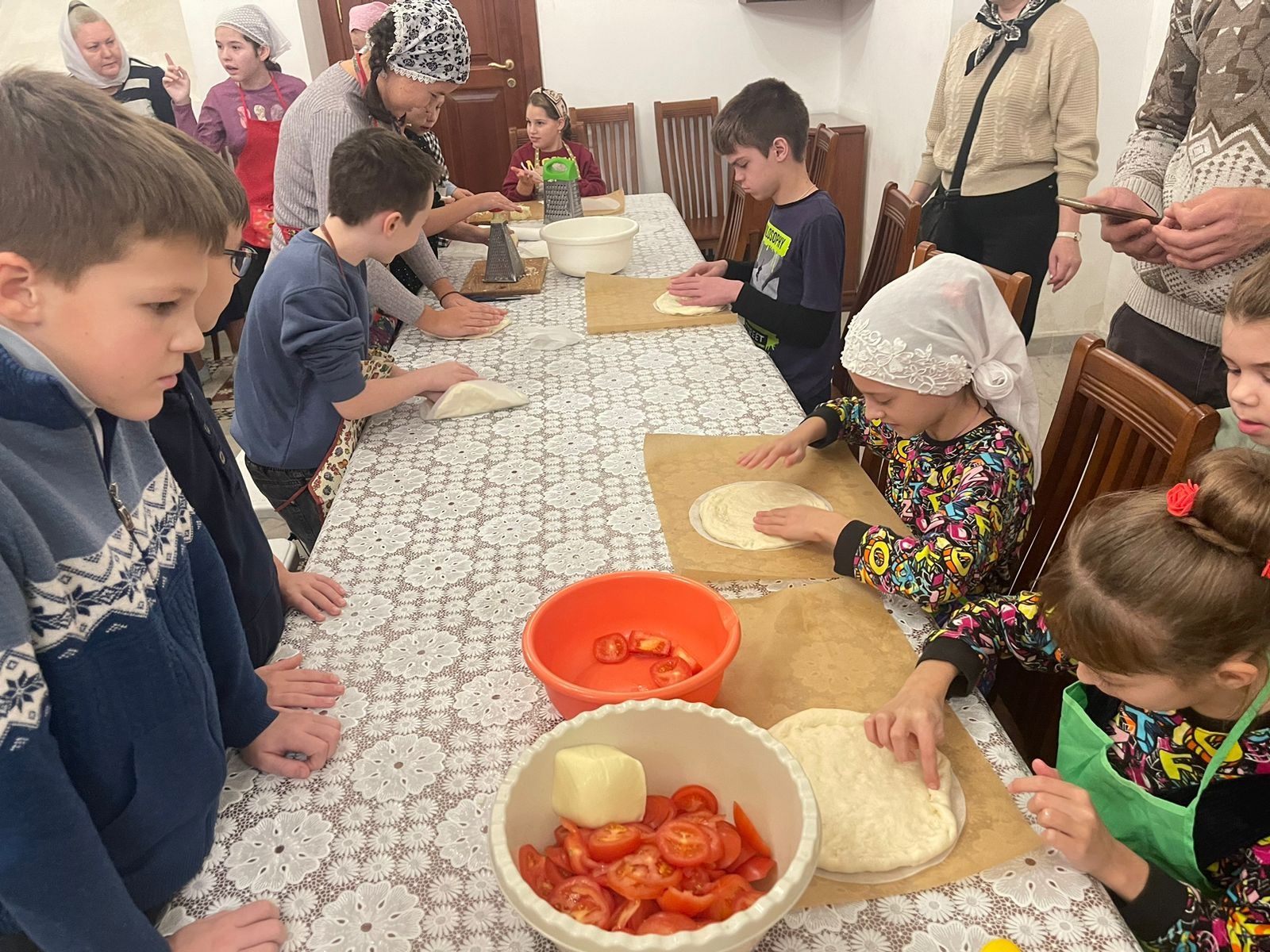 В воскресенье педагоги и воспитанники старших групп организовали ещё один праздник. Под руководством руководителя флористической мастерской Валерии Букиной ребята создали цветочную композицию, а вместе с приходским поваром Сергеем Чепурко приготовили вкусную пиццу. Результаты своего труда мальчишки и девчонки представили на праздничном чаепитии, на котором читали стихи и пели песни для своих мам и бабушек.
