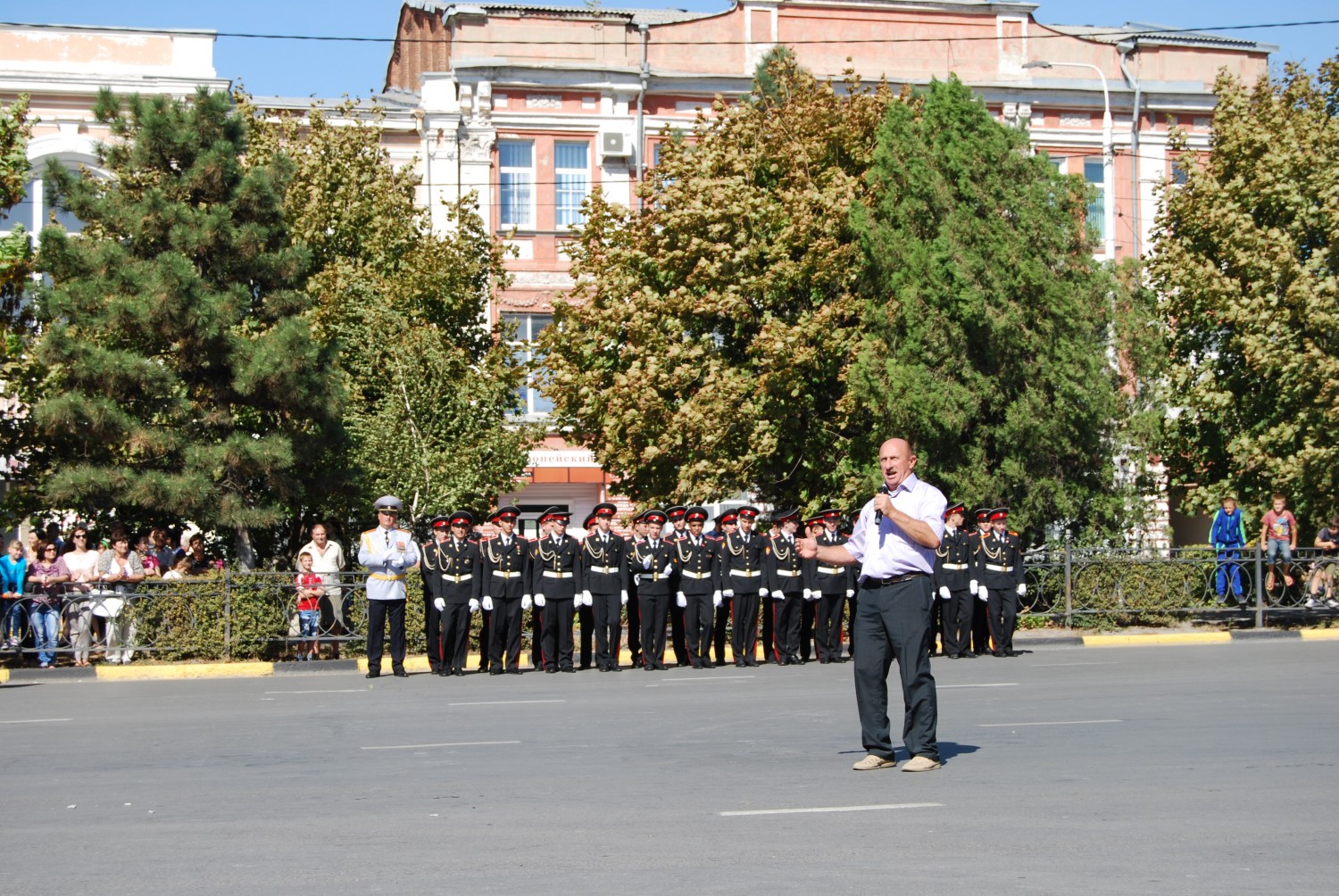 26 сентября 2015 года на центральной площади города Новочеркасска прошла церемония принятия Торжественного обещания обучающимися 1-го курса Новочеркасского Суворовского Военного Училища МВД России. По приглашению начальника училища, полковника внутренней службы Воробьева Валерия Викторовича в мероприятии приняли участие представители Ростовского Духовно Патриотического Центра Святого Георгия Победоносца, ветеран Российской Армии Шашлюк Юрий Алексеевич и председатель нашего центра Чуцков Виктор Иванович. Для всех собравшихся в авторском исполнении прозвучала песня «Суворовцы, кадеты, юнкера», написанная нашим центром специально для Новочеркасского Суворовского училища. Почетными гостями мероприятия были представители Административных органов Ростовской Области города Новочеркасска, Ростовской на Дону Епархии, силовых структур, ветераны, родители и близкие суворовцев.