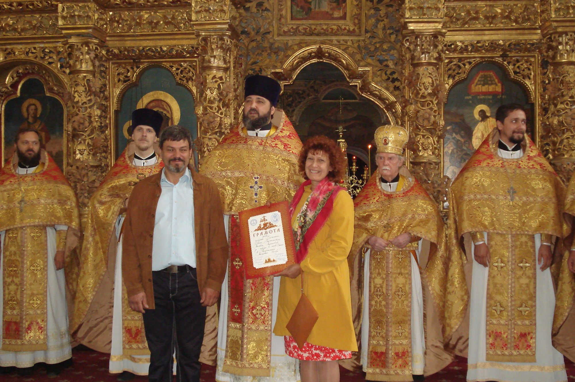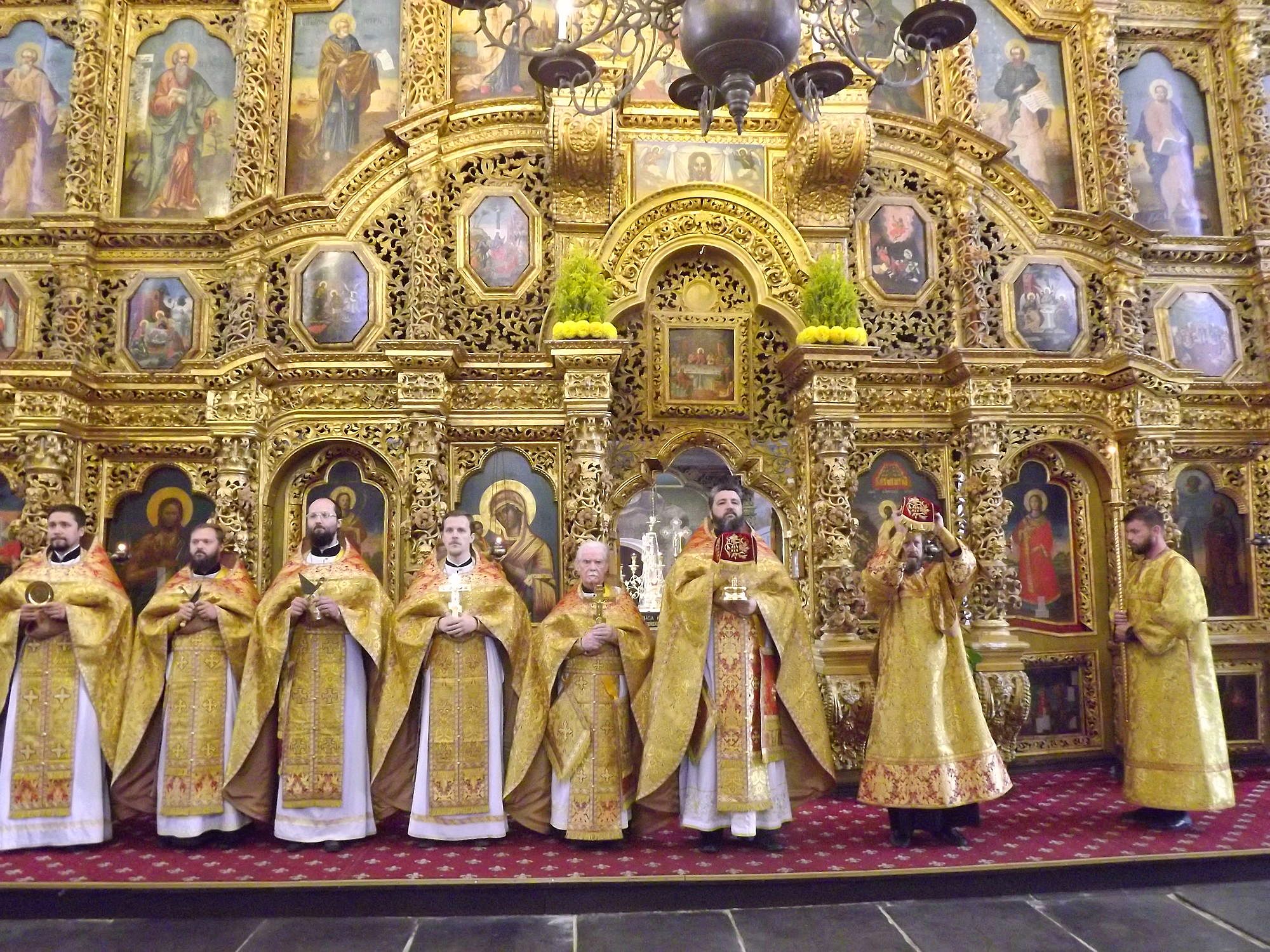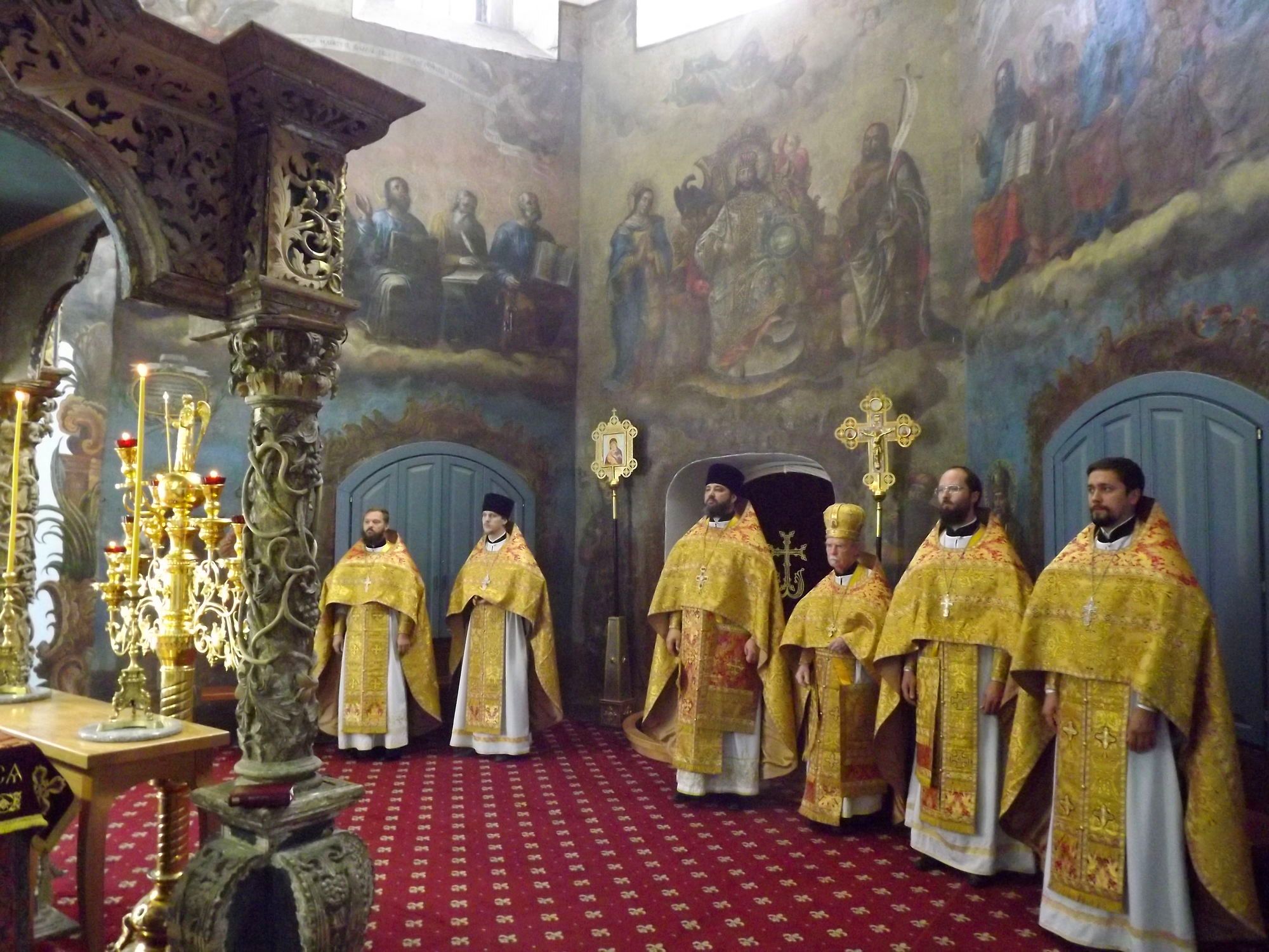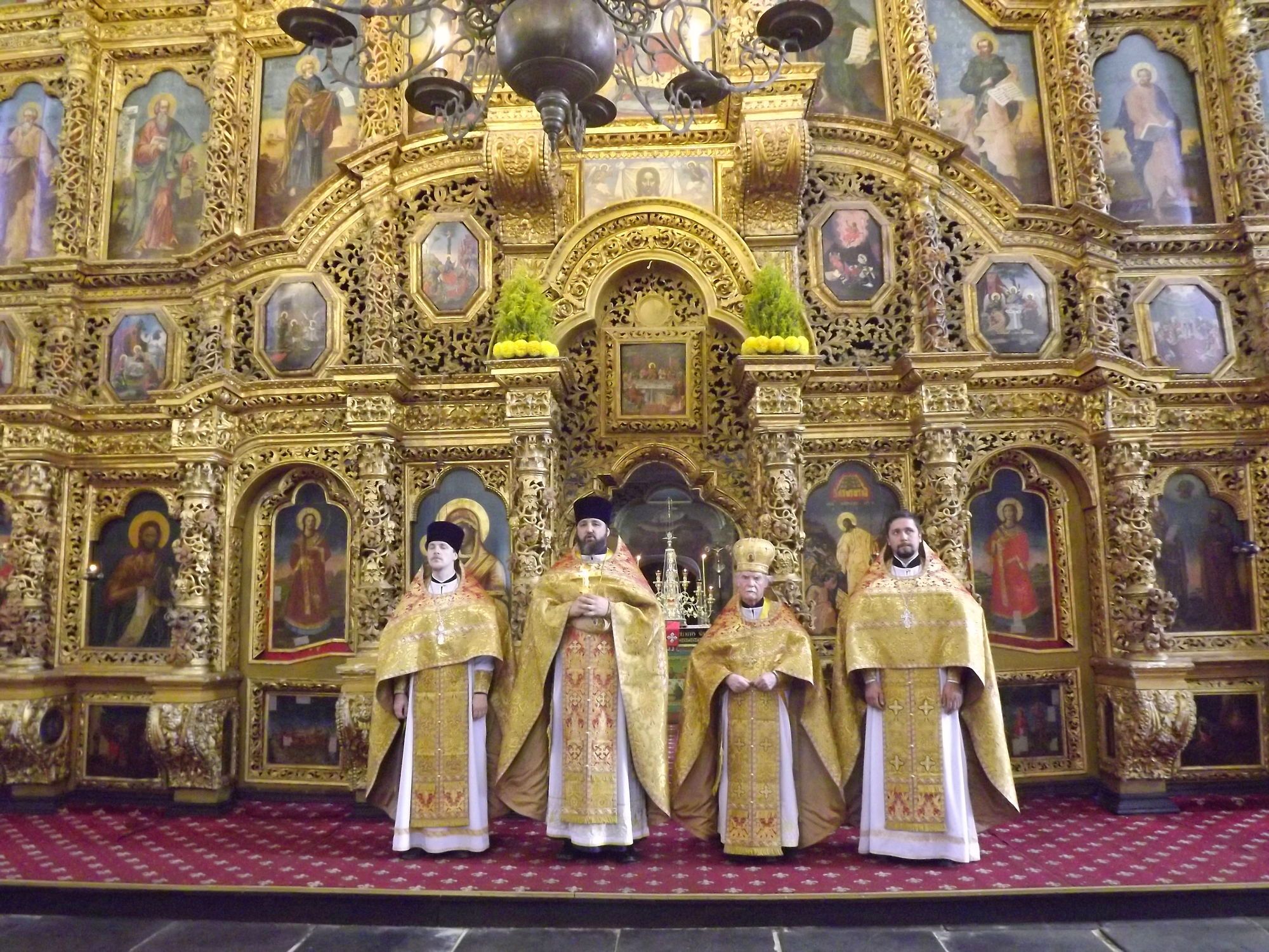 В своей проповеди протоиерей Валерий Волощук поздравил гостей и прихожан с престольным праздником нашего трехсотлетнего собора, отметил положительные изменения, происшедшие с тех пор, когда полтора года назад благословением преосвященнейшего владыки митрополита Меркурия наша община начала нести здесь послушание. «Послушание нелегкое, но благодатное. Казалось бы в нынешнее время мы имеем много технических возможностей, но вряд ли в новом строительстве мы можем достичь такого высокого и глубокого уровня Боголюбия. В то время действительно знали больше, понимали лучше, видели не только внешнее, но и умели сопоставлять с ним внутреннее. Такой величественный иконостас, напоминающий о Царствии небесном, многоярусный, действительно царственный, имеющий много небес, как говорил апостол Павел. Неся здесь послушание, мы чувствуем эту любовь и это внимание, вдохновляемся благоговением, умилением, которое здесь веками собиралось. И опять же радуемся, что Бог доверил нам такую святыню. В этот день хотелось бы призвать всех, чтобы кроме восторга и ликования мы приложили сугубые молитвы по поводу созидания этой святыни. Являясь памятником архитектуры и имея уже глубокий возраст, собор безусловно требует очень досконального правильного научного подхода к реставрации, восстановлению не только архитектуры, но и внутреннего убранства, живописи, архитектуры иконостаса. Все это нелегко, поэтому все мы безусловно просим милости и помощи у Бога.»