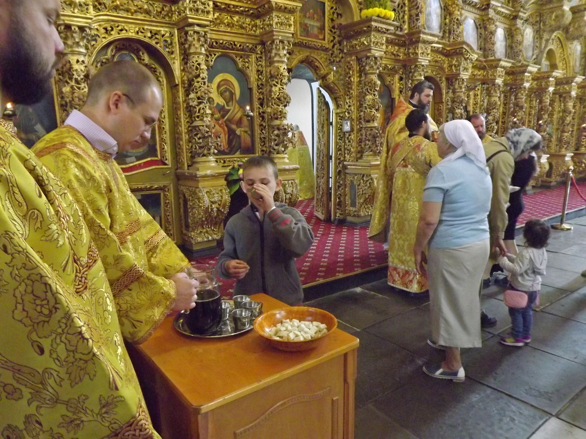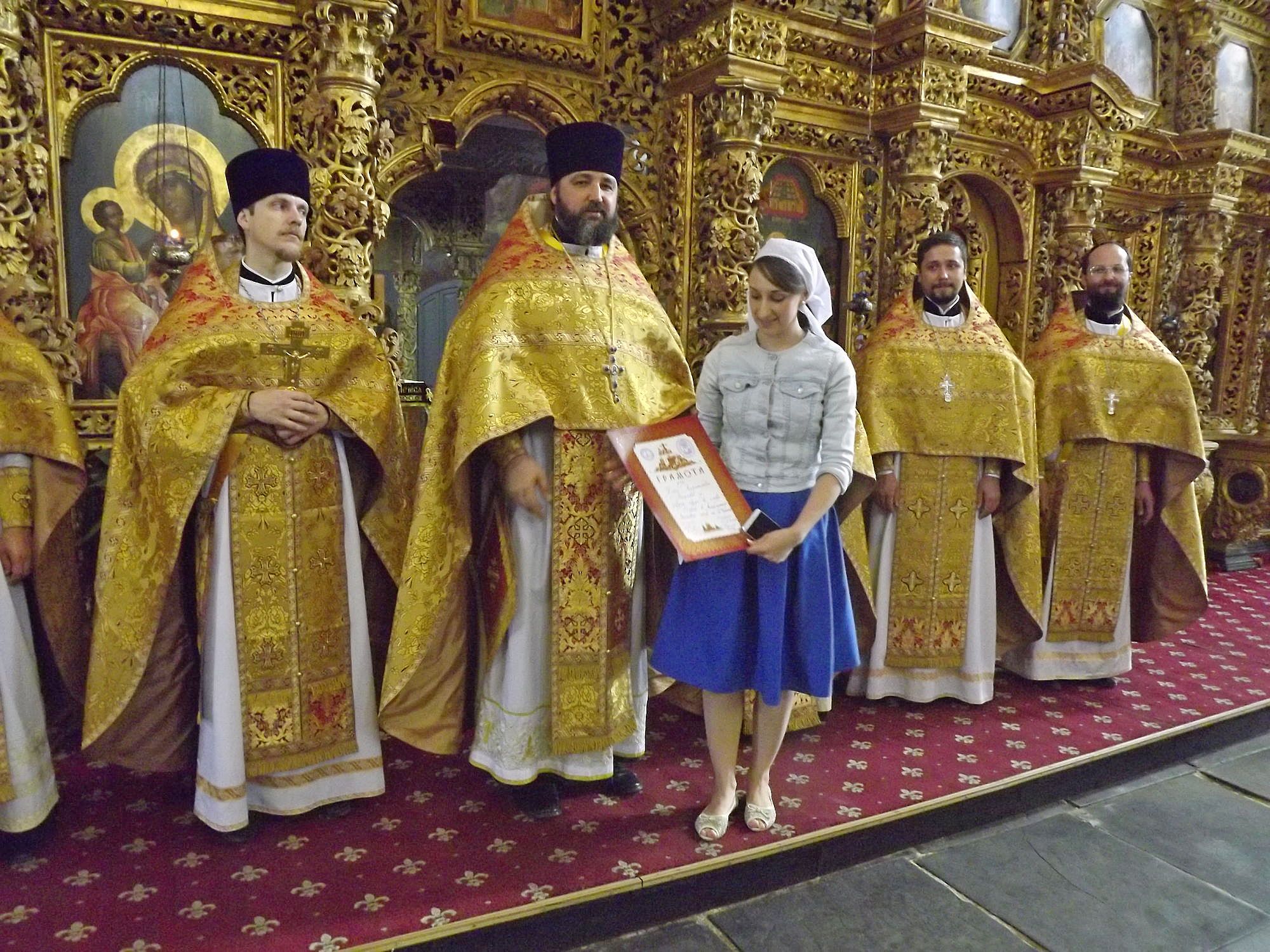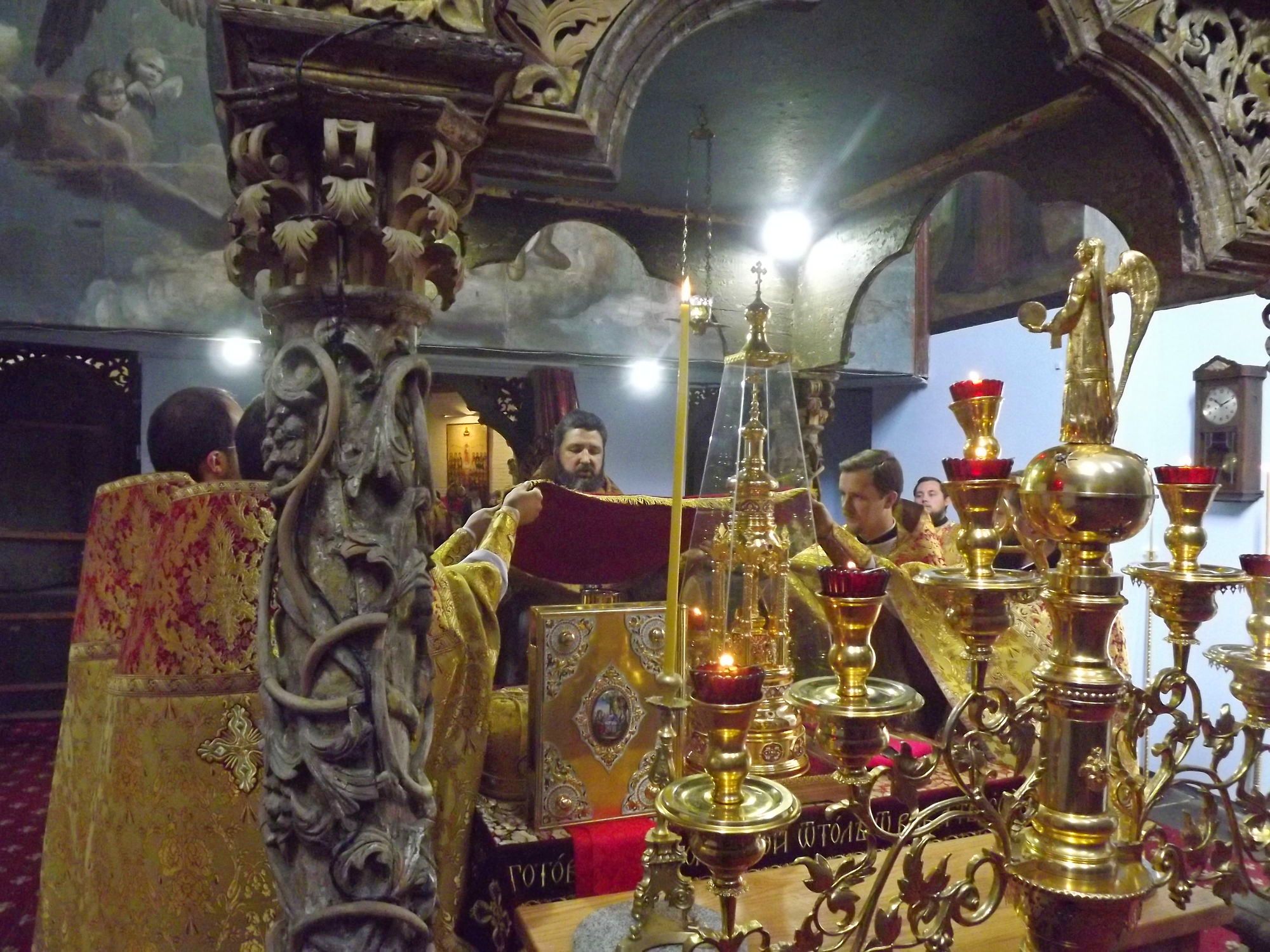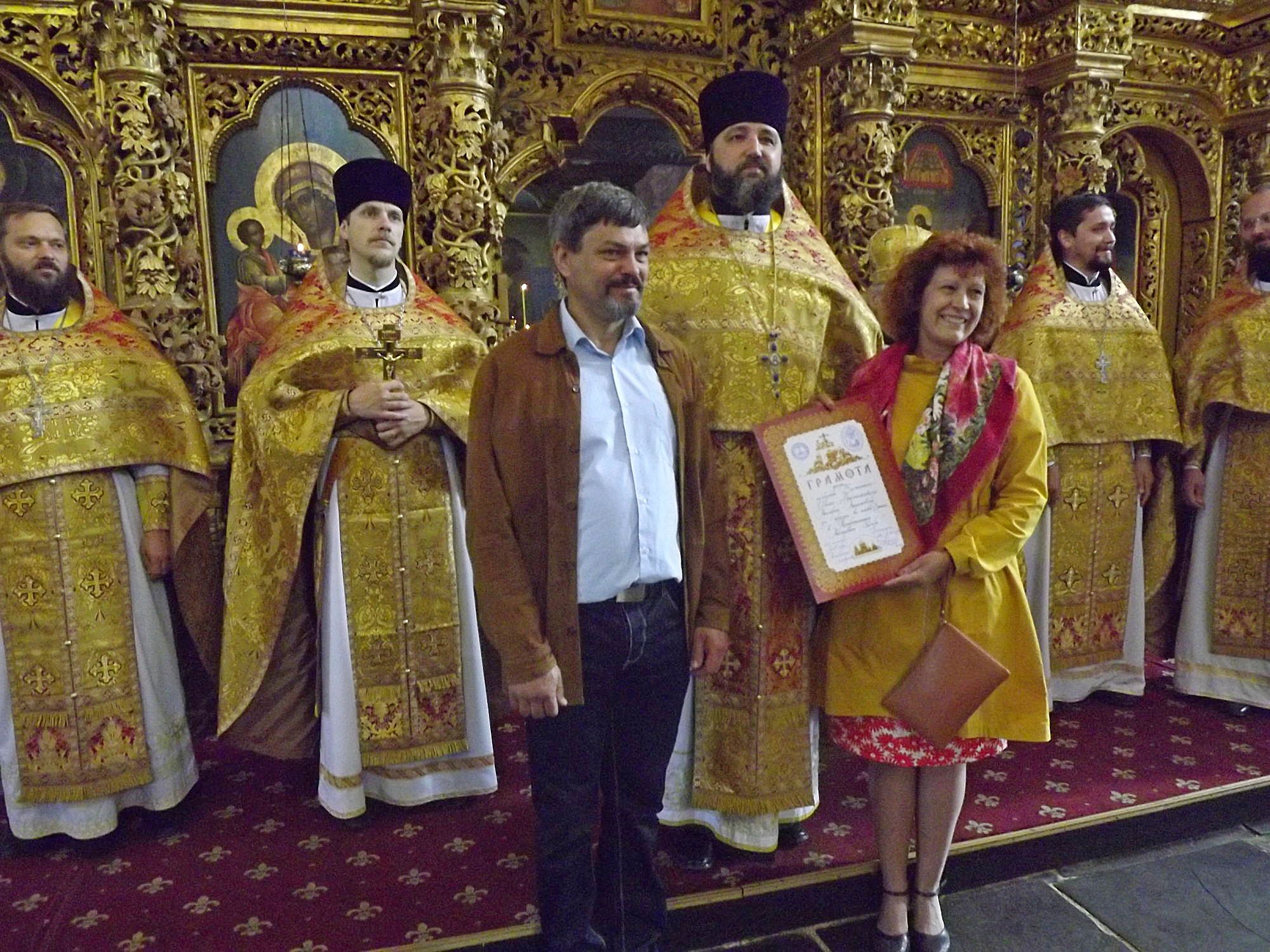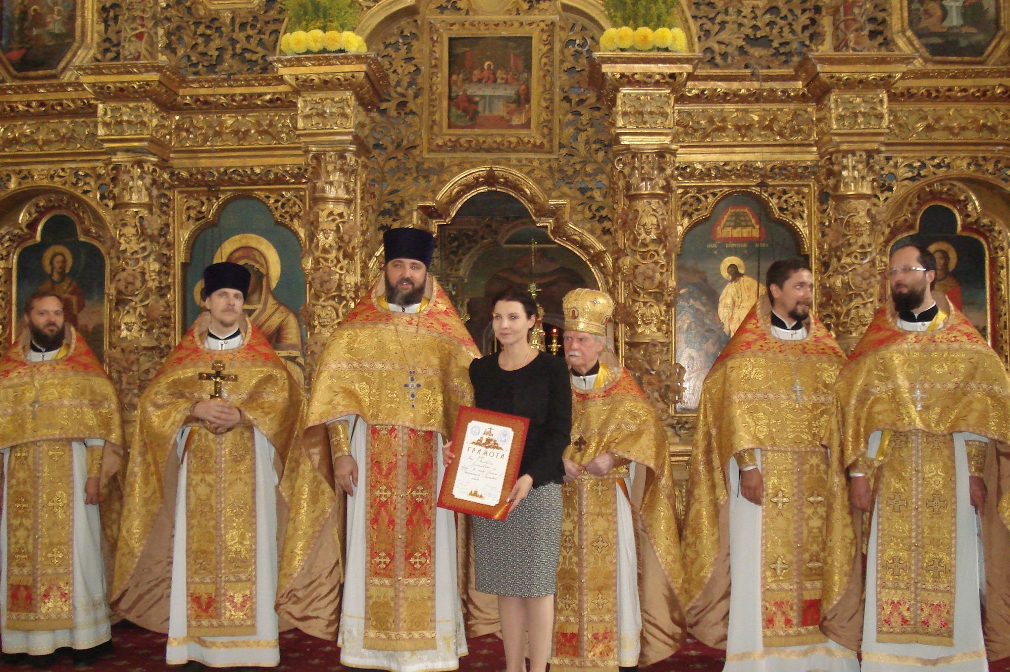 В своей проповеди протоиерей Валерий Волощук поздравил гостей и прихожан с престольным праздником нашего трехсотлетнего собора, отметил положительные изменения, происшедшие с тех пор, когда полтора года назад благословением преосвященнейшего владыки митрополита Меркурия наша община начала нести здесь послушание. «Послушание нелегкое, но благодатное. Казалось бы в нынешнее время мы имеем много технических возможностей, но вряд ли в новом строительстве мы можем достичь такого высокого и глубокого уровня Боголюбия. В то время действительно знали больше, понимали лучше, видели не только внешнее, но и умели сопоставлять с ним внутреннее. Такой величественный иконостас, напоминающий о Царствии небесном, многоярусный, действительно царственный, имеющий много небес, как говорил апостол Павел. Неся здесь послушание, мы чувствуем эту любовь и это внимание, вдохновляемся благоговением, умилением, которое здесь веками собиралось. И опять же радуемся, что Бог доверил нам такую святыню. В этот день хотелось бы призвать всех, чтобы кроме восторга и ликования мы приложили сугубые молитвы по поводу созидания этой святыни. Являясь памятником архитектуры и имея уже глубокий возраст, собор безусловно требует очень досконального правильного научного подхода к реставрации, восстановлению не только архитектуры, но и внутреннего убранства, живописи, архитектуры иконостаса. Все это нелегко, поэтому все мы безусловно просим милости и помощи у Бога.»