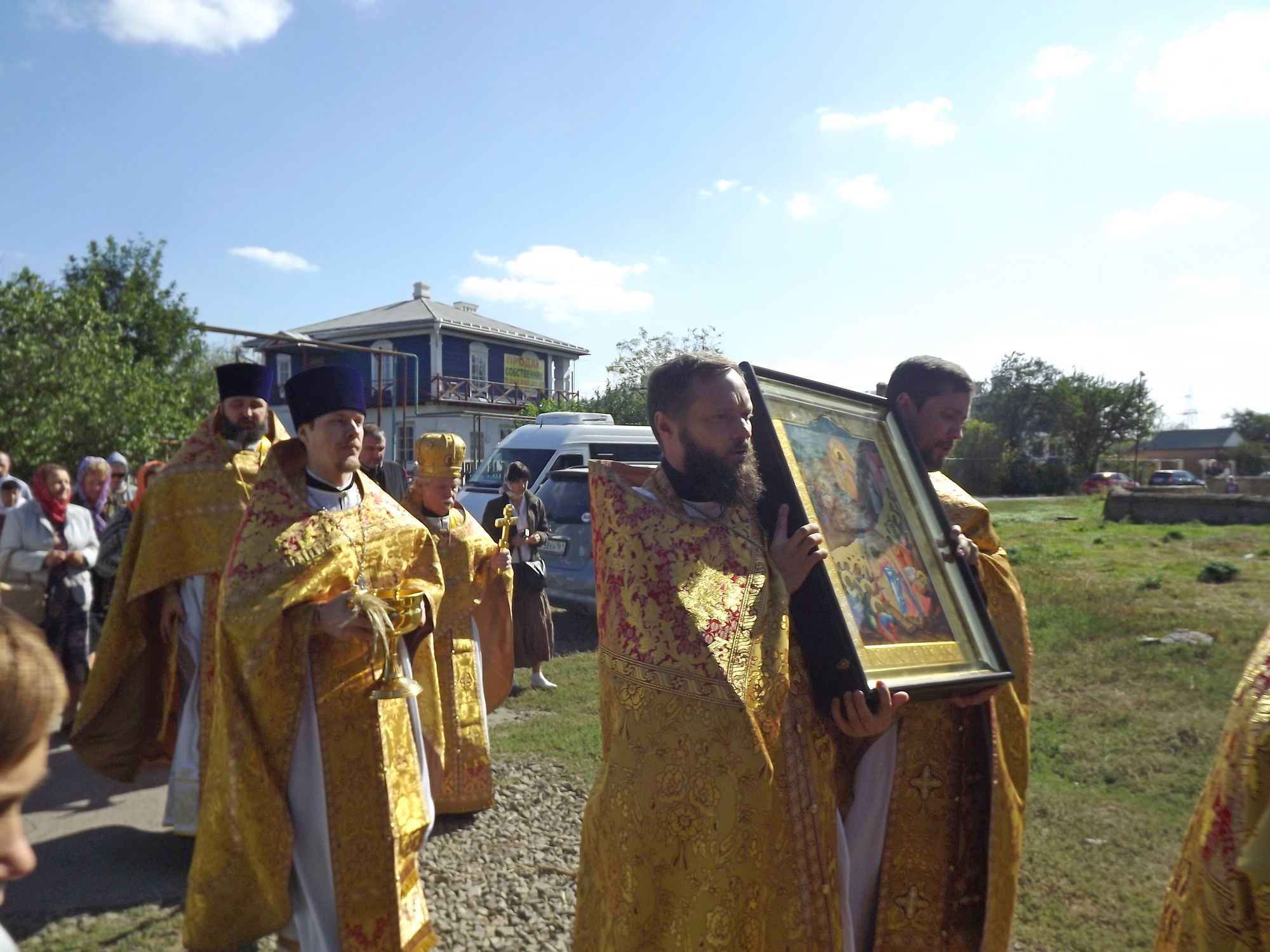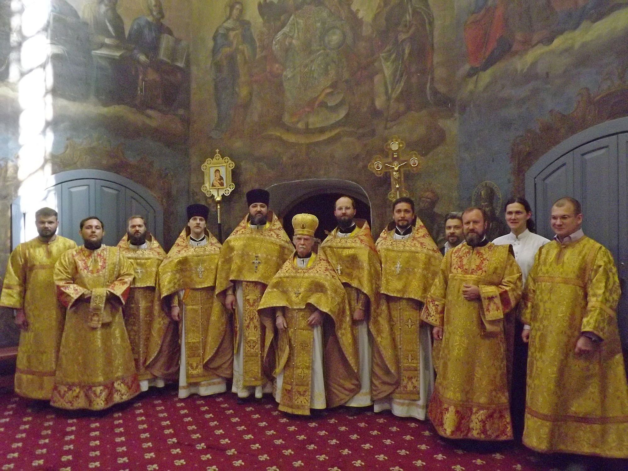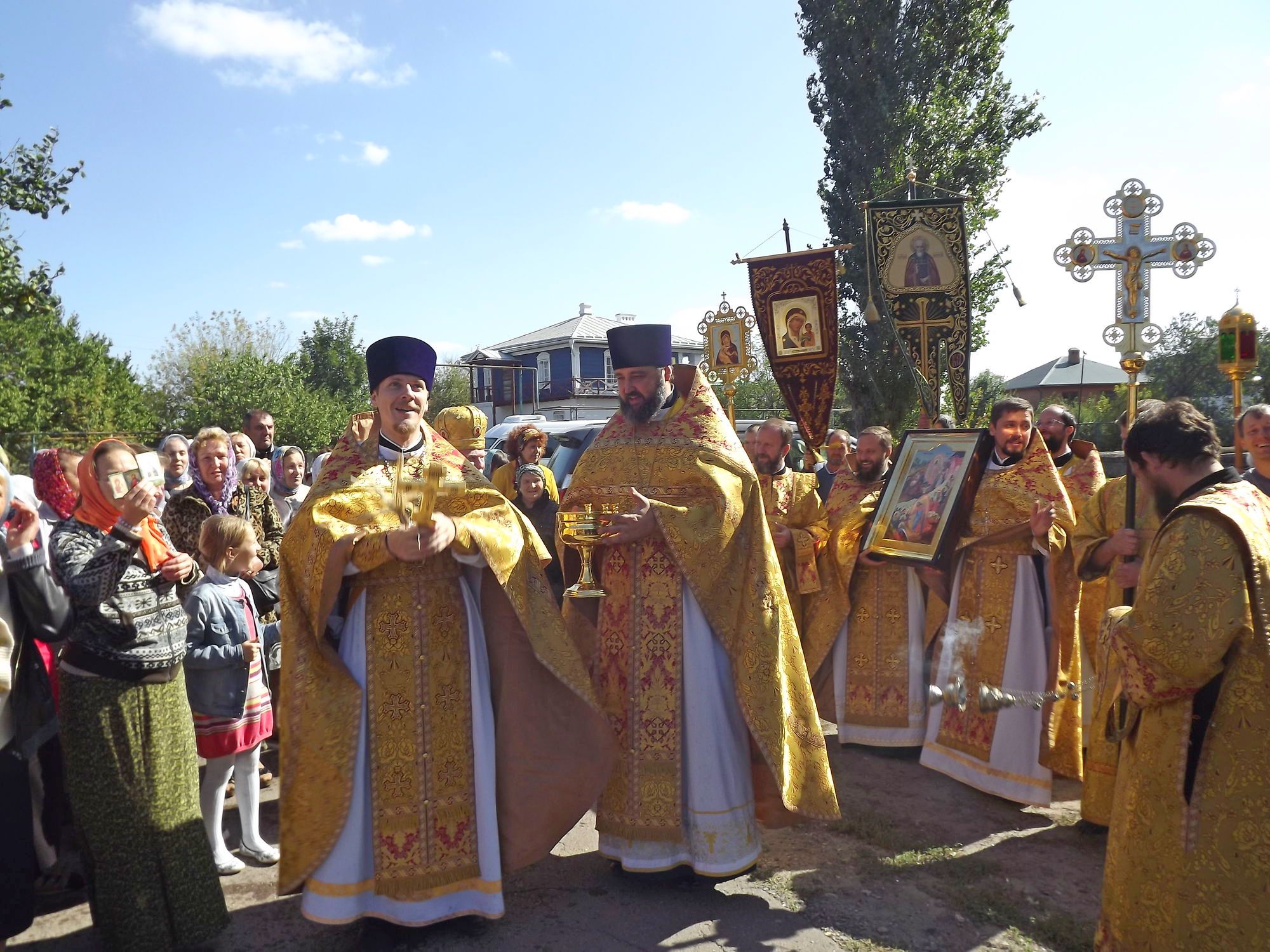 Всё духовенство прихода святого Георгия Победоносца: настоятель протоиерей Валерий Волощук, протоиерей Валентин Ермилов, иерей Роман Зимин, иерей Иоанн Молчанов, иерей Александр Орешин, иерей Иоанн Цупко, диакон Сергий Кропивницкий, диакон Дионисий Сакович — собрались в этот день в станице Старочеркасской на праздничную Божественную Литургию. Радость "Осенней Пасхи" с приходом разделили почетные гости праздника — монахи Свято-Донского Старочеркасского мужского монастыря.