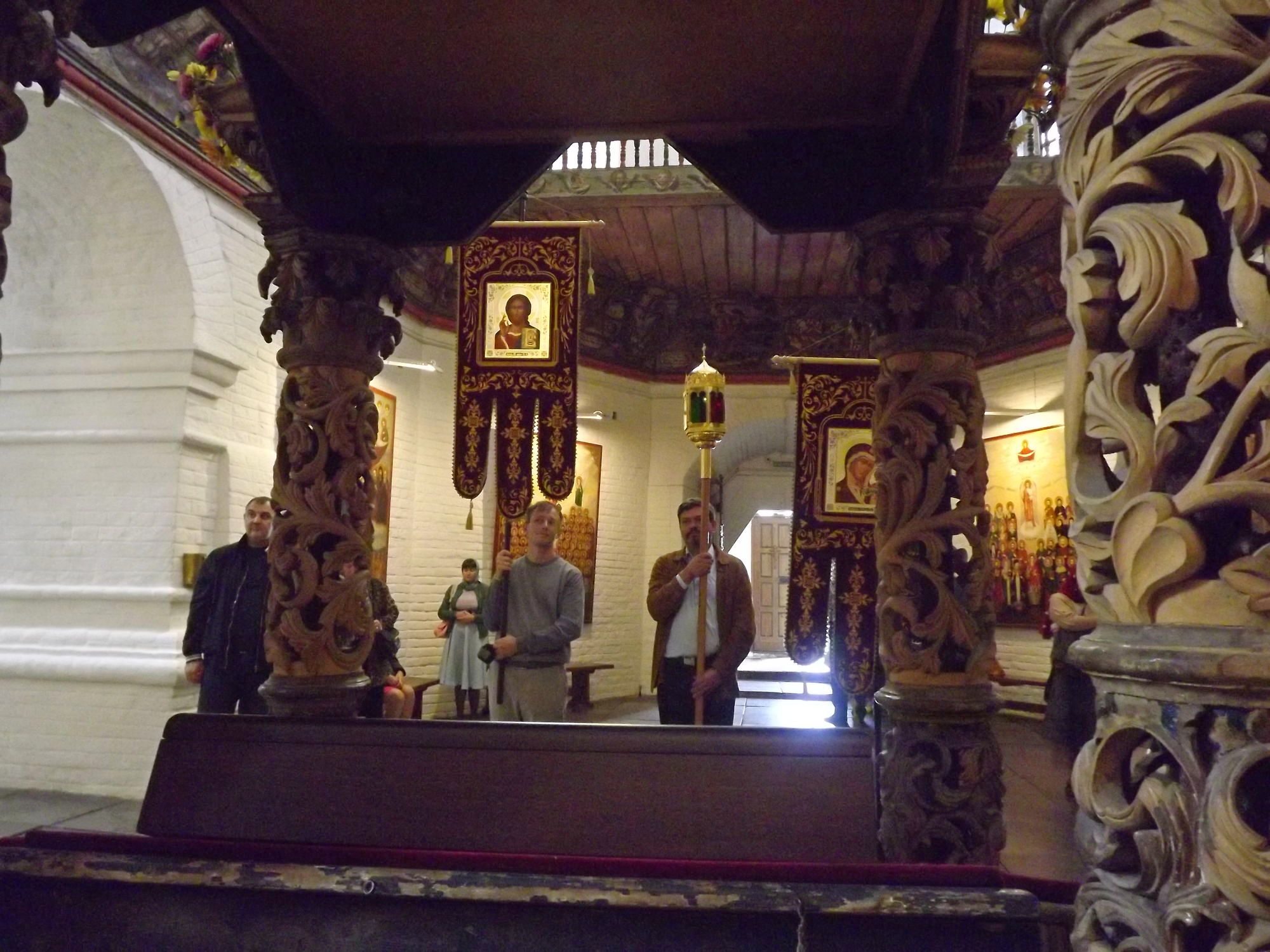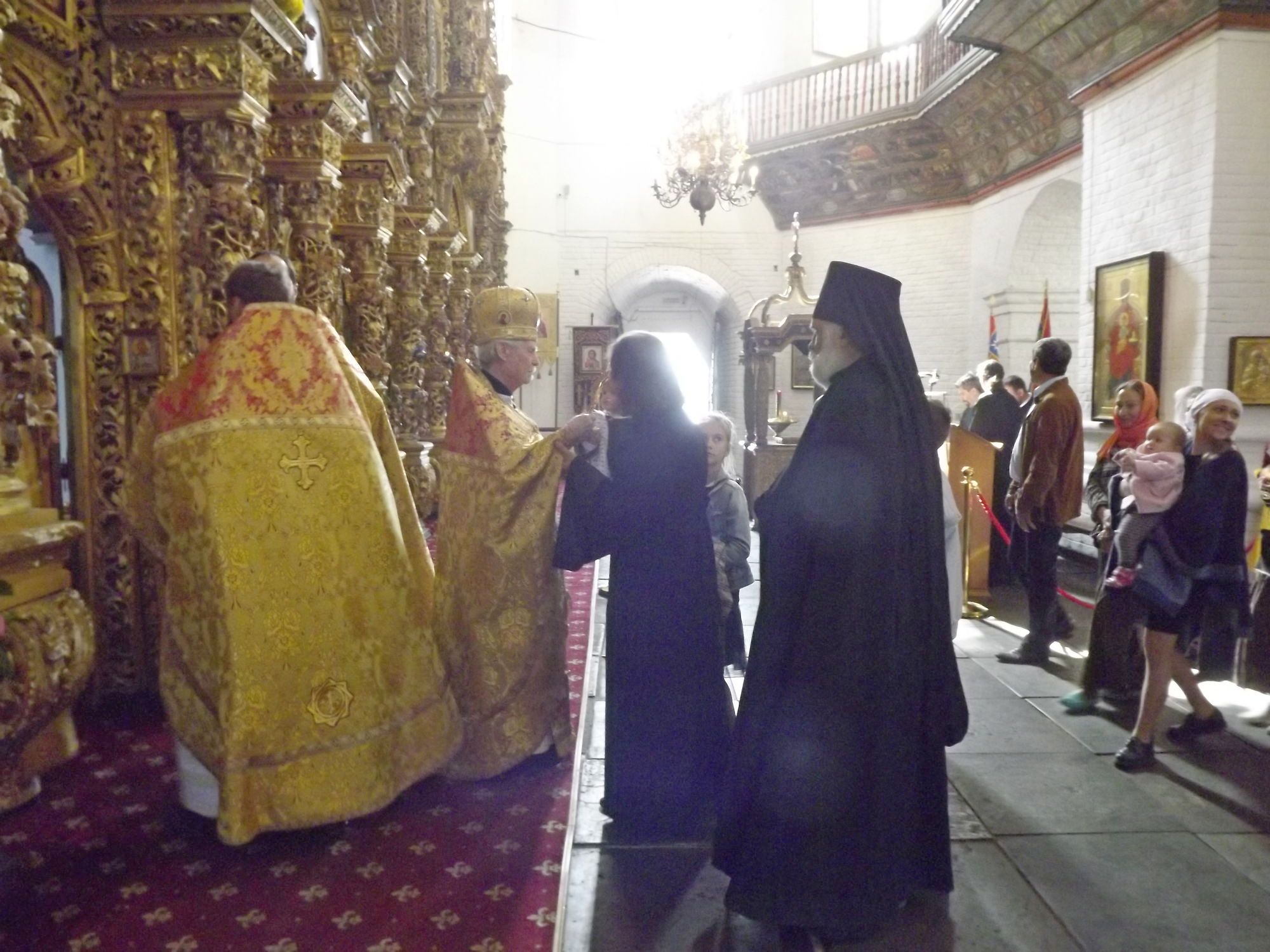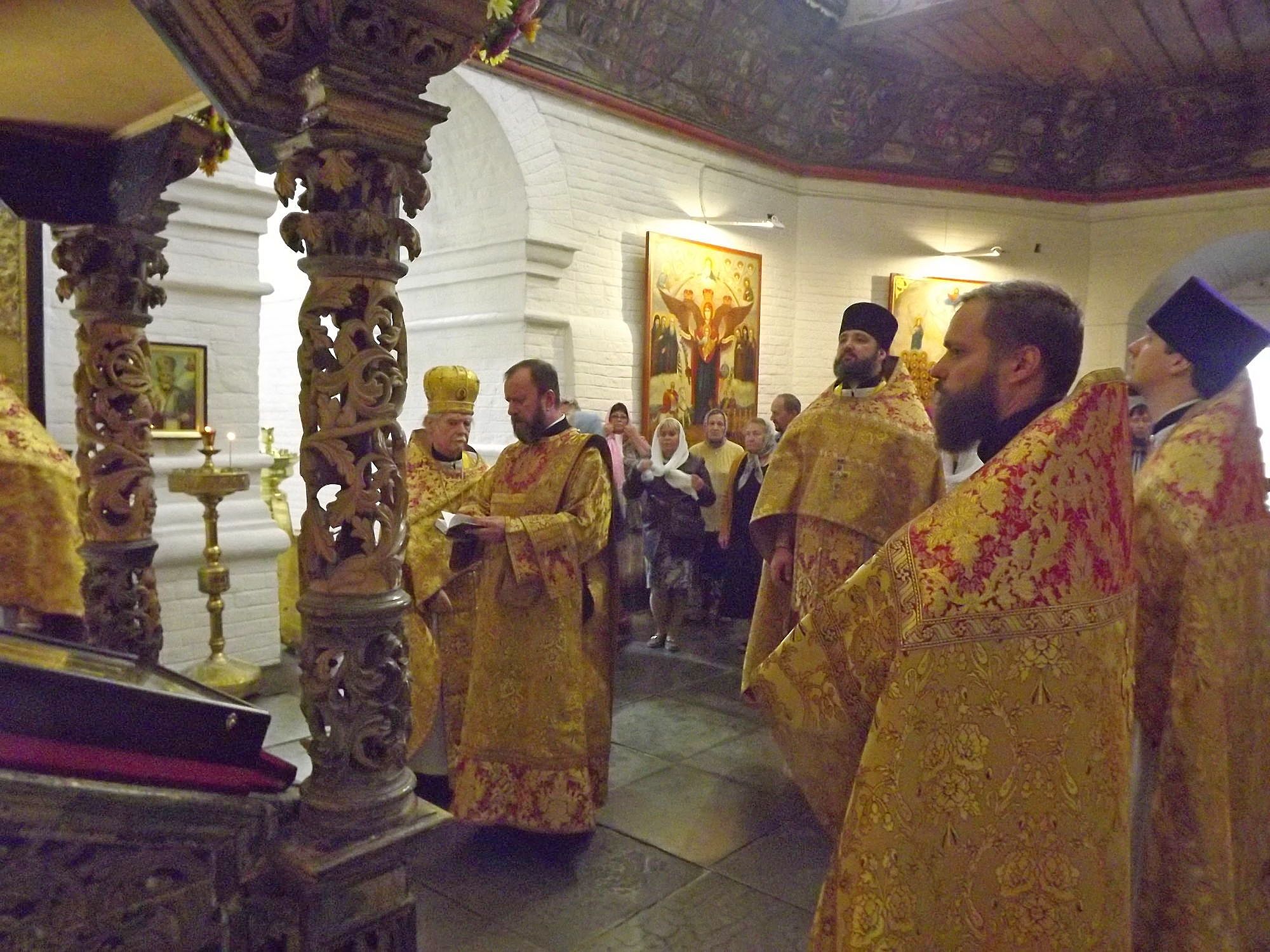 Всё духовенство прихода святого Георгия Победоносца: настоятель протоиерей Валерий Волощук, протоиерей Валентин Ермилов, иерей Роман Зимин, иерей Иоанн Молчанов, иерей Александр Орешин, иерей Иоанн Цупко, диакон Сергий Кропивницкий, диакон Дионисий Сакович — собрались в этот день в станице Старочеркасской на праздничную Божественную Литургию. Радость "Осенней Пасхи" с приходом разделили почетные гости праздника — монахи Свято-Донского Старочеркасского мужского монастыря.
