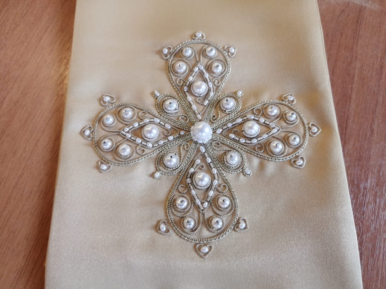 Еще одна чудесная работа, выполненная выпускницей курса "Орнаментальное шитье" школы церковной вышивки при золотошвейной мастерской в честь святой праведной Тарифы.