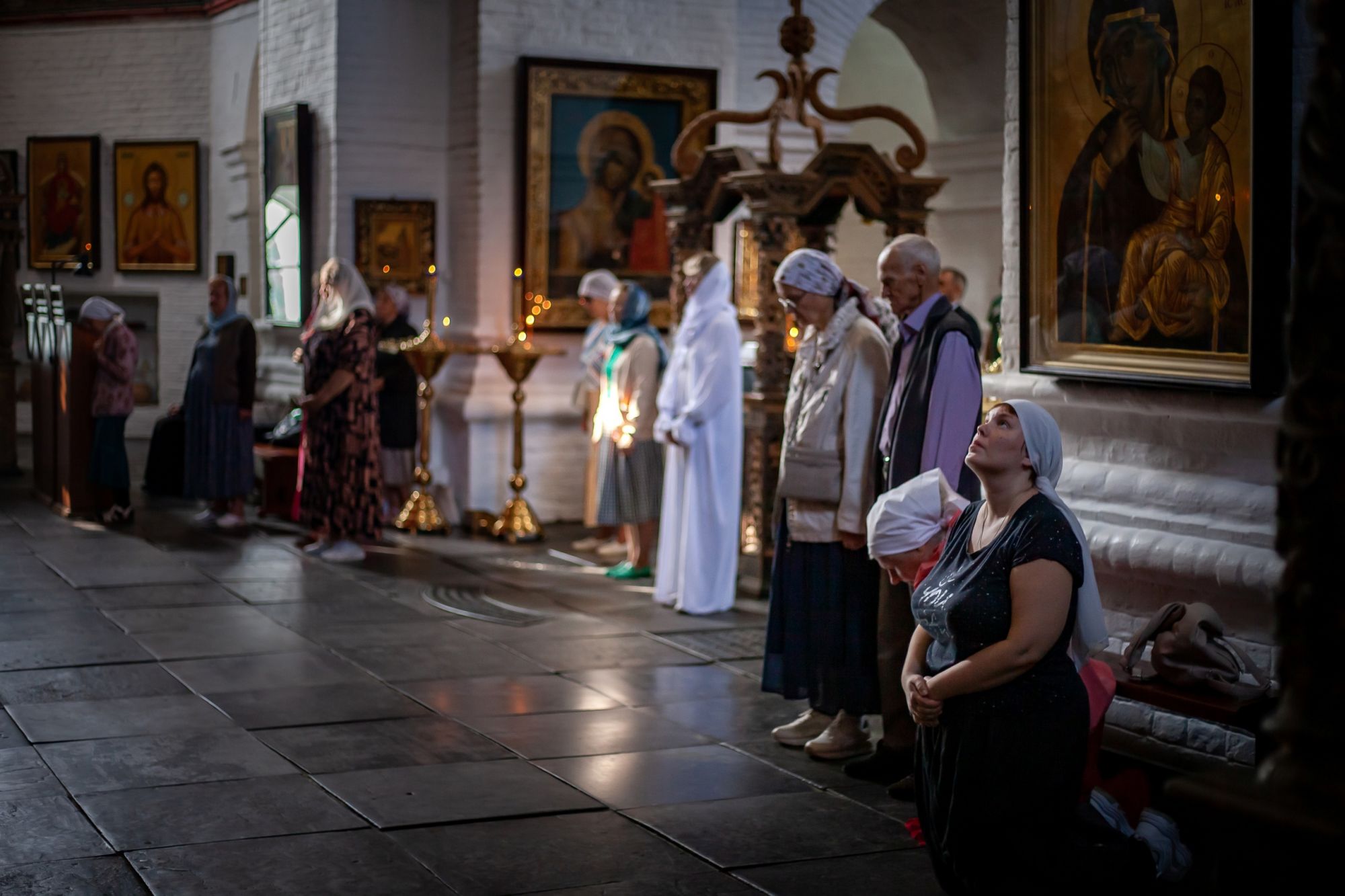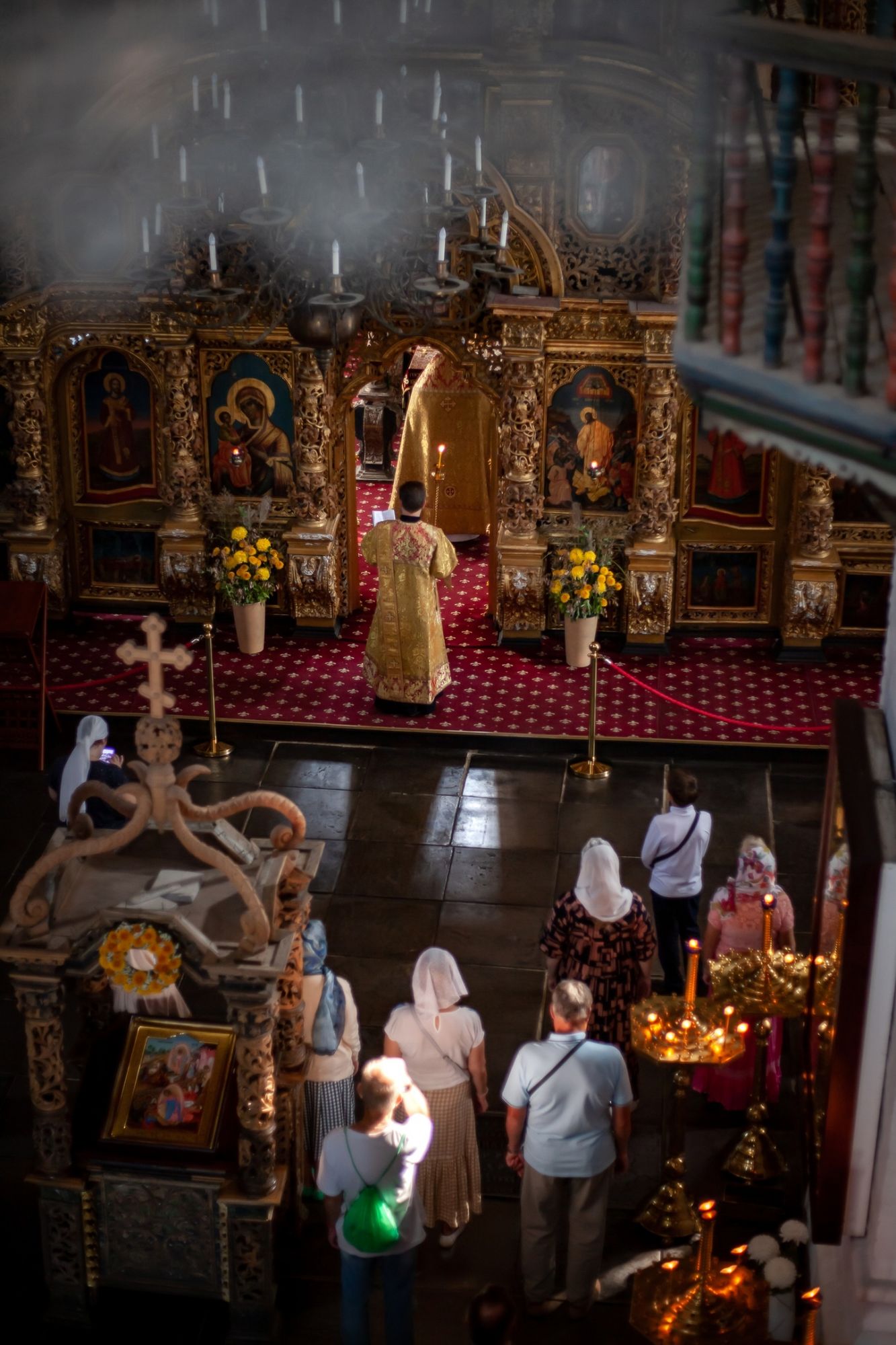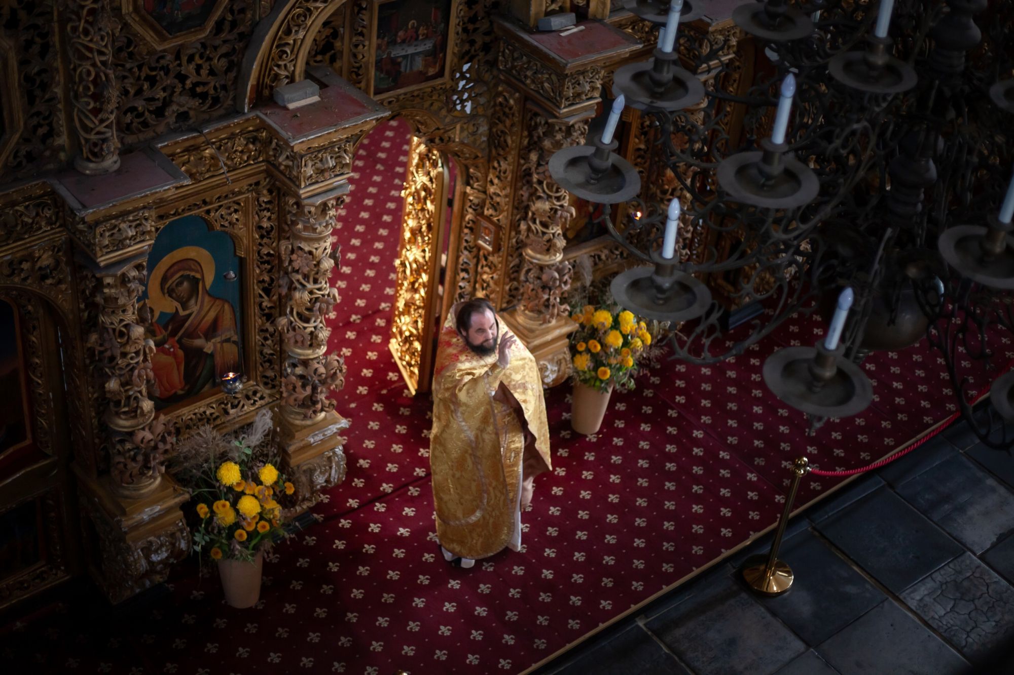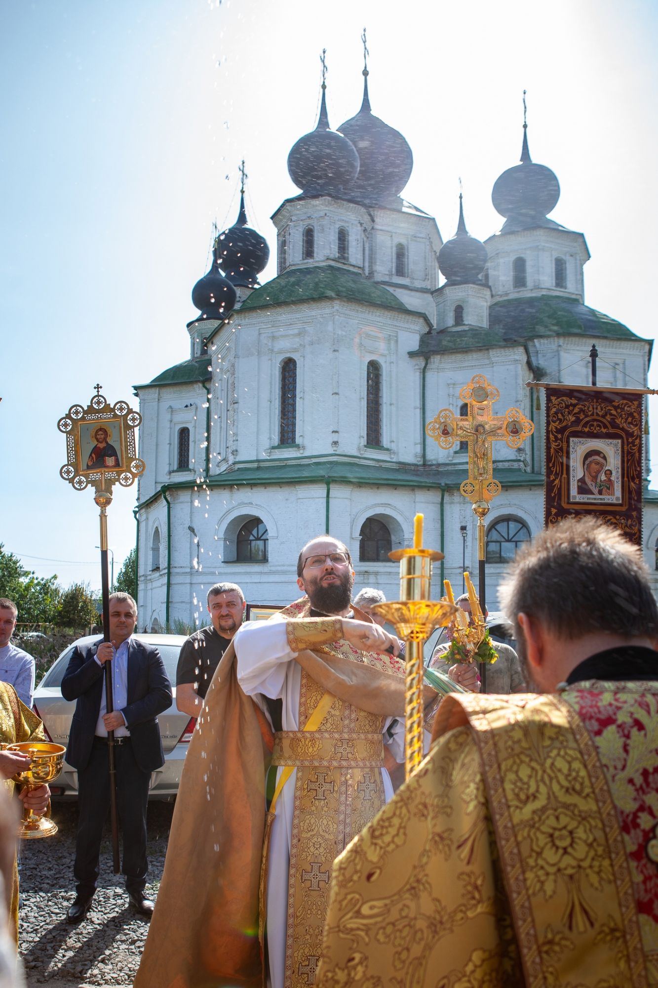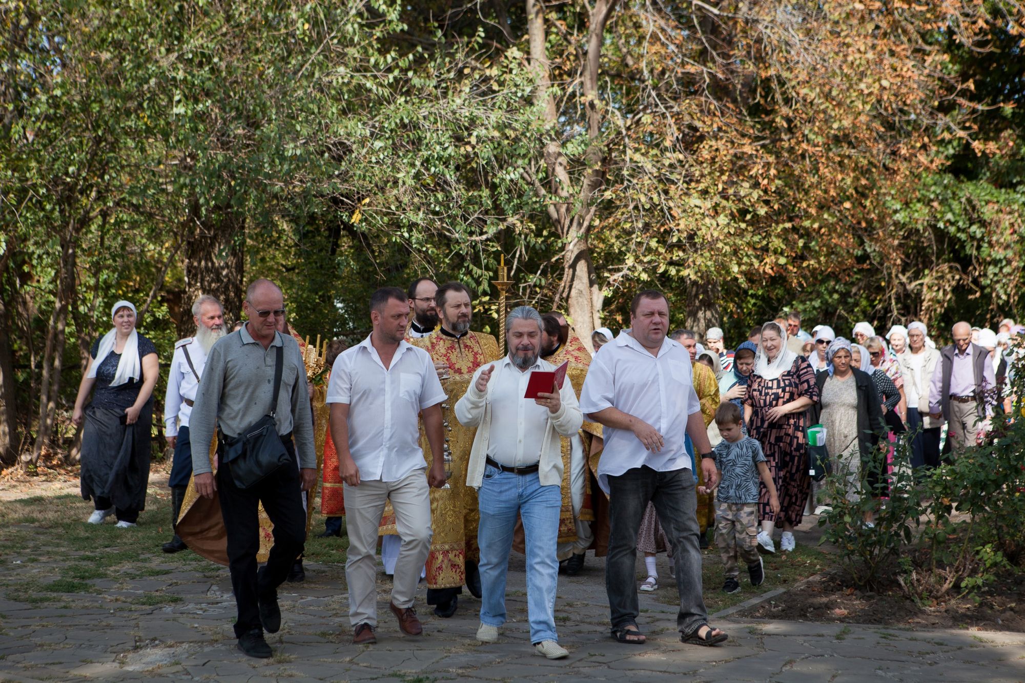 По окончании литургии духовенство и соборяне совершили крестный ход с пением пасхального тропаря.