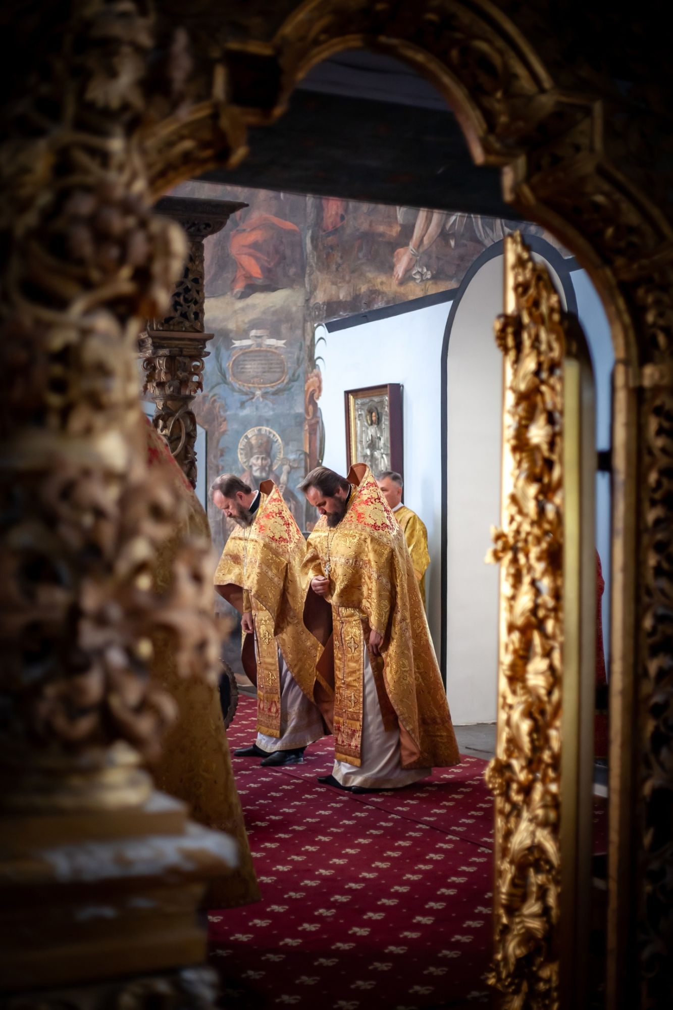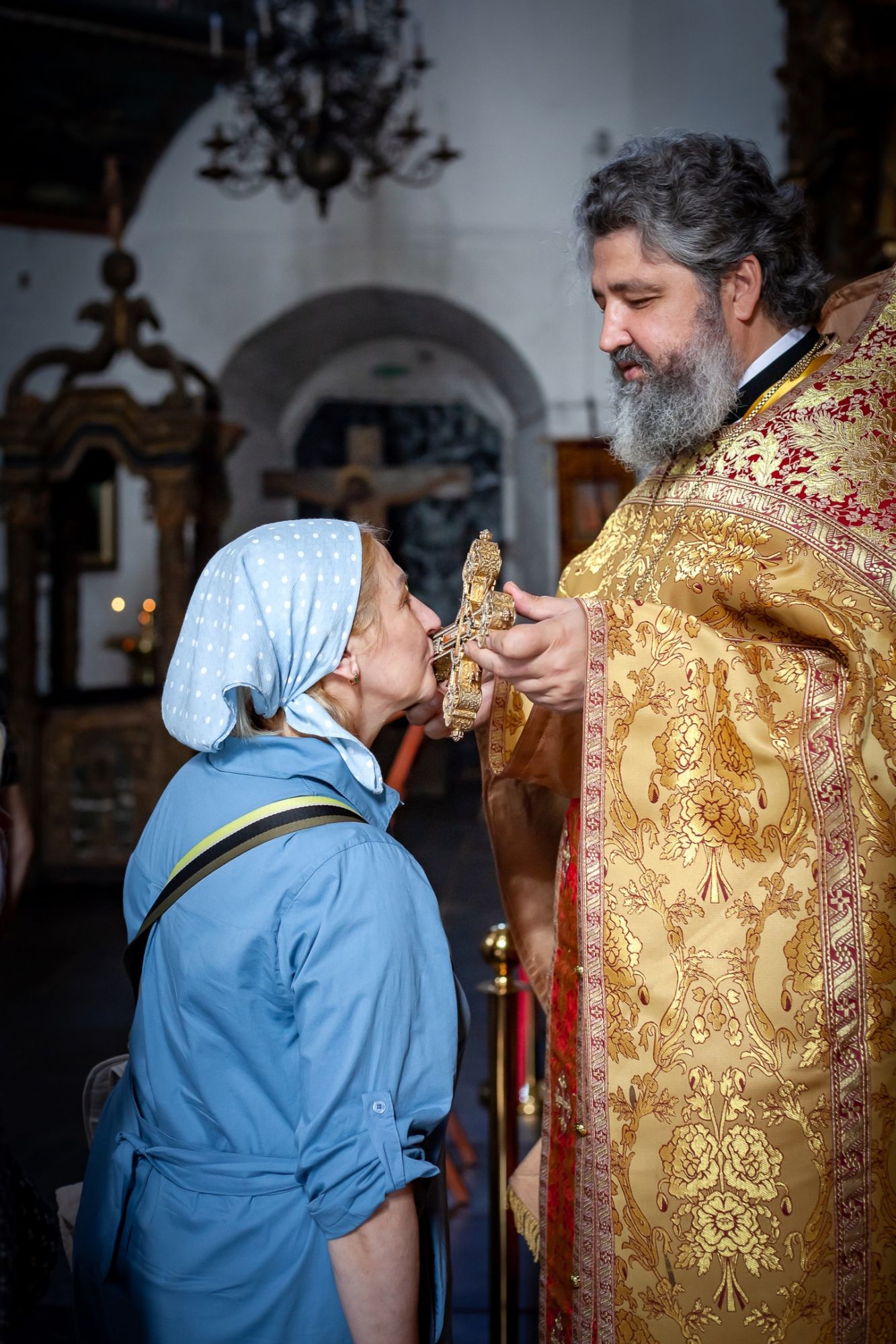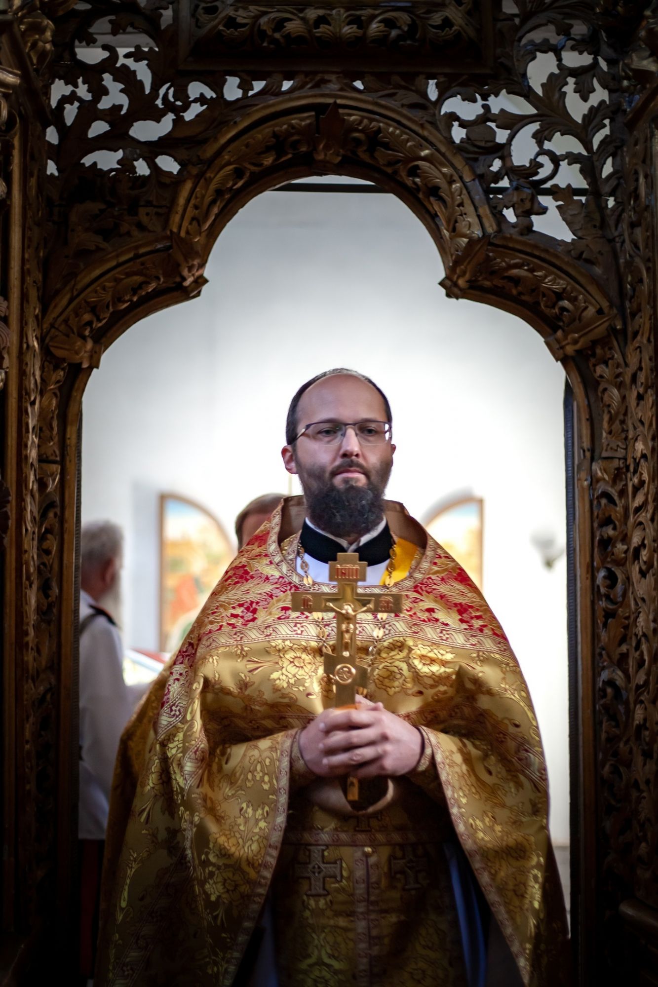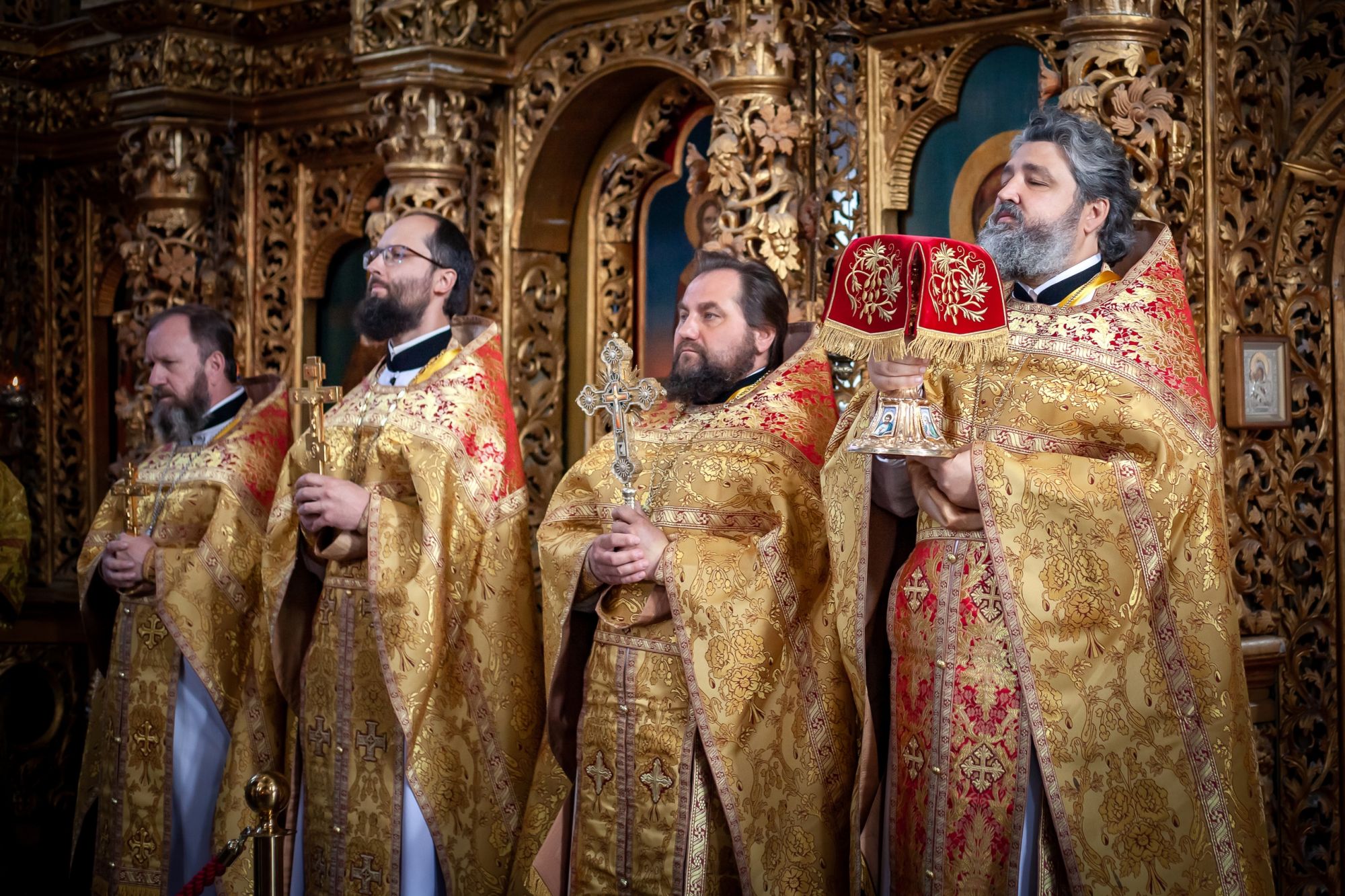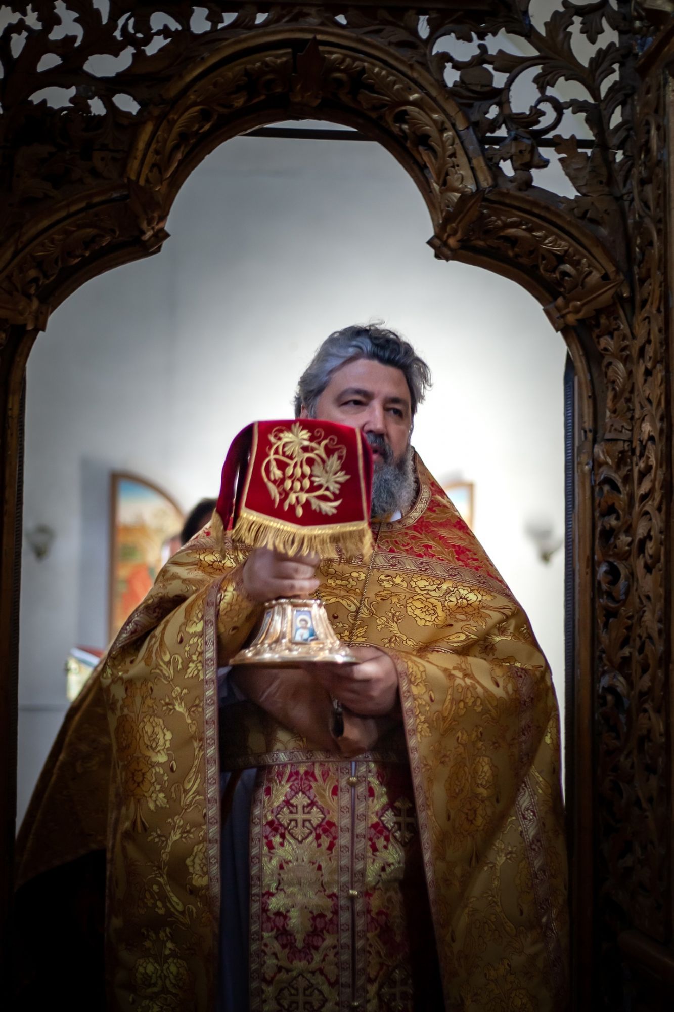 Божественную литургию возглавил настоятель собора протоиерей Валерий Волощук в сослужении настоятеля Патриаршего Вознесенского войскового всеказачьего кафедрального собора г. Новочеркасска протоиерея Георгия Сморкалова и духовенства прихода.