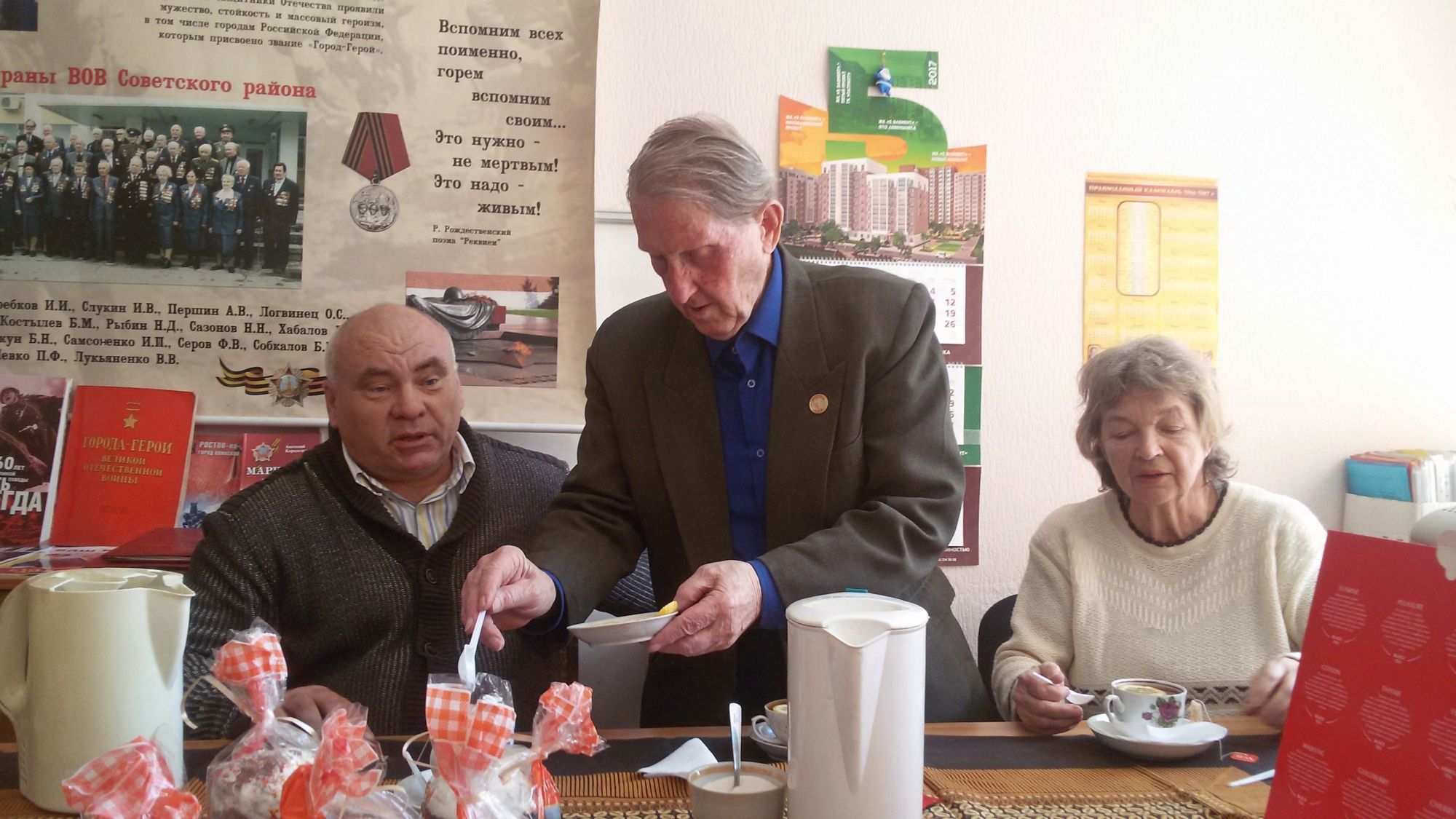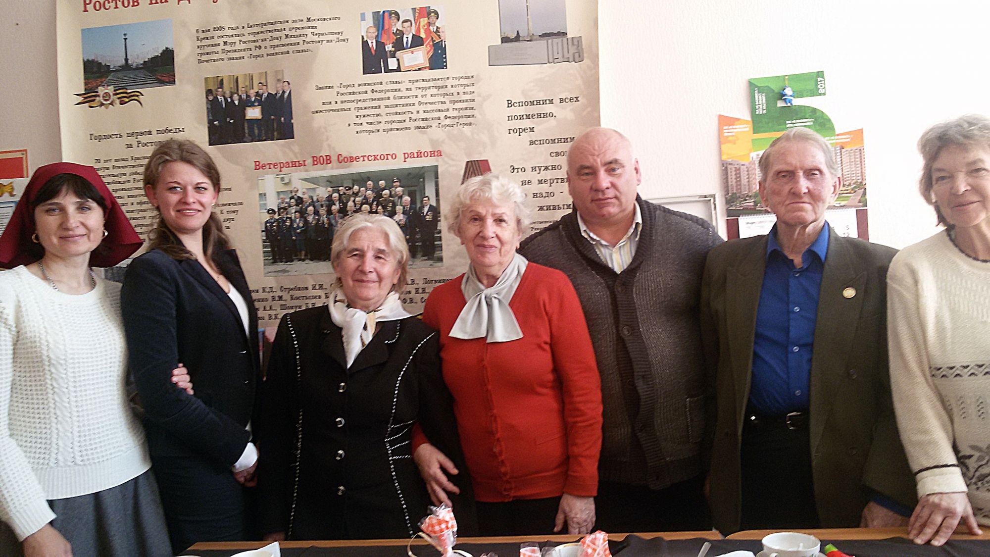 27 апреля 2017 года в Совете ветеранов Советского района прошло заседание, организованное отделом по церковной благотворительности и социальному служению Ростовской-на-Дону епархии. В нем приняли участие координатор по работе с ветеранами, пожилыми и людьми с ограниченными возможностями здоровья Лобанова Вера Николаевна, представители социального отдела, старшая сестра Храма Иоанна Воина Ольга Терехова, заместитель председателя Совета ветеранов Ветренко Андрей Юрьевич и другие представители Совета ветеранов. Были затронуты важные темы взаимного сотрудничества. Было отмечено, что одним из таких мероприятий была совместная поездка, организованная сестричеством Храма Иоанна Воина. В дальнейшем планируется экскурсия в наш Храм, а также оказание помощи инвалидам и ветеранам Великой Отечественной войны. Встреча прошла в теплой и дружеской обстановке за кружкой чая.