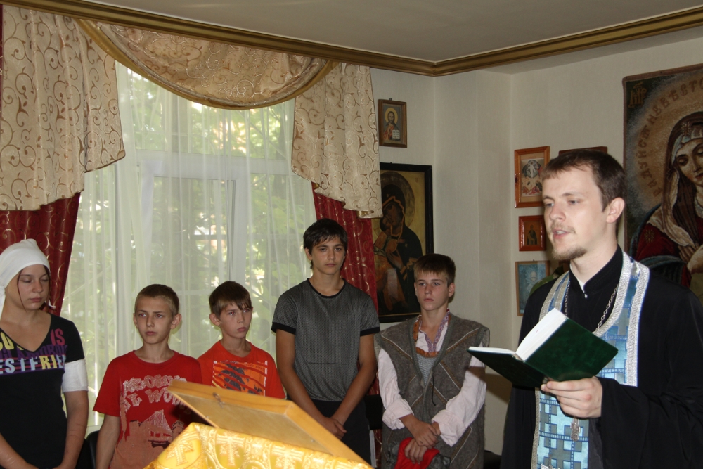 В молитвенной комнате Центра отец Роман совершил молебен на начало учебного года и в своем напутственном слове поздравил собравшихся с преддверием праздника Успения Божией Матери и призвал ребят, посвятив свою жизни служению святыне: Богу, Родине, матери - быть достойными гражданами своего Отечества.