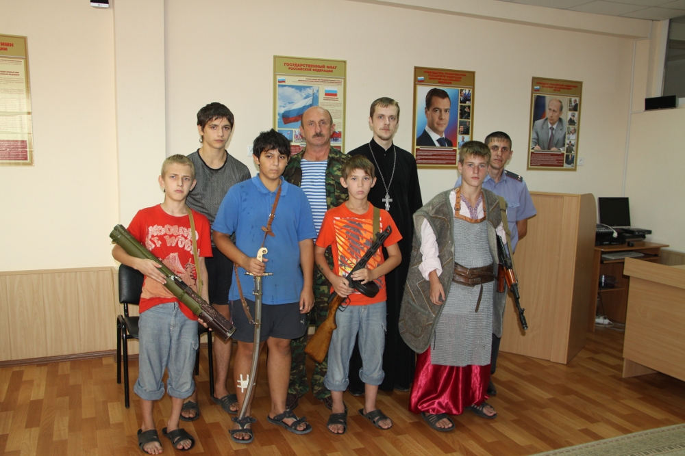 27 августа 2012 г., в г. Ростове-на-Дону, по благословению руководителя отдела по взаимоотношениям Церкви и общества Ростовской-на-Дону епархии, настоятеля прихода святого Георгия Победоносца протоиерея Валерия Волощука, клирик прихода иерей Роман Зимин, председатель действующего при приходе духовно-патриотического центра Чуцков Виктор Иванович и воспитанники воскресной приходской школы Гончаров Марк и Волощук Филипп посетили Центр временного содержания несовершеннолетних правонарушителей. Встреча была посвящена военной истории нашей страны.
