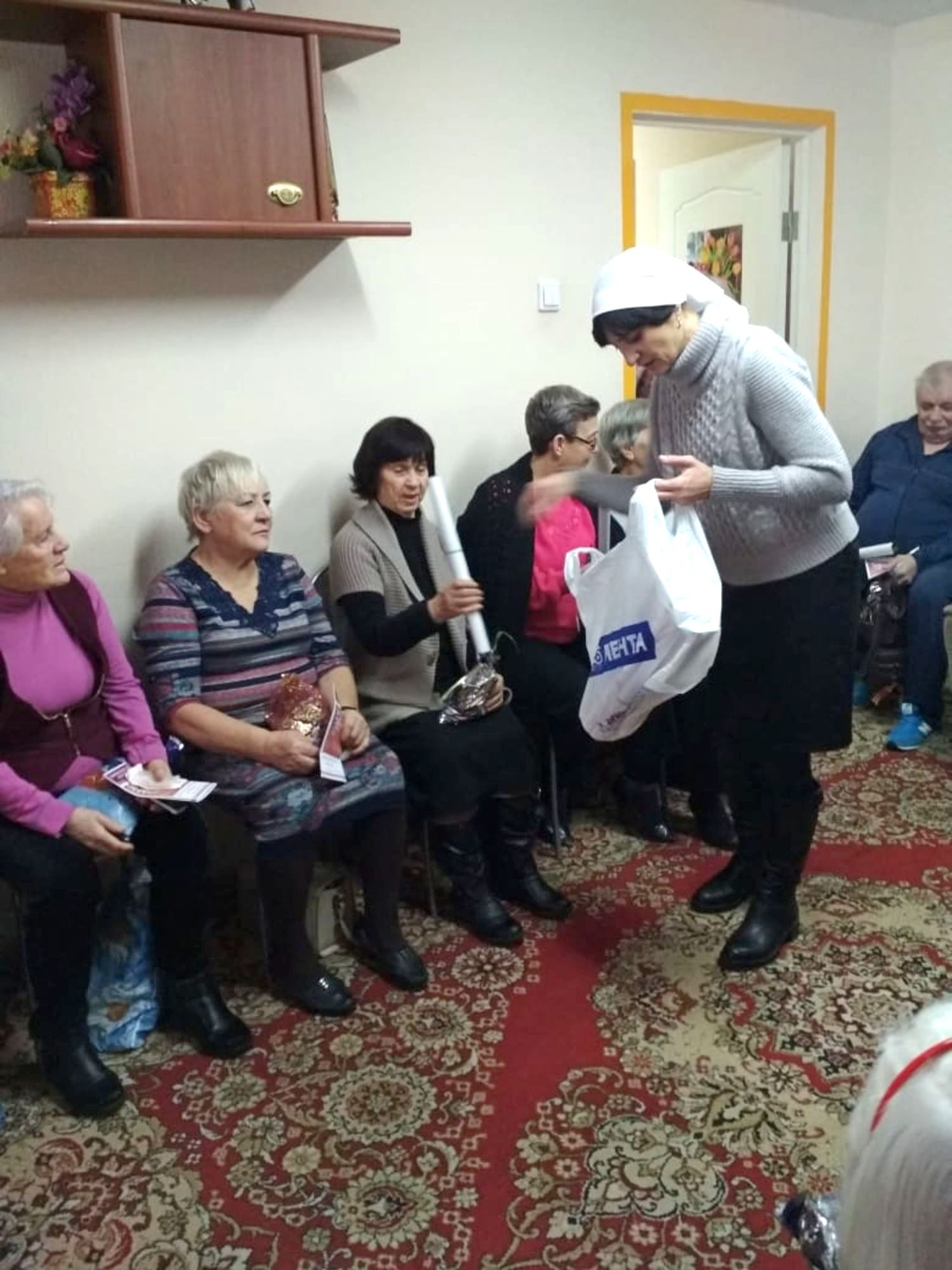 27 декабря 2018 года по благословению настоятеля сестры милосердия храма Иоанна Воина посетили окломляемый Центр социальной защиты населения и поздравили всех с наступающими новогодними и Рождественскими праздниками. Состоялось целое новогоднее представление с дедом морозом и снегурочкой. В свою очередь мы поздравили всех сладкими подарками, календарями на 2019 год и приходскими памятками.