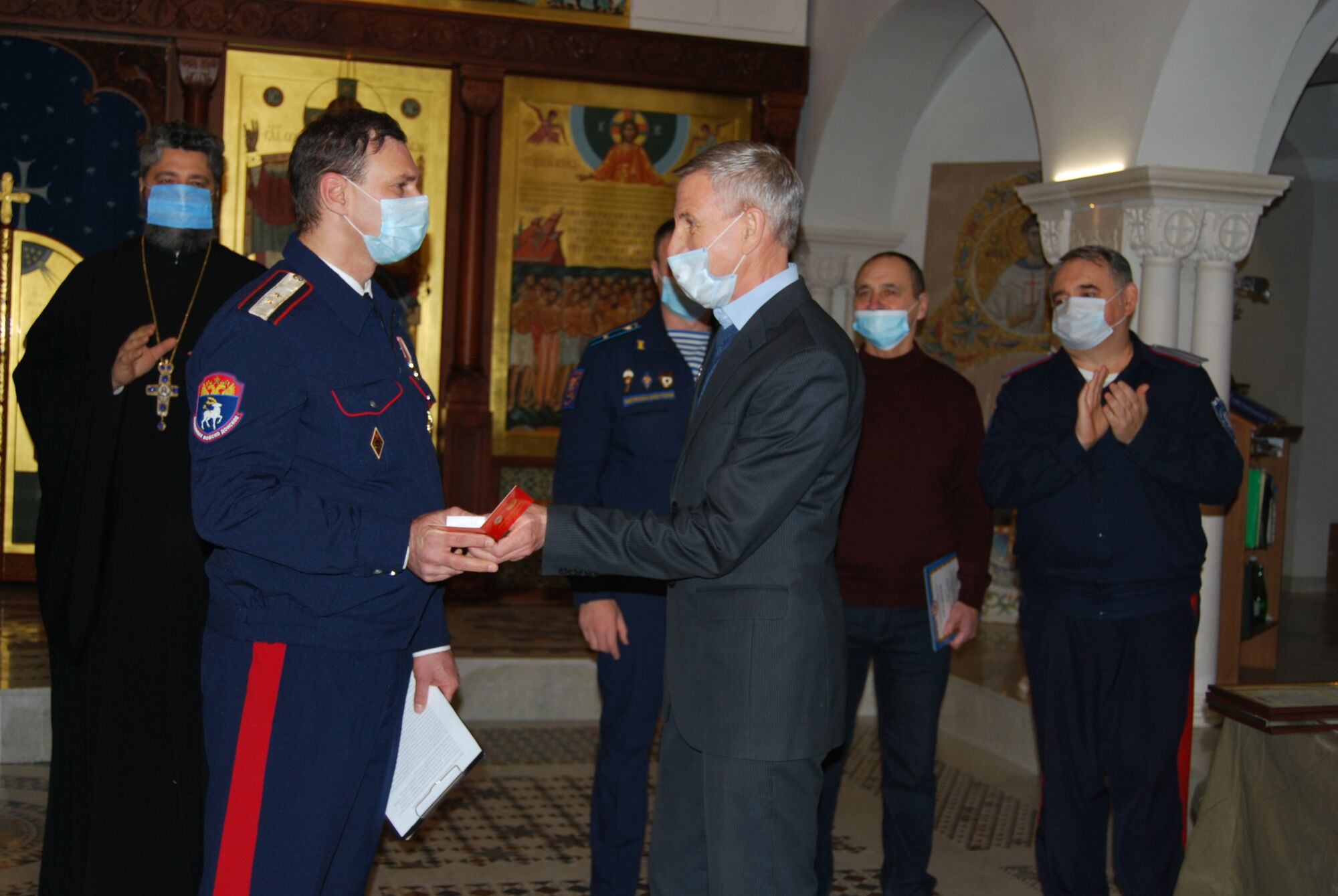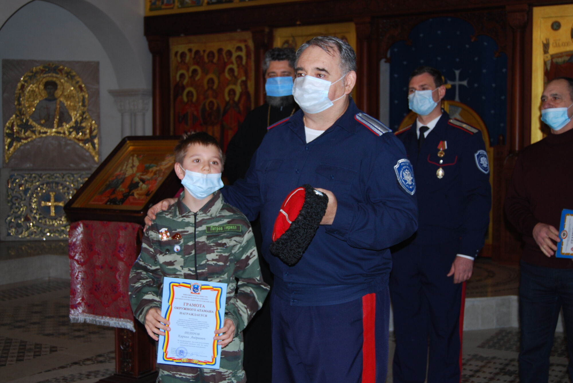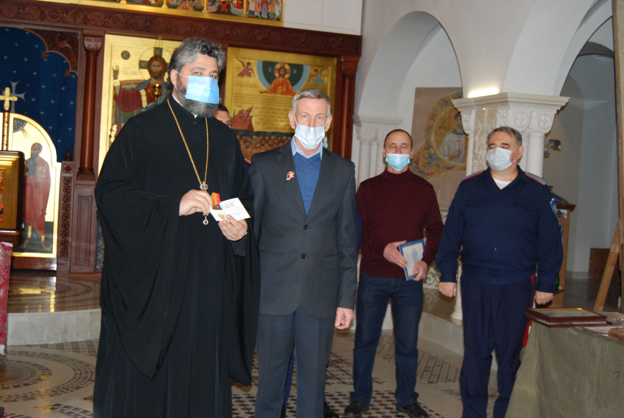 Настоятель прихода духовник казачьей-юнармейской развед-группы «Георгиевцы» протоиерей Валерий Волощук и инструкторы Руденко Сергей Викторович, Погодин Владимир Владимирович, Сомов Денис Викторович, воспитанники Васильев Владимир и Шепелев Саша были награждены юбилейными медалями, посвященными 75-летию победы в Великой Отечественной войне, от имени генерального инспектора Министерства обороны Российской Федерации генерала армии Ермакова за активную военно-патриотическую работу. Некоторым юнармейцам были присвоены очередные казачие чины. Гостями нашего прихода в этот день были казаки военно-исторического клуба «Казачья слава» из города Азова.