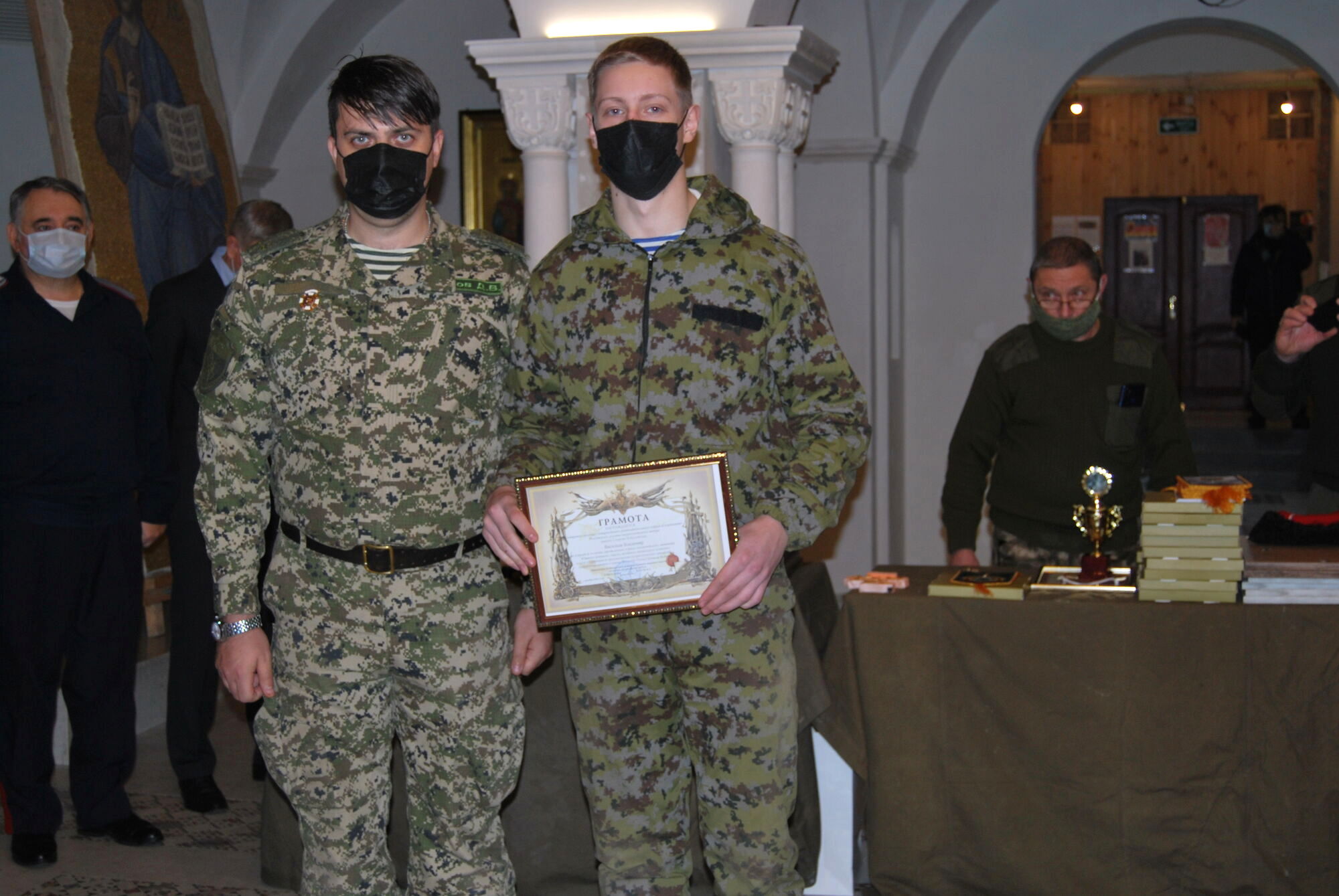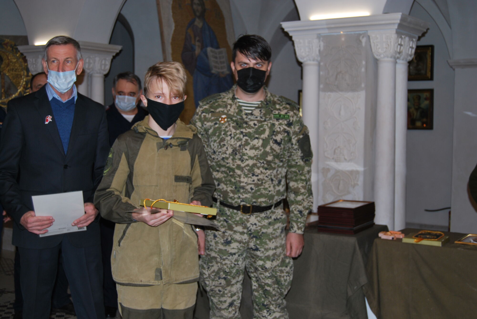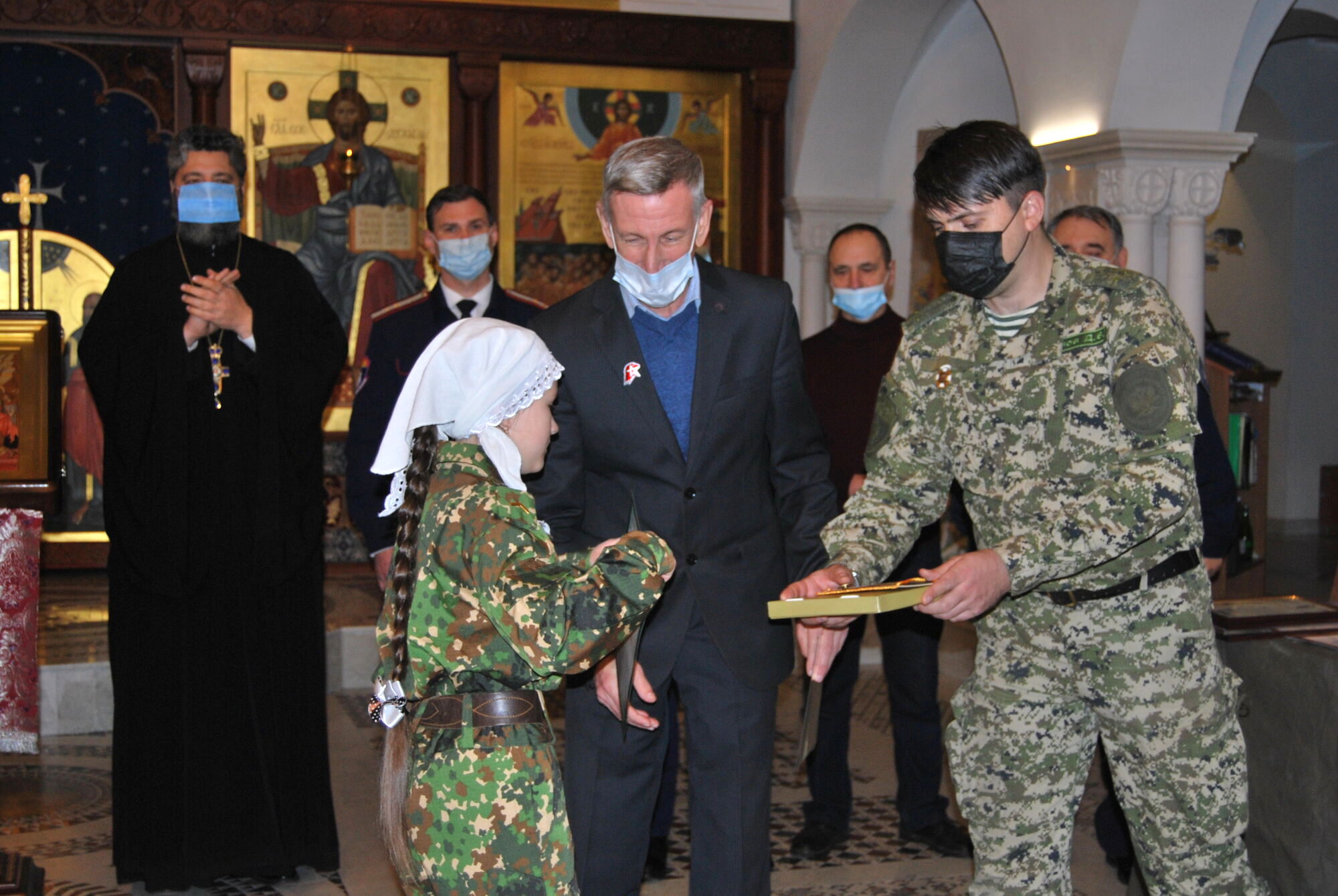 27 декабря 2020 года учащиеся приходской воскресной школы, занимающиеся по программе «Уроки мужества», и их родители приняли участие в совместном воскресном Богослужении и Причастии в храме 40 Севастийских мучеников. По окончании утренней службы по благословению настоятеля прихода Святого Георгия Победоносца протоиерея Валерия Волощука было организовано торжественное построение, посвященное подведению итогов окончания календарного учебного года по программе «Начальная военная подготовка к службе в Российской армии».