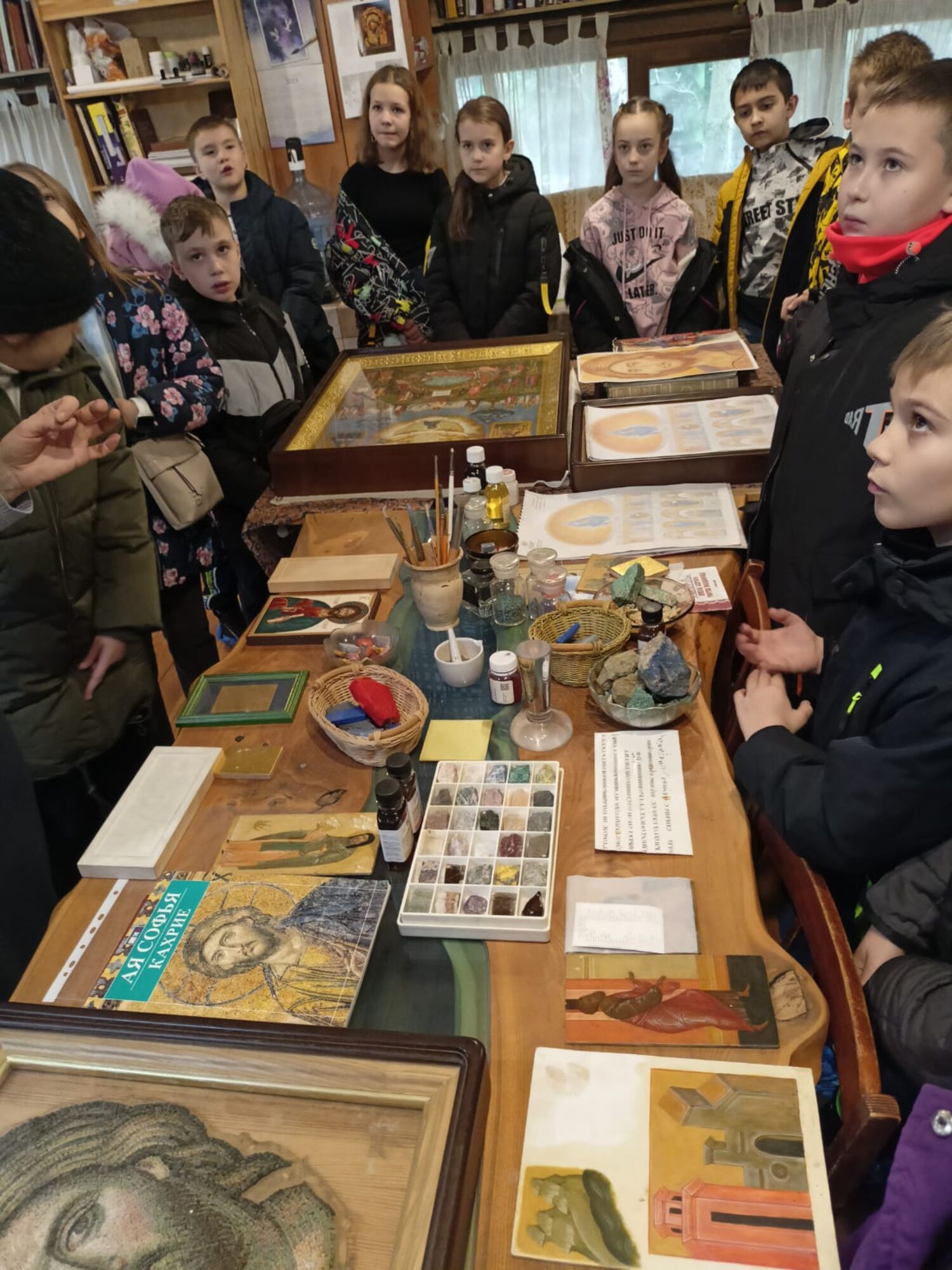 27 декабря 2023 года в рамках проекта «Дон православный, звени!», направленного на борьбу с интернет-зависимостью, учащиеся 3Б класса школы № 115 г. Ростова-на-Дону побывали на экскурсии в нашем храме. Мероприятие провела руководитель экскурсионного направления Ольга Сергеевна Хабибулина. Школьники осмотрели деревянный храм Иоанна Воина, посетили золотошвейную и иконописную мастерские, криптовый храм 40 Севастийских воинов-мучеников, Георгиевский сад и звонницу.