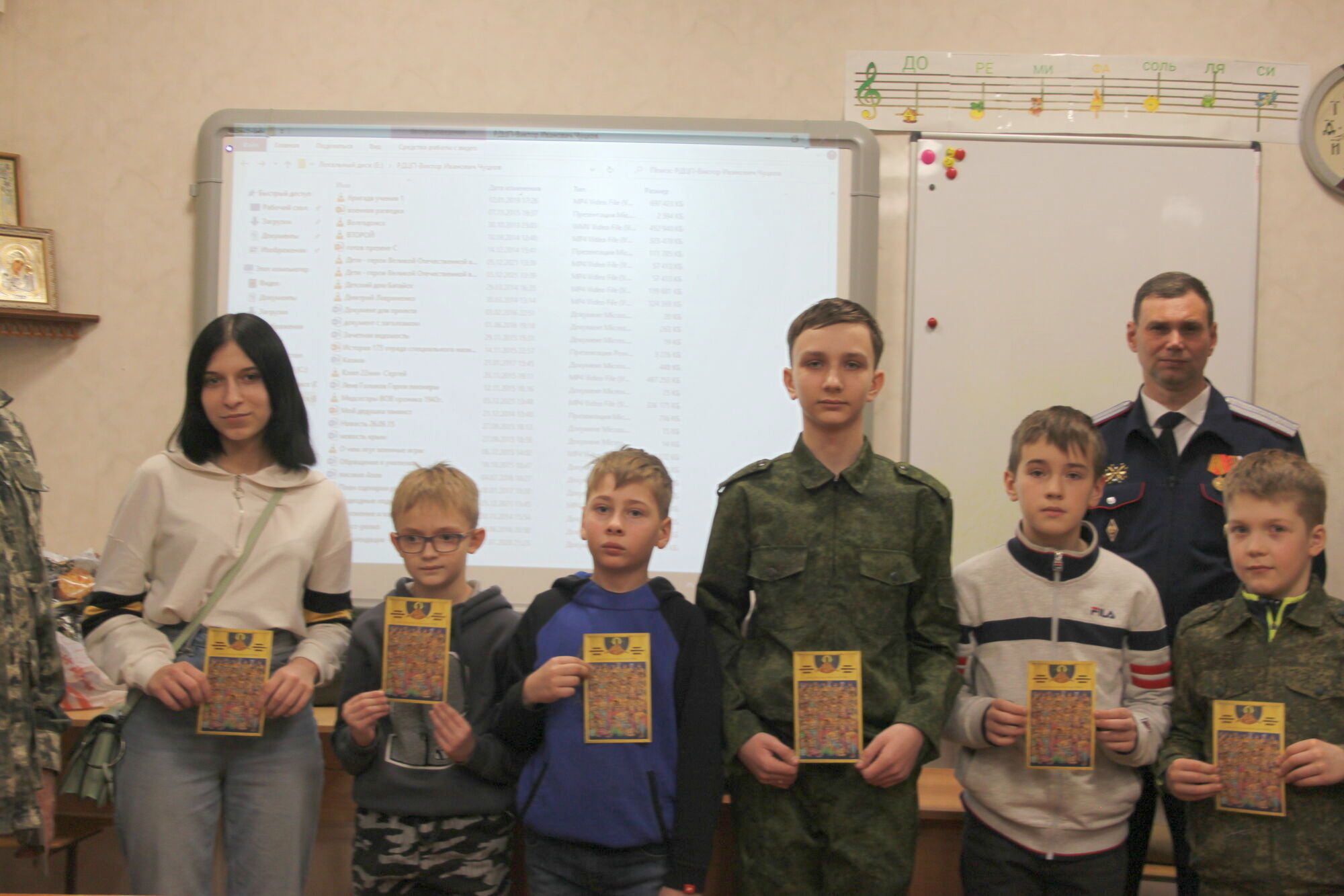 В этот день отмечалась дата создания одного из подразделений подшефной воинской части. В ходе занятий некоторым юнармейцам, их родителям и инструкторам-наставникам за активное участие в патриотической работе и в учебном процессе были вручены подарки и благодарственные письма, в том числе и от имени нашего настоятеля Прихода Святого Георгия Победоносца главного храма ЮВО протоиерея Валерия Волощука.