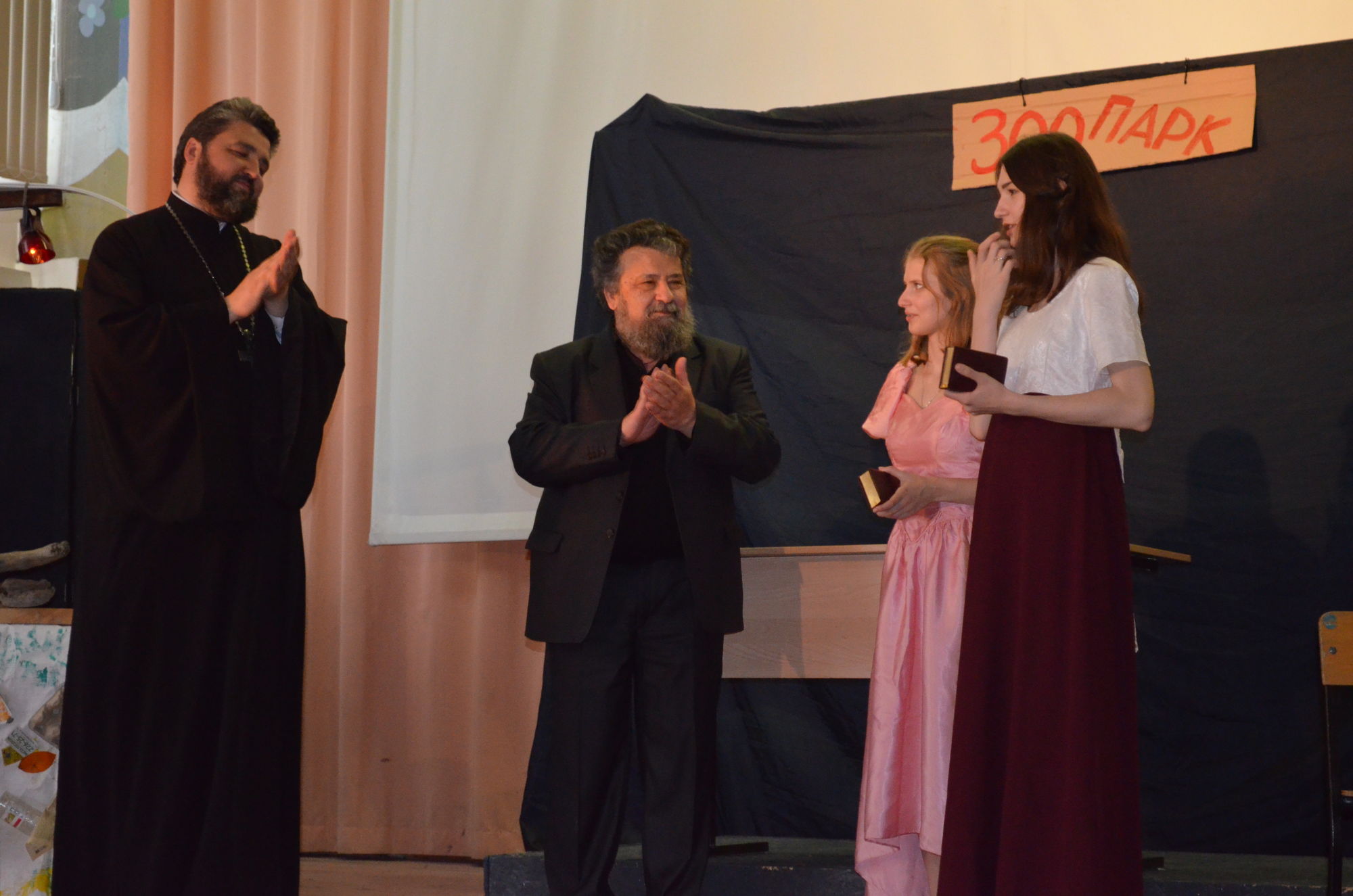 По окончании концерта настоятель прихода протоиерей Валерий Волощук и директор воскресной школы Ксения Волощук поздравили всех учеников и учителей школы с завершением учебного года, а выпускников школы – также с окончанием обучения. Напутственное слово нашим выпускницам произнёс известный православный филолог Василий Давыдович Ирзабеков и подарил им на память Святое Евангелие.