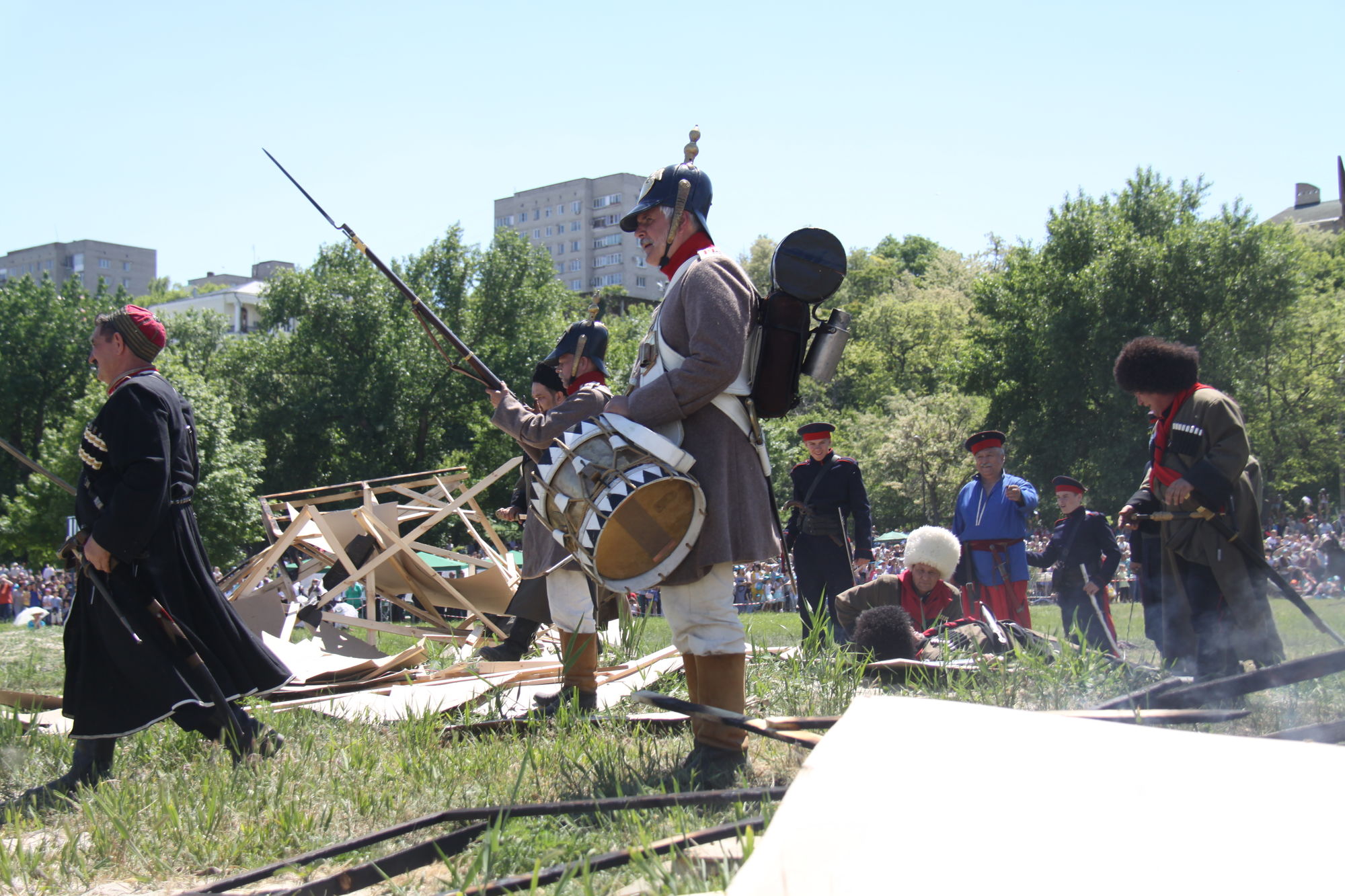 Участники военно-исторической реконструкции смогли показать гостям мероприятия эпизоды Крымской войны 1855 года, максимально приближенные к реальным историческим событиям. Они были одеты в исторические костюмы, держали в руках точные копии исторического оружия. Профессионально организованная работа (огненных художников) пиротехников позволила участникам и зрителям ощутить всю мощь артиллерийского обстрела.