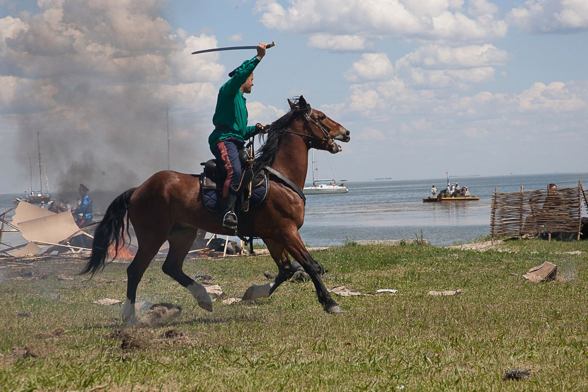 Одним из ярких эпизодов мероприятия была атака конных Донских казаков плавающей английской батареи установленной из-за мелководья Таганрогского залива на большой плот. Все организаторы и участники фестиваля уверены, что данный проект будет и в дальнейшем полноценно развиваться.