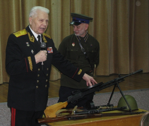 В мероприятии приняли участие руководитель военно-патриотического клуба «Эскадрон Скаржинского» Казак Юрий Степанович, ветеран Великой Отечественной Войны генерал-майор юстиции Худоерко Александр Михайлович. В ходе встречи Александр Михайлович рассказал учащимся о своем боевом пути, а также — о событиях, разворачившихся в августе 1943 г. при освобождении Ростовской области на Миус-фронте, в которых он принимал непосредственное участие в качестве командира взвода разведки 5 Донского кавалерийского корпуса.
