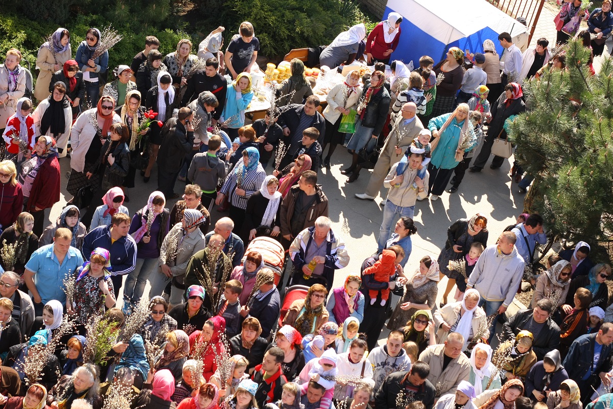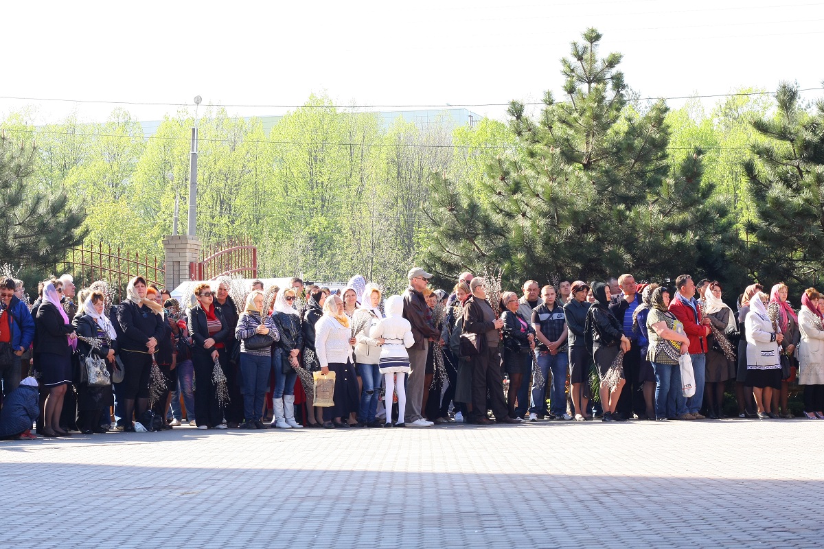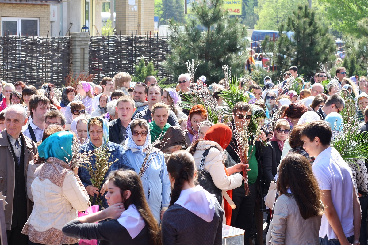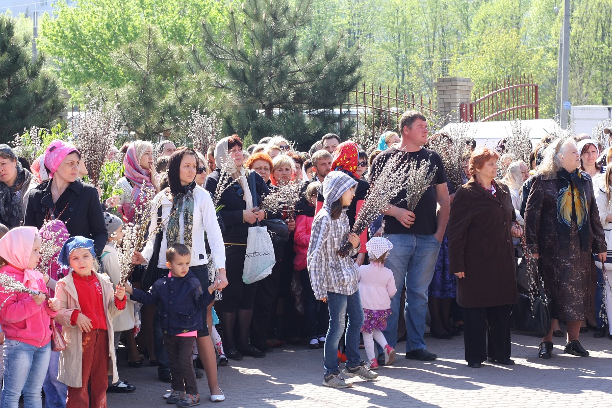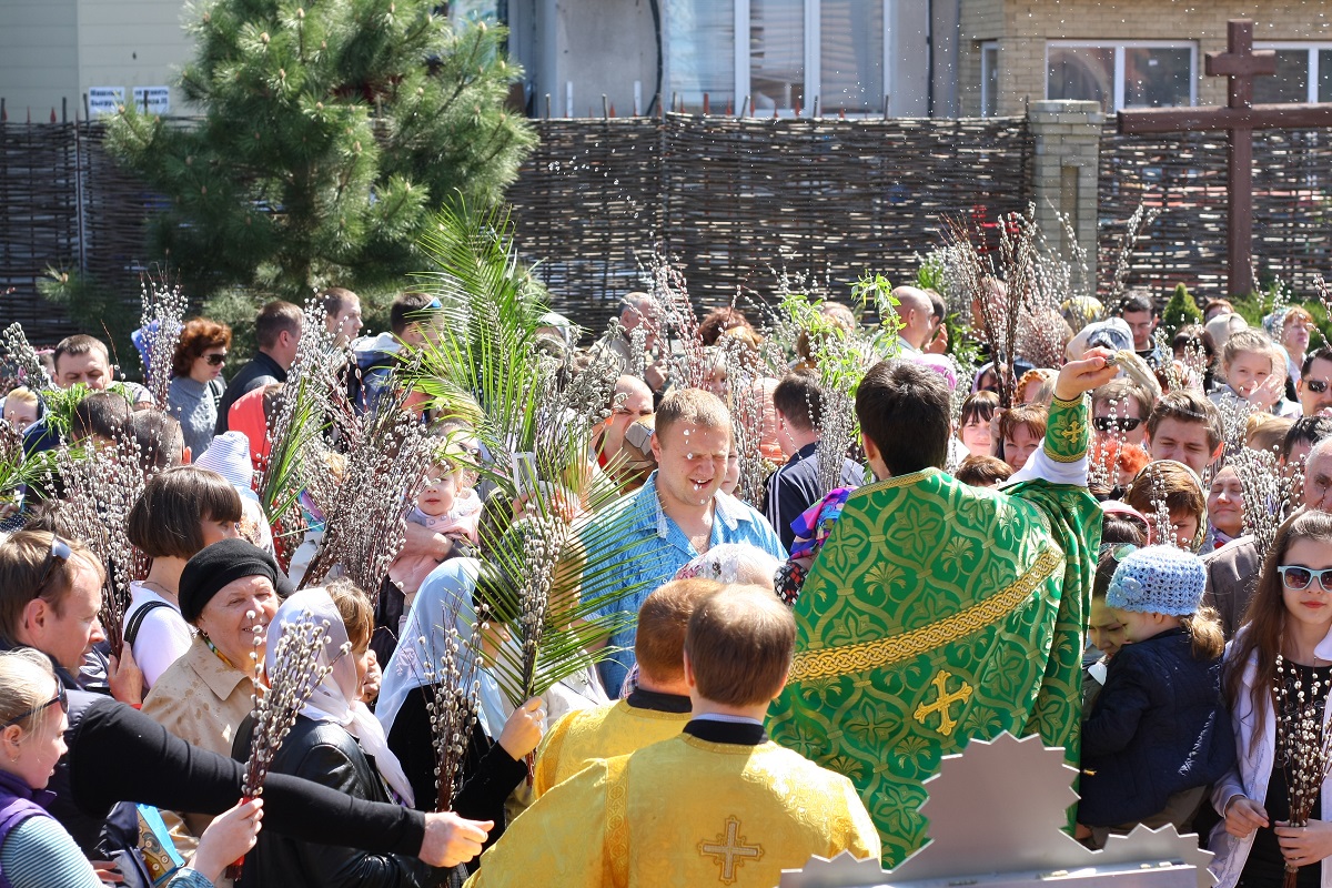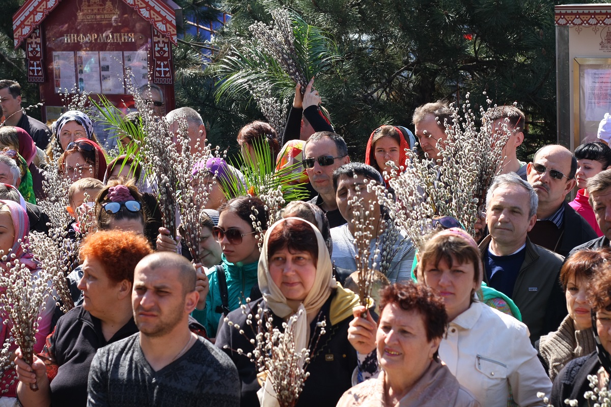 В этот день клирики храма святого Иоанна Воина совершили традиционное освящение вербных и пальмовых ветвей.