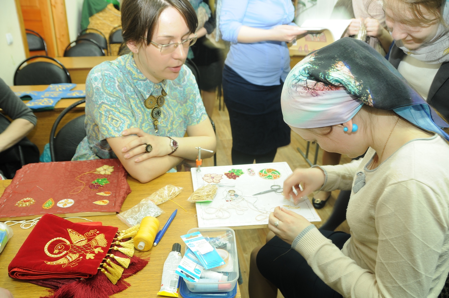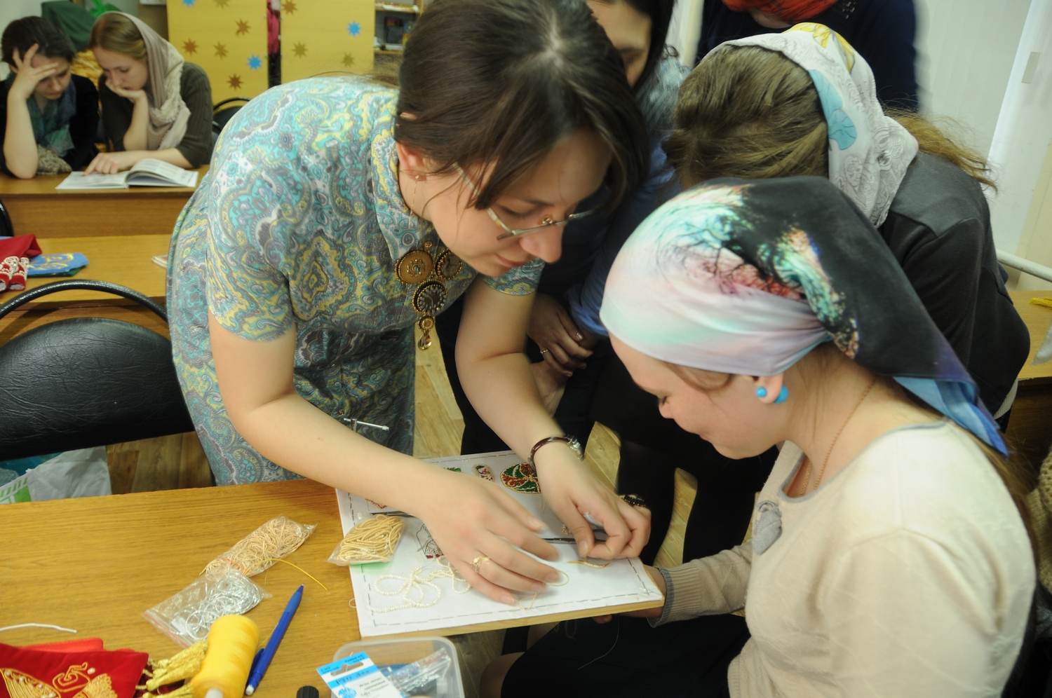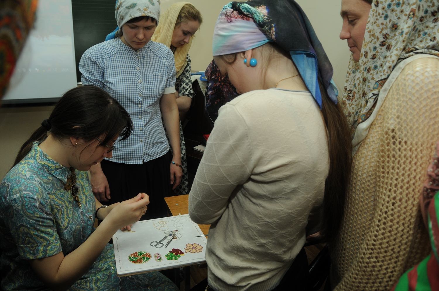 Отдельным событием стала проведенная руководителем нашей золотошвейной мастерской лекция и мастер-класс по Орнаментальному и лицевому шитью. Состоялась лекция об истории возникновения орнаментального шитья и мастер-класс по таким техникам, как "Шитье канителью" и жемчужное шитье "по настилу". Надеемся, что наши встречи будут постоянными, так как для нашего Храма очень важна передача опыта и сохранение традиций церковной вышивки.