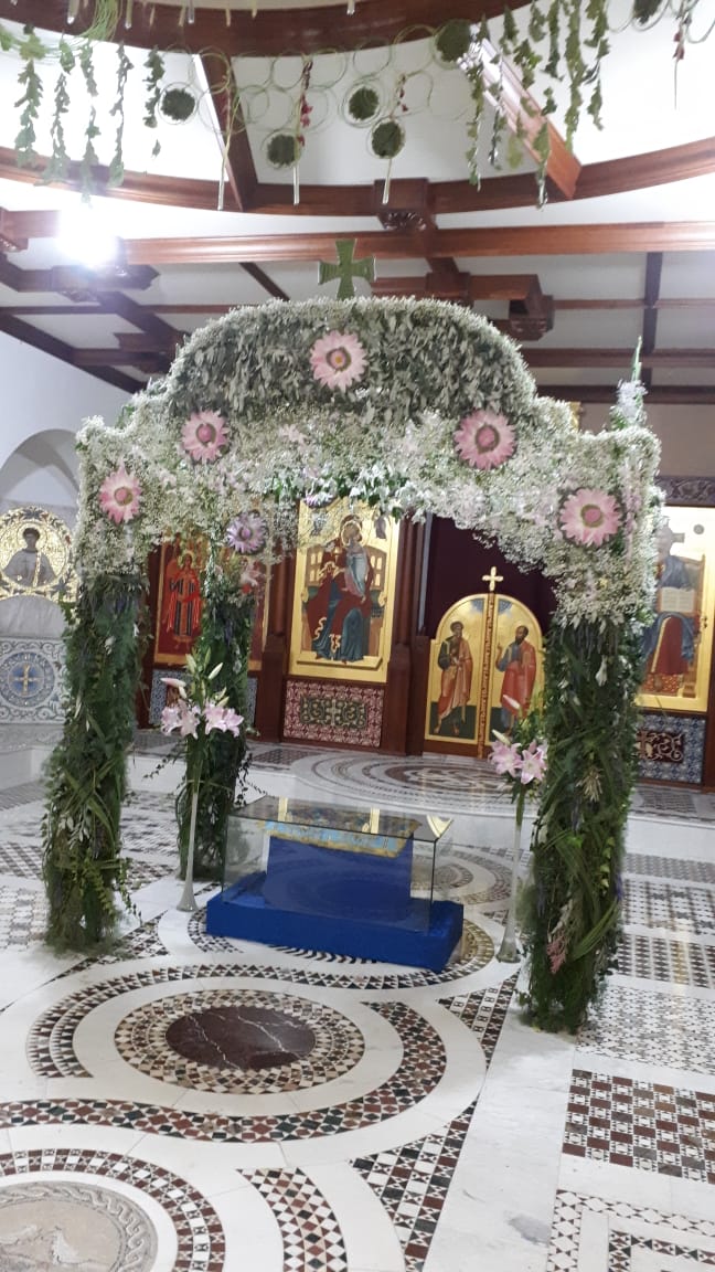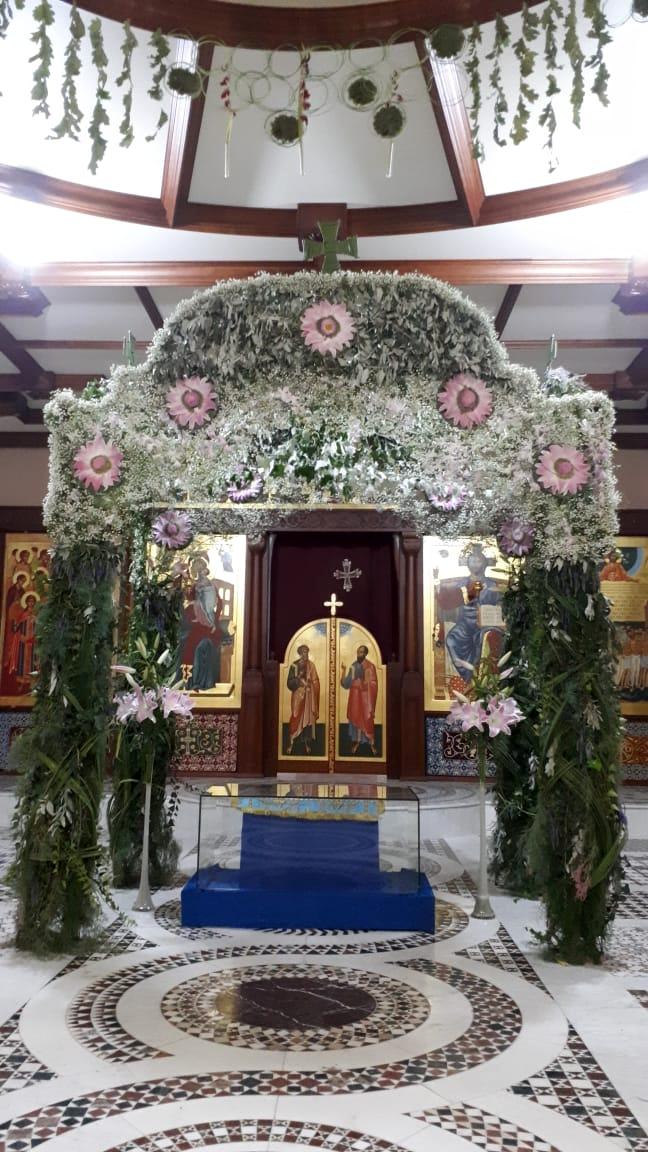 Богослужение у нас течет чинно, сосредоточенно. Хор поет вдохновенно. Много молящихся. А в центре храма – чудо: плащаница новая, сверкающая, руками наших дорогих золотошвеек созданная. А над ней – цветочный шатер. Да какой изысканный! И нежный, и сдержанный, и роскошный. Воистину – Царицу Небесную порадовать.