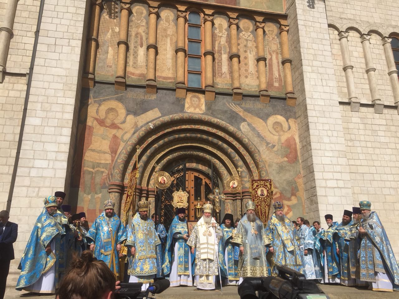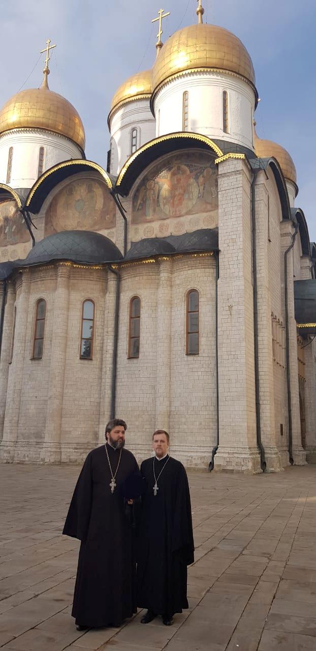 28 августа 2018 года в день Успения Пресвятой Богородицы в главном храме России — в Патриаршем Успенском соборе Московского Кремля — духовенство Донской митрополии вместе с митрополитом Ростовским и Новочеркасским Меркурием сослужило Патриарху Московскому и всея Руси Кириллу. В числе духовенства Ростовской-на-Дону епархии молился и наш настоятель протоиерей Валерий Волощук, который произнес проповедь перед причастием. В хоре духовенства Ростовской-на-Дону епархии, исполнявшем песнопения, пели клирики нашего храма: иереи Роман Зимин и Иоанн Цупко, а также благочинный нашего западного округа иерей Александр Литвиненко. После Богослужения состоялся Крестный ход.