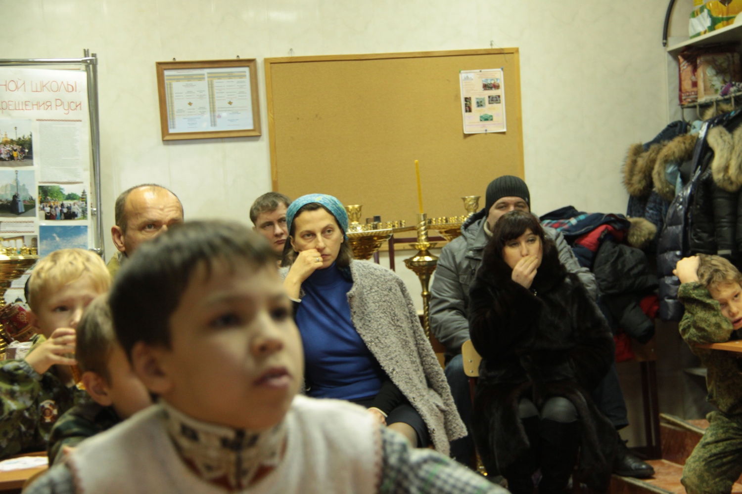 28 декабря 2014 года в рамках реализации проекта "Уроки мужества для детей и молодежи" в помещении воскресной школы Храма Иоанна Воина прихода Святого Георгия Победоносца прошло занятие для учащихся приходской школы и других школ города Ростова-на-Дону. Занятие прошло по программе начальной военной подготовки к службе в Российской Армии. В ходе проведения урока учащиеся сдавали промежуточный зачет по итогам прошедших занятий. В этот день урок мужества посетила директор воскресной школы Волощук Ксения Валерьевна. Воспитанник Радионов Борис вместе со своей мамой и ее братом подготовили историческую презентацию о Первой Мировой войне и событиях, связанных с героическим подвигом гарнизона крепости Осовец. Солдаты, которые впервые испытали на себе весь ужас газовой химической атаки немецких войск, не сложили оружие, а отразили нападение многократно превосходящего врага. Помощь в подготовке презентации была также оказана Епархиальным телестудией Дон Православный. В конце занятий воспитанники отведали вкусной солдатской каши, которую для них приготовили заботливые родители.