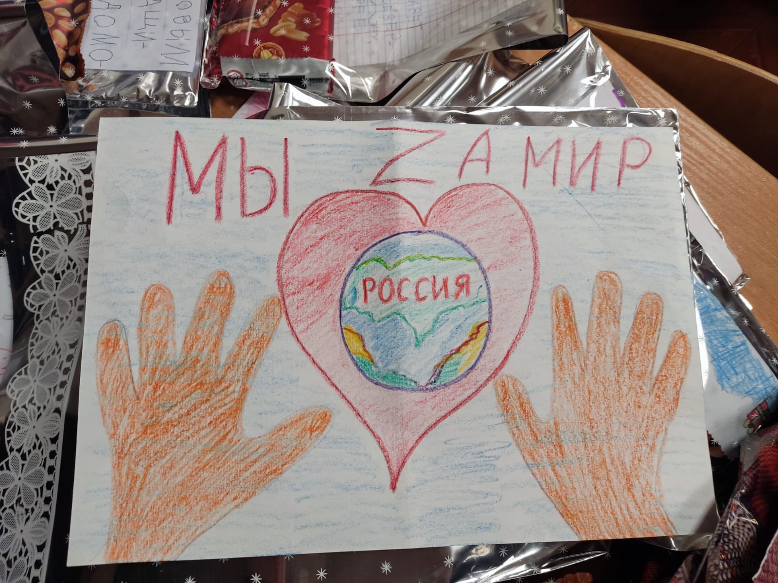 В этой акции участвовали и наши новые друзья. Волонтеры с города Нижневартовска прислали посылкой письма, шоколадки и теплые носки нашим воинам.