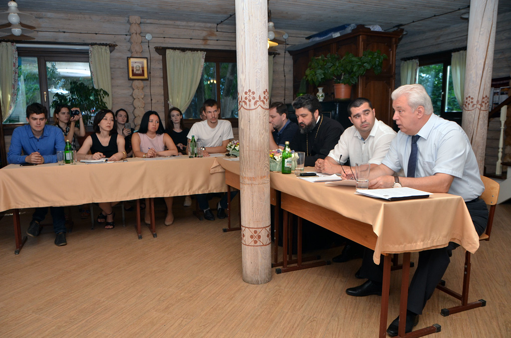 В заседании приняли участие: депутат Законодательного собрания, член фракции «Единая Россия» Шепелев Е.М., настоятель прихода протоиерей Валерий Волощук, помощник депутата Чумаченко В.С., сотрудники проекта, а также студенты Южного федерального университета.