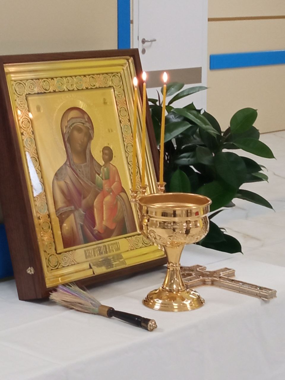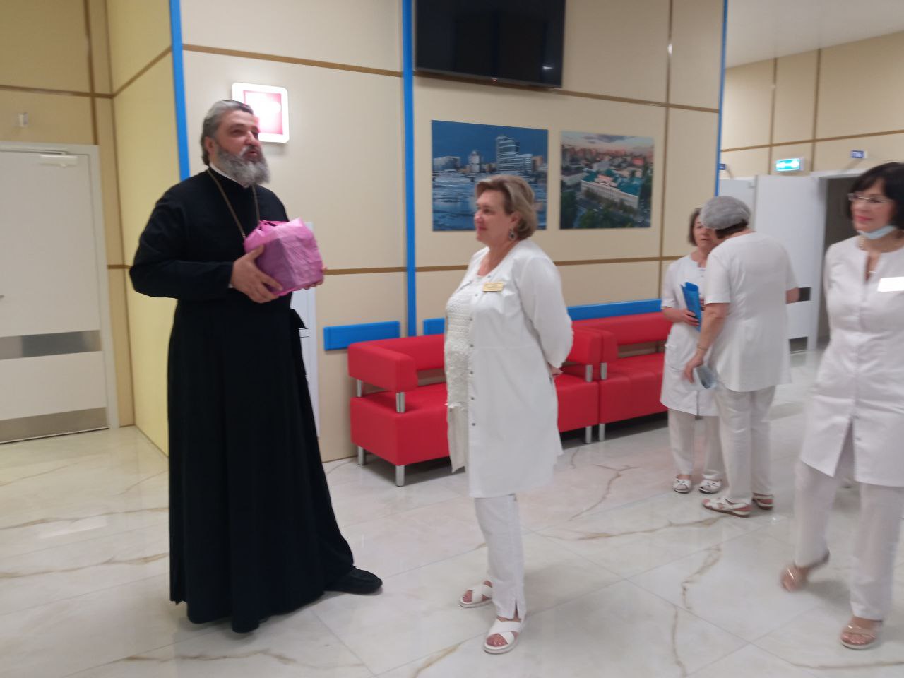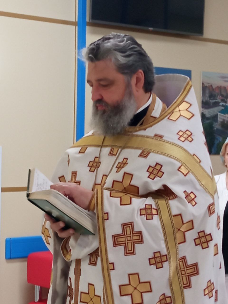 Отец Валерий поздравил главного врача Светлану Геннадьевну Пискунову и собравшийся на молебен персонал с расширением, в очередной раз засвидетельствовав многолетнюю дружбу между приходом святого Георгия Победоносца и Областной детской больницей.Также отец Валерий преподнёс в дар вновь открывшимся отделениям иконы.