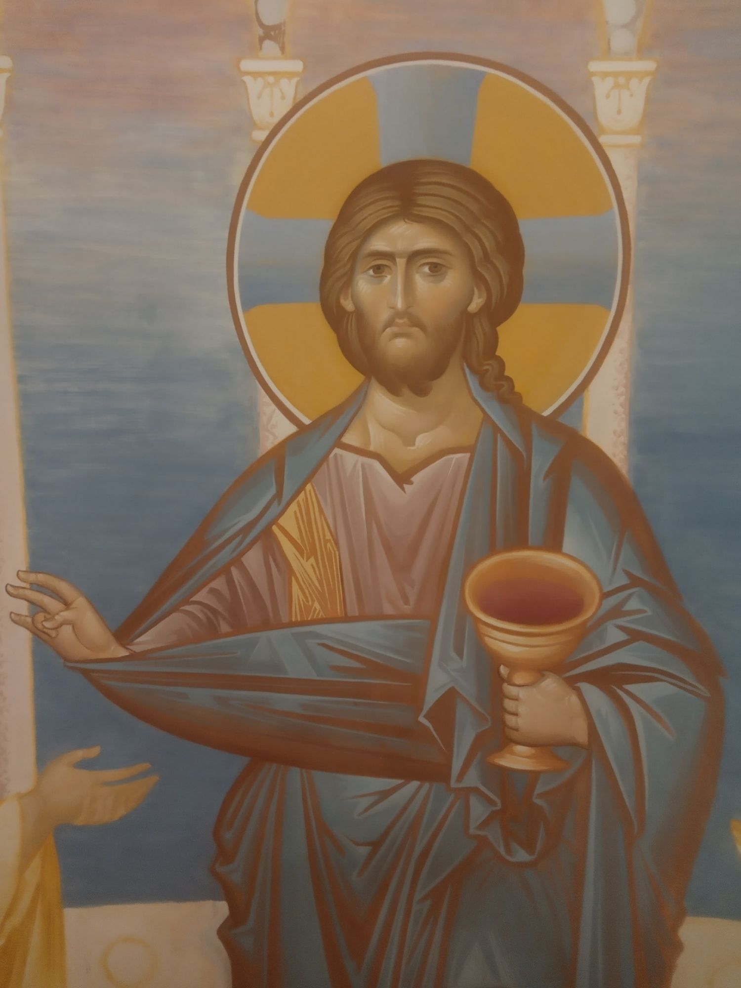Продолжается роспись в нашем храме Сорока мучеников Севастийских. Иконописец Алёшин Анатолий Валерьевич пишет Евхаристию в алтаре храма. Много работы ещё предстоит сделать. С молитвой ждём завершения столь новой и прекрасной работы.