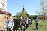 27 апреля 2013 года Духовно-патриотический центр святого Георгия Победоносца совместно с дружественными патриотическими организациями провел на территории прихода урок мужества для учащихся Воскресной школы. На этот раз урок был посвящен занятиям по военно-спортивной подготовке.