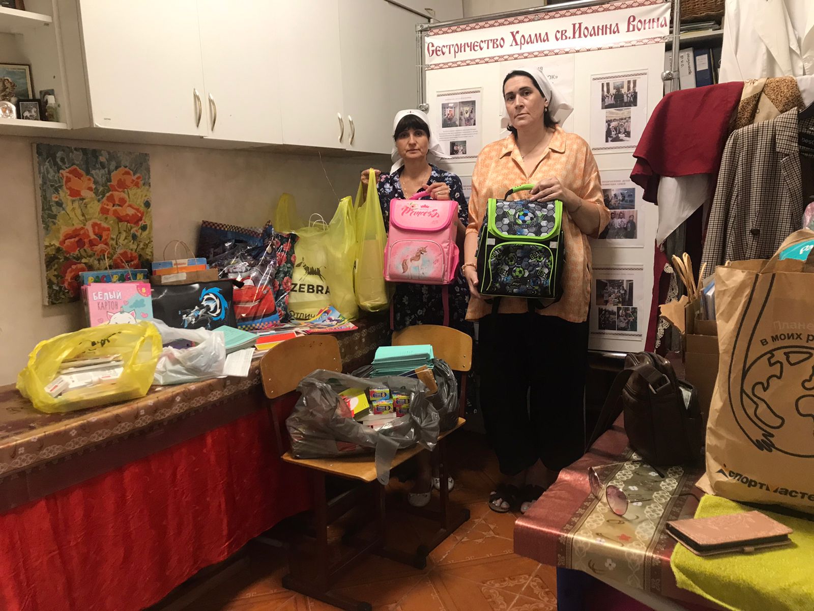 Для наших подопечных семей были собраны ранцы и другие канцелярские принадлежности. В целом приход оказал помощь 45 детям. Также сестрами были переданы ранцы ребятам подшефного детского дома "Аревик", которые по возрастной категории переходят в другой интернат и идут в школу. Завершающим этапом акции стал молебен перед началом учебного года. В своём слове настоятель храма Иоанна Воина протоиерей Валерий Волошук пожелал ребятам успешного учебного года, творческих начинаний и побед.